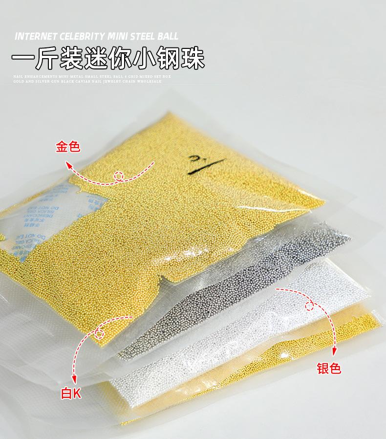 Mini bolitas de acero pequeñas joyería para uñas al por mayor bolsa de 500g oro plata oro K blanco cuentas redondas accesorios para uñas