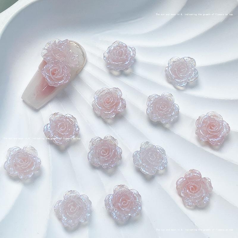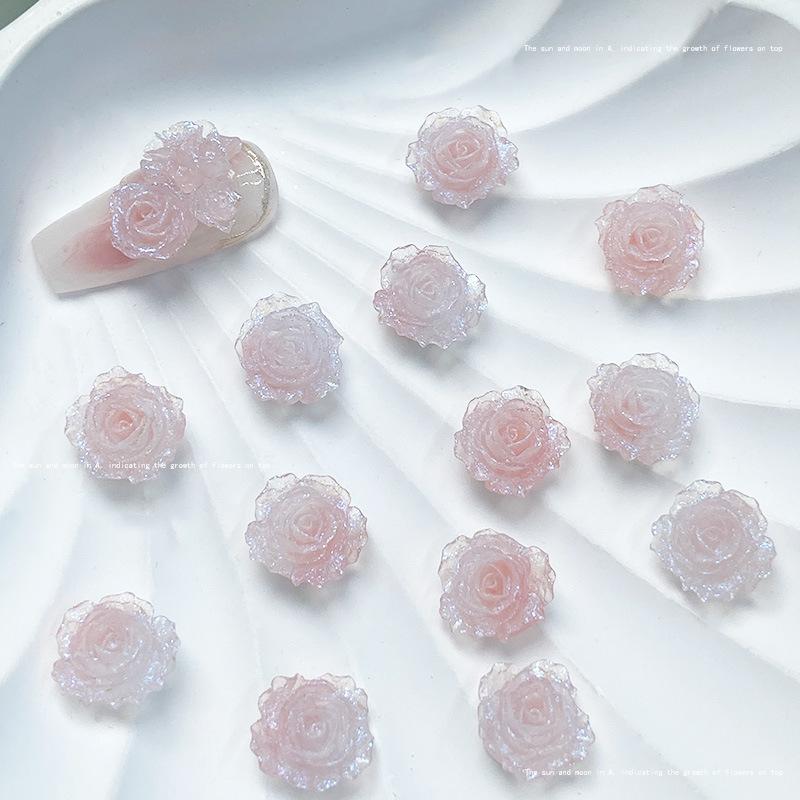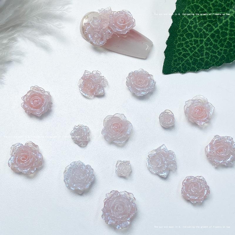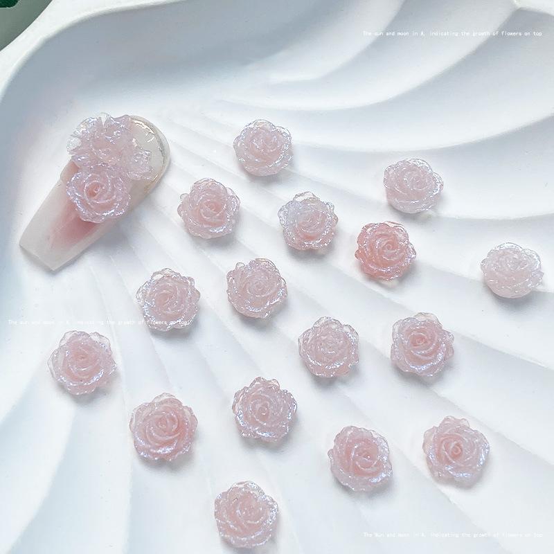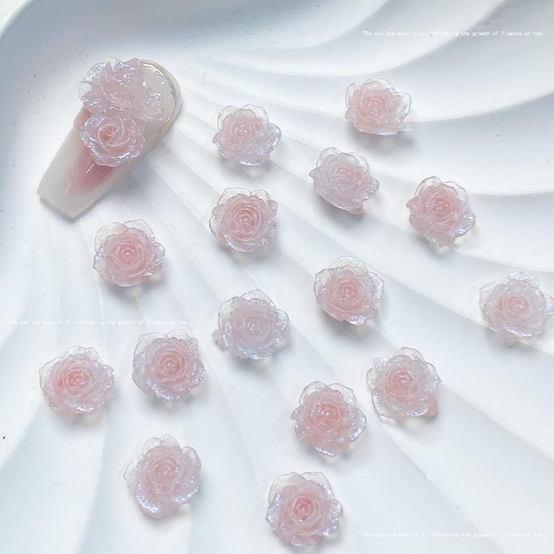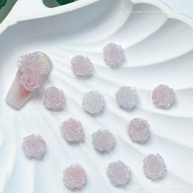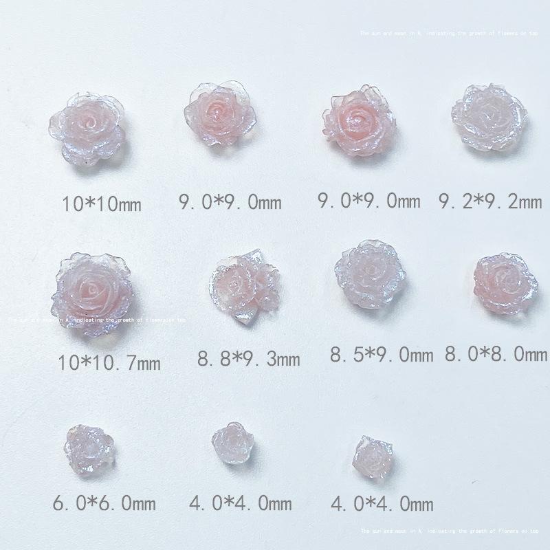 Nuevos accesorios para decoración de uñas con camelia rosa hielo, accesorios luminosos variados para decoración de uñas, tamaño rosa, decoración de uñas.