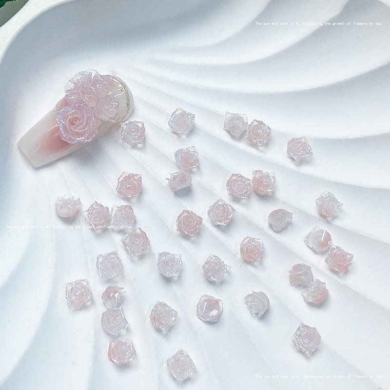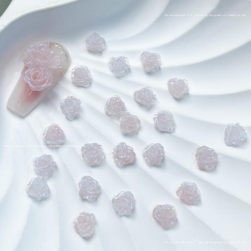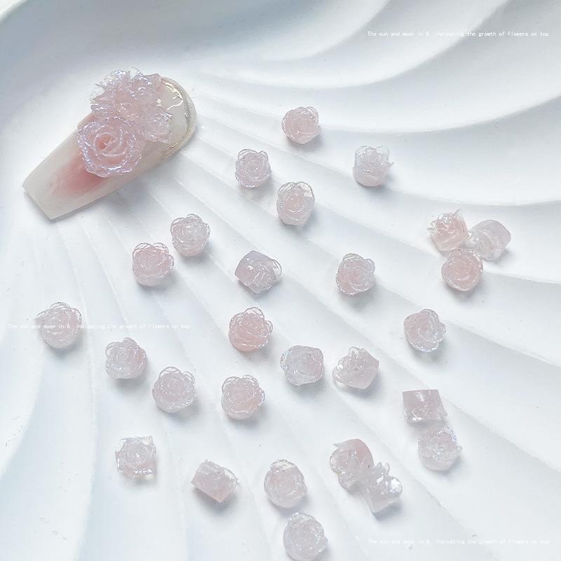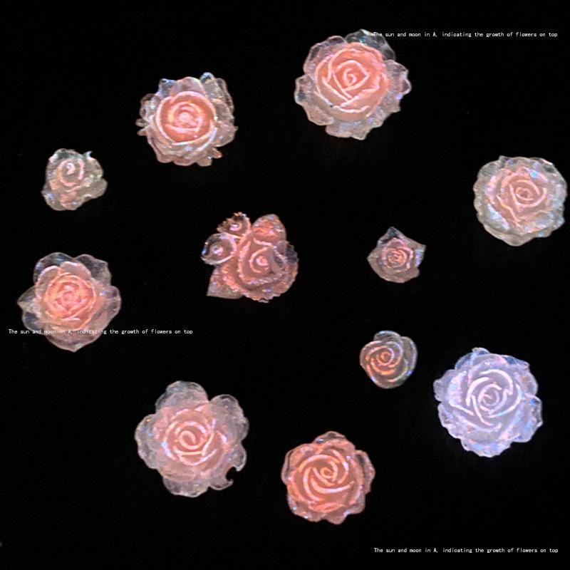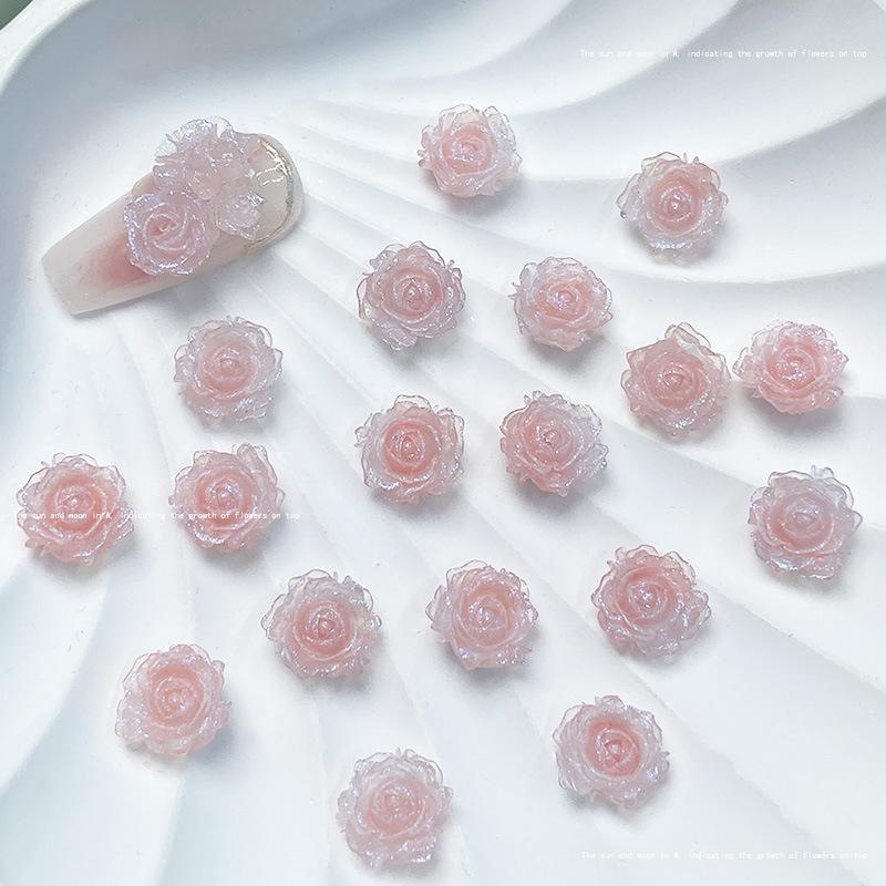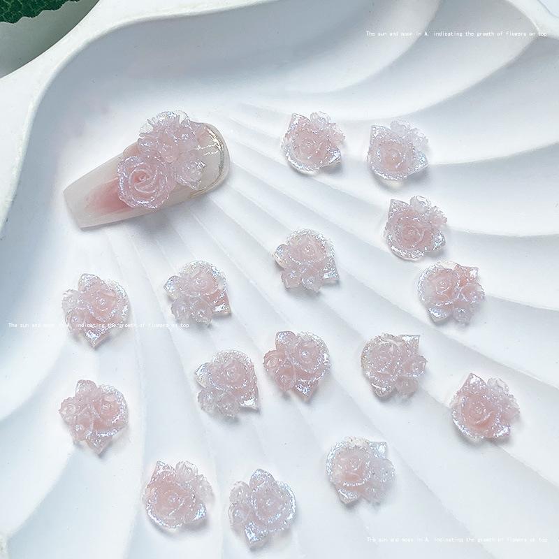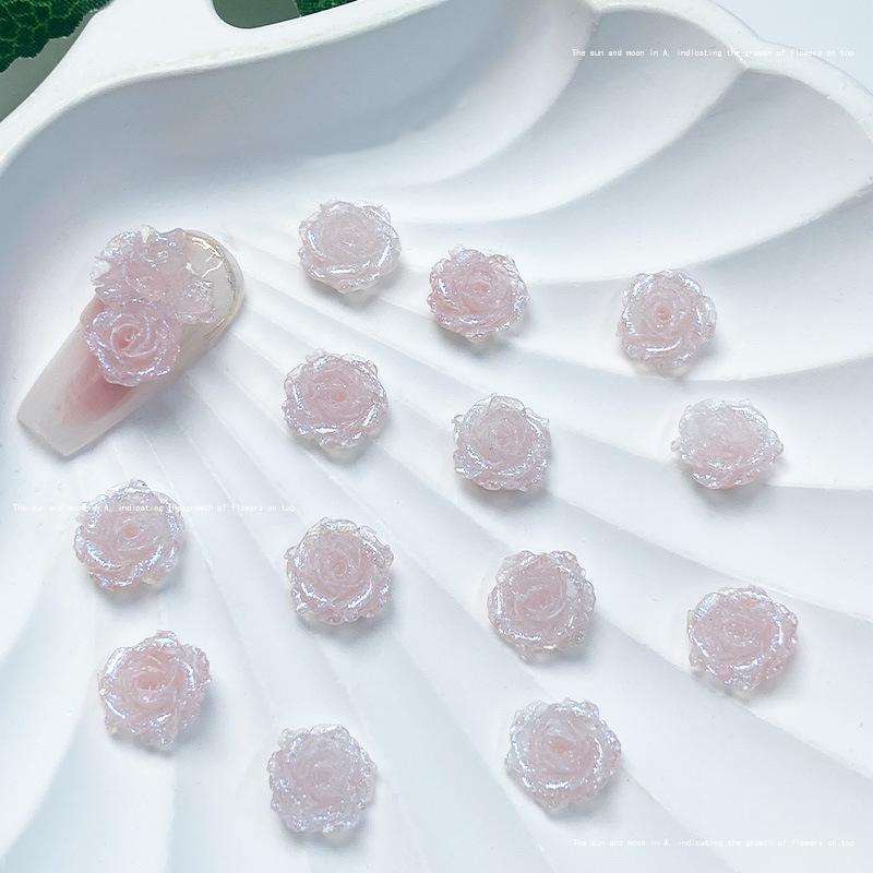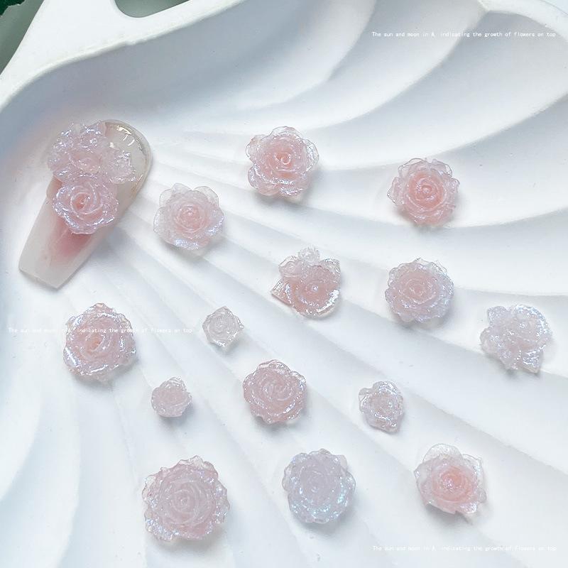 Nuevos accesorios para decoración de uñas con camelia rosa hielo, accesorios luminosos variados para decoración de uñas, tamaño rosa, decoración de uñas.