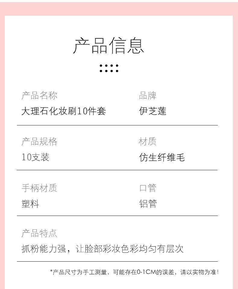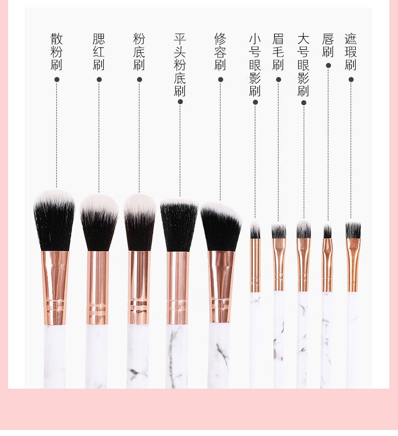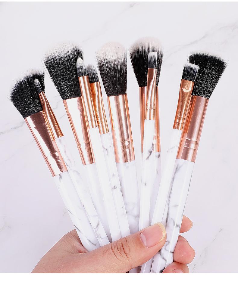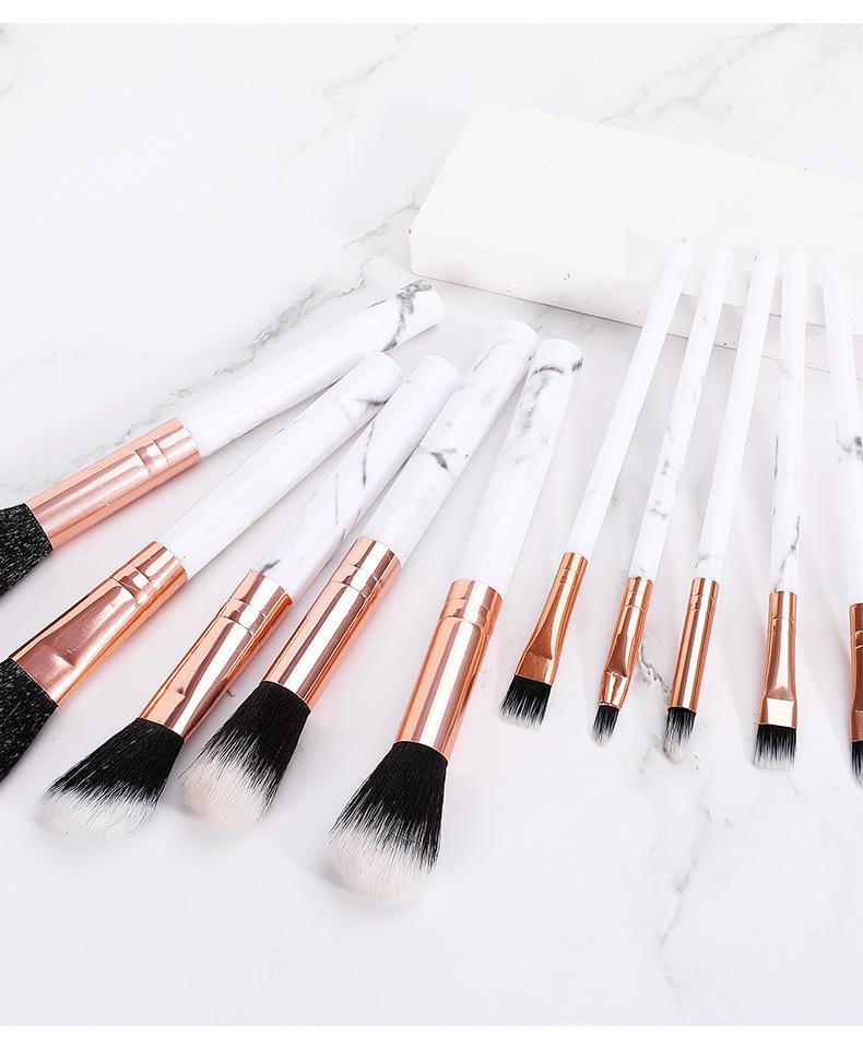 Yi Zhilian 10 juego de brochas de maquillaje de mármol pelo suave brocha para sombra de ojos polvo suelto colorete belleza juego completo brocha de maquillaje