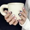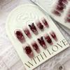 [Original hecho a mano] Lazo rojo cereza pintado a mano, uñas blancas puras desgastadas a mano, arte de uñas, parche de uñas postizas