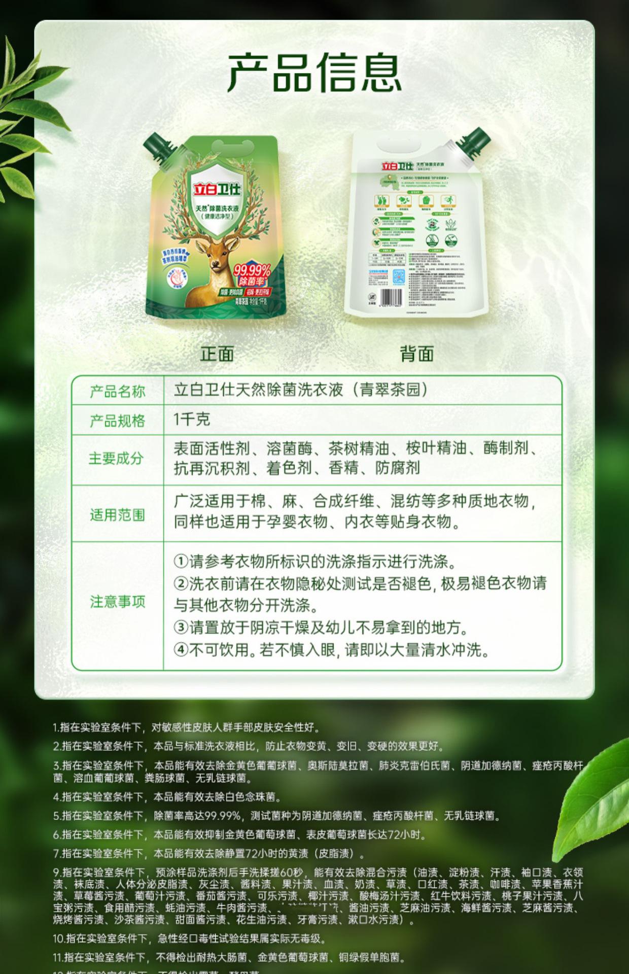Bolsa de detergente para ropa esterilizante Li Bai Weishi de 1 kg, jardín de té verde, productos genuinos para el hogar para eliminar sabores y manchas, fábrica al por mayor