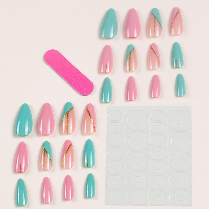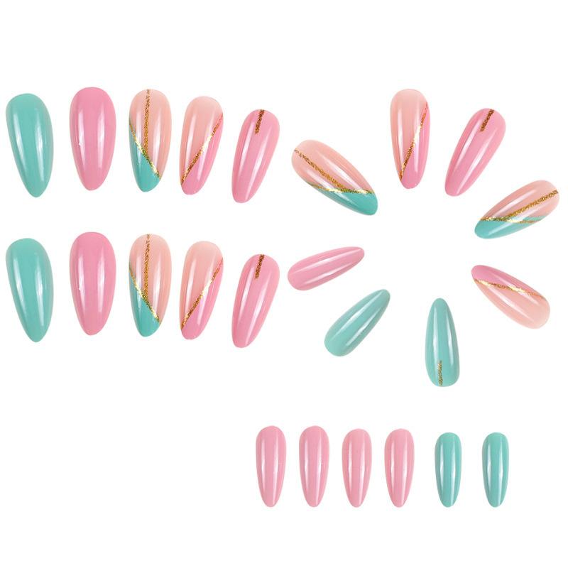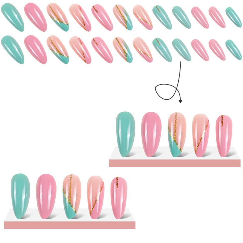 | |  | | Pegatinas para uñas con degradado de mármol azul y rosa de estilo europeo y americano, para usar, presionar sobre las uñas, producto terminado, venta al por mayor ¥3.80 |  |