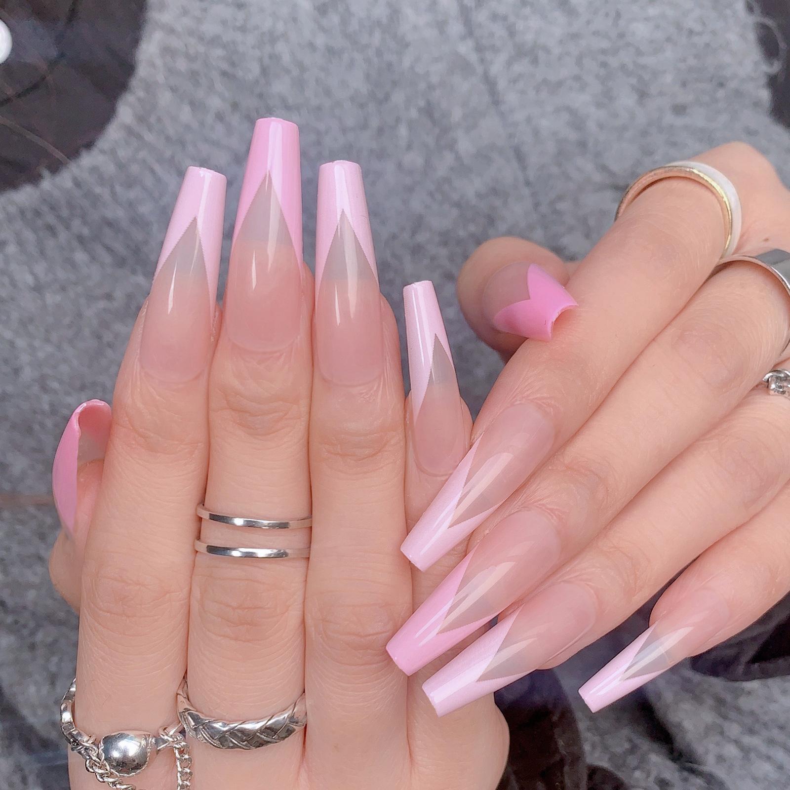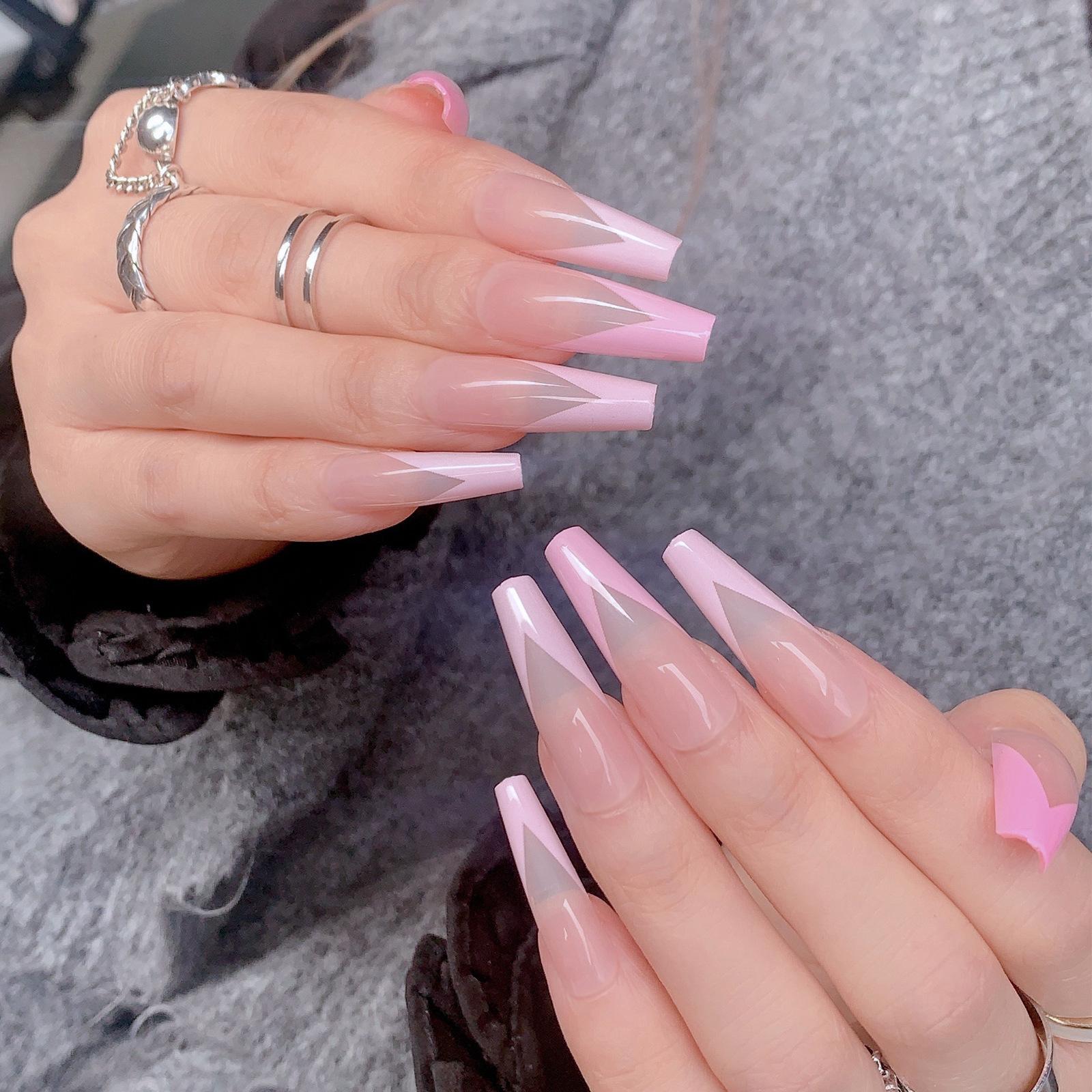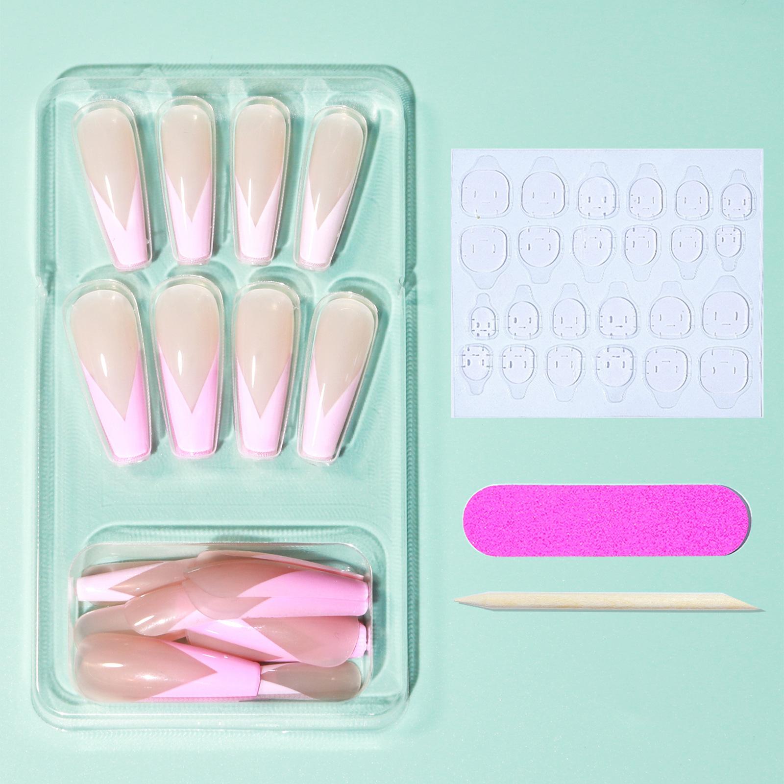 Compra Manicura francesa blanca de ballet larga, uña postiza terminada, parche para uñas, parche para uñas, parche para uñas impermeable y extraíble. al por mayor en Joom.pro