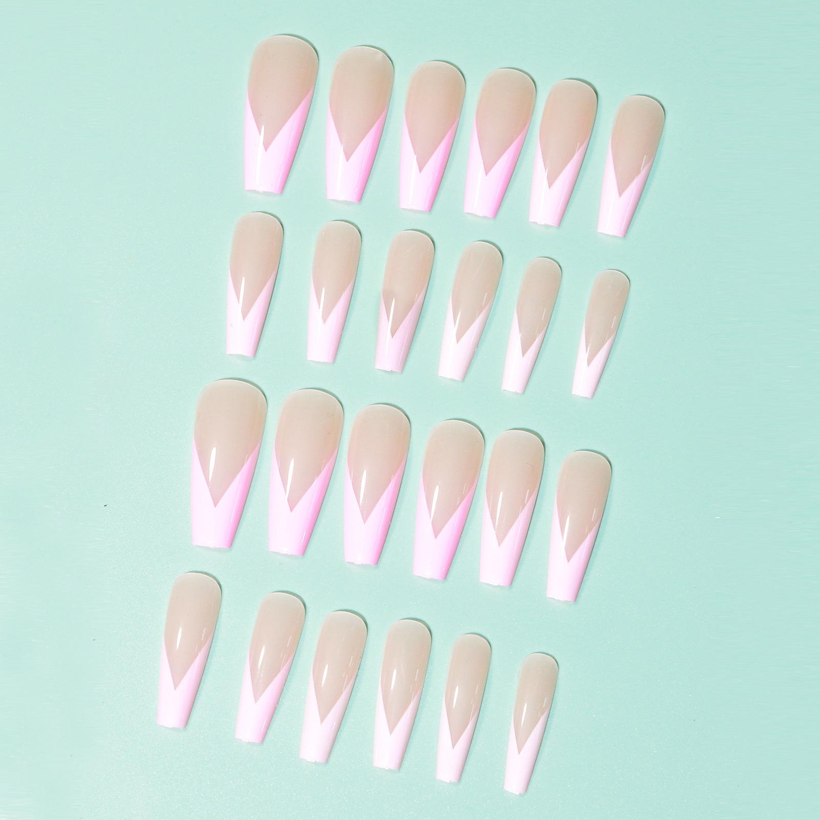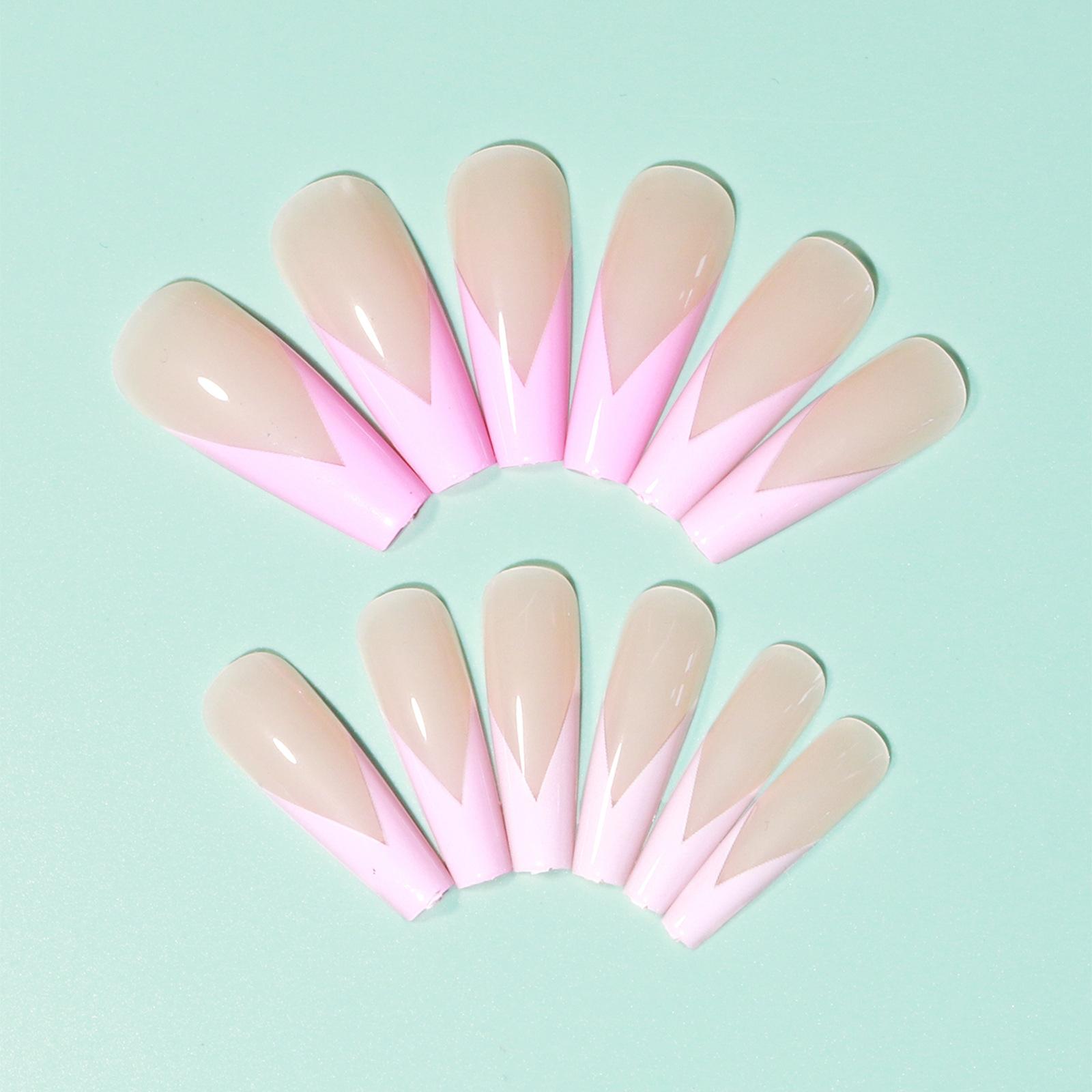 Manicura francesa blanca de ballet larga, uña postiza terminada, parche para uñas, parche para uñas, parche para uñas impermeable y extraíble.