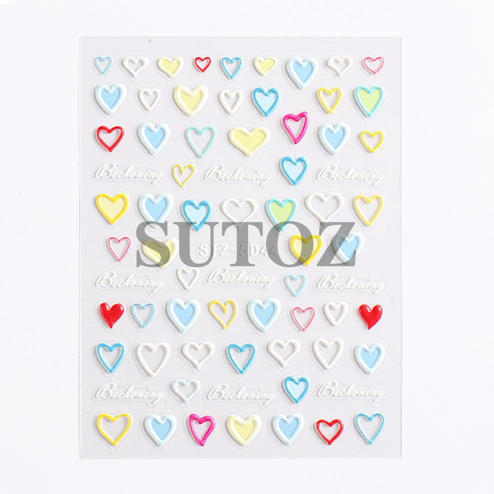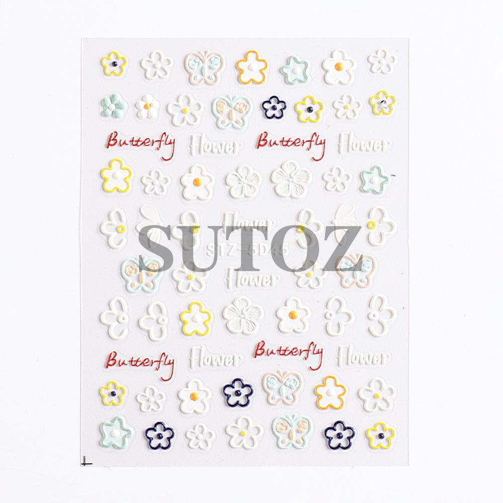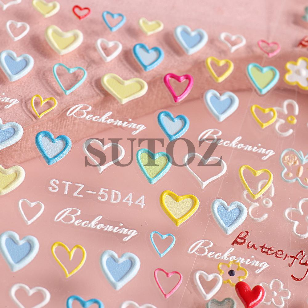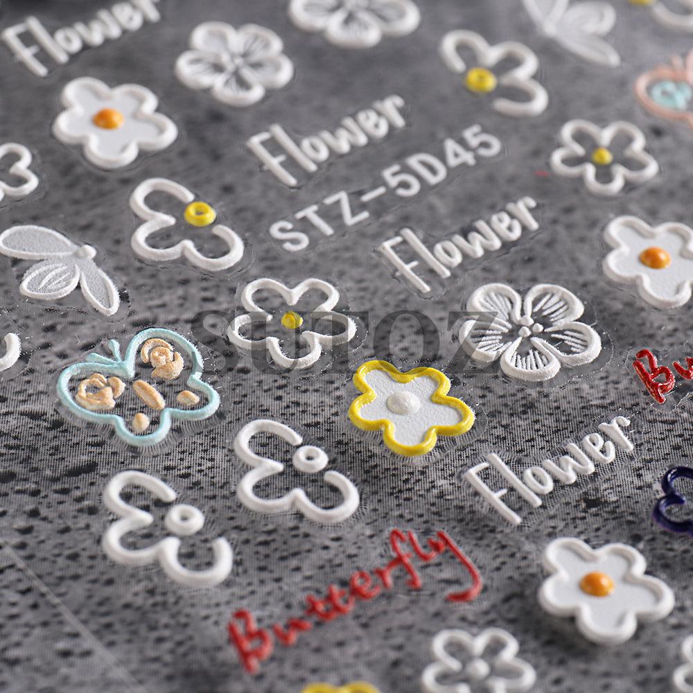 Nuevas pegatinas de uñas transfronterizas 5D con diseño tridimensional de flores huecas, mariposas y corazones, pegatinas de uñas con dibujos animados en inglés.