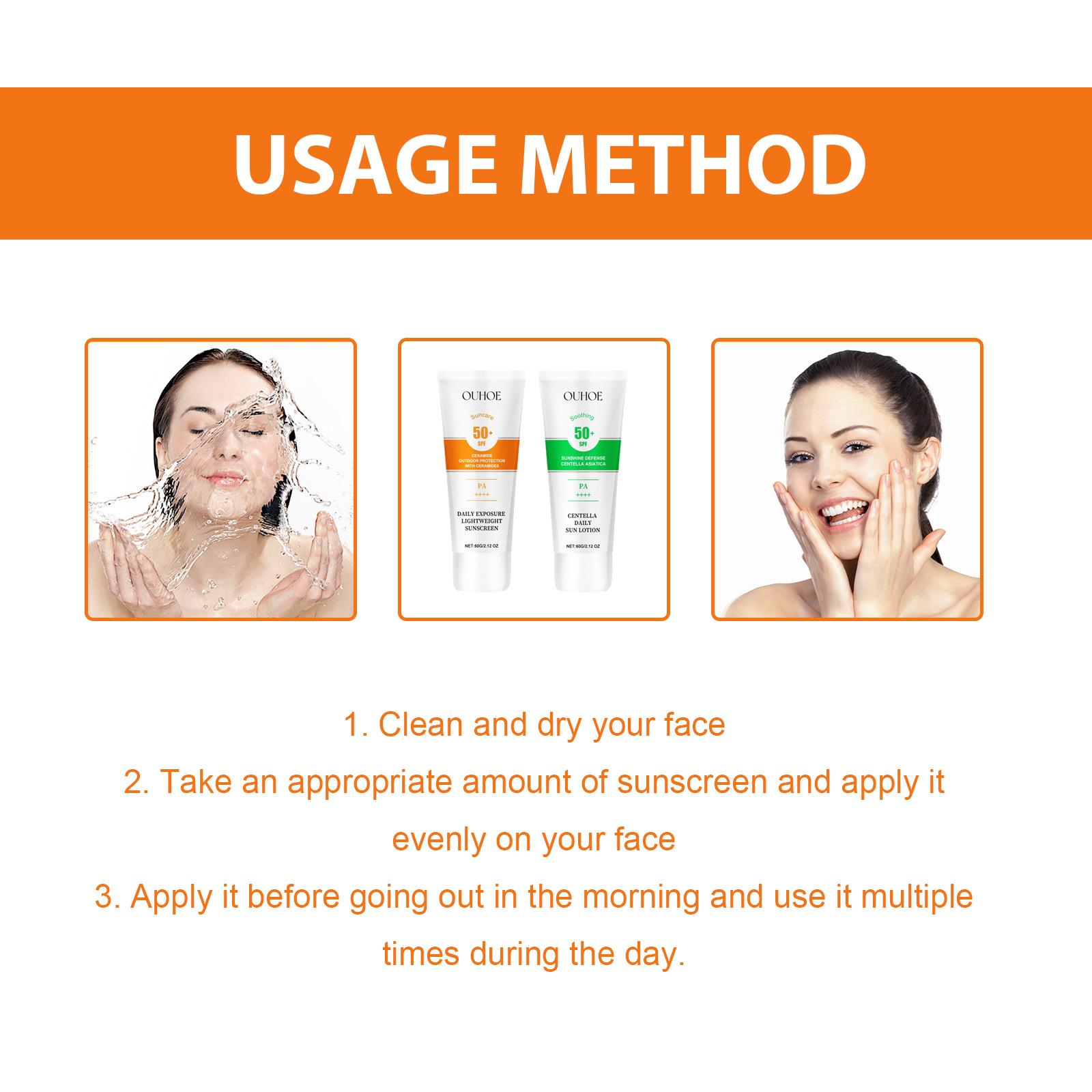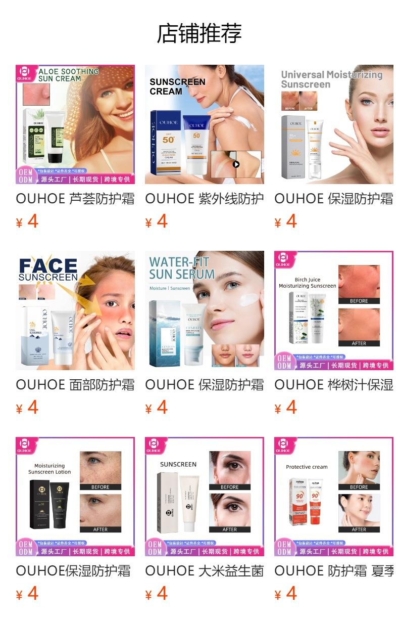 Crema protectora OUHOE Serie Verano Exterior Aislamiento UV Antes del maquillaje Protección Impermeable Sudor Refrescante y no grasosa