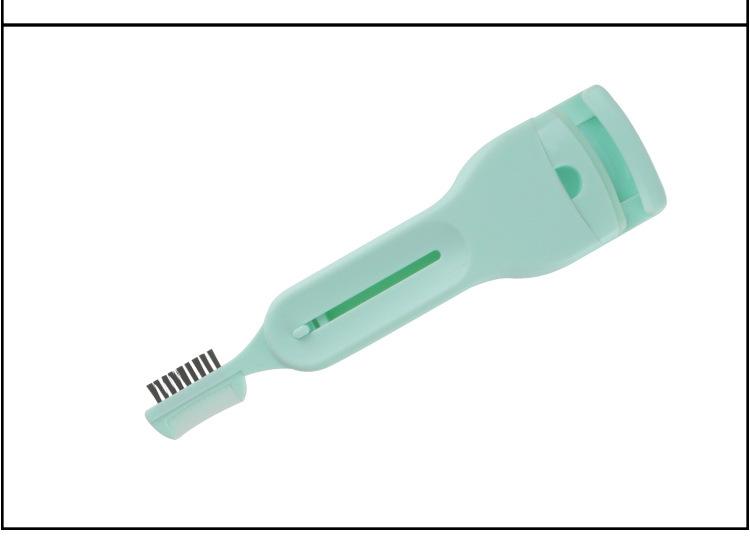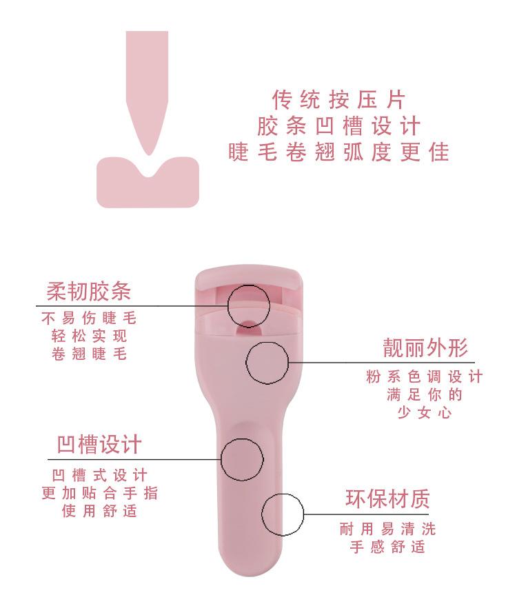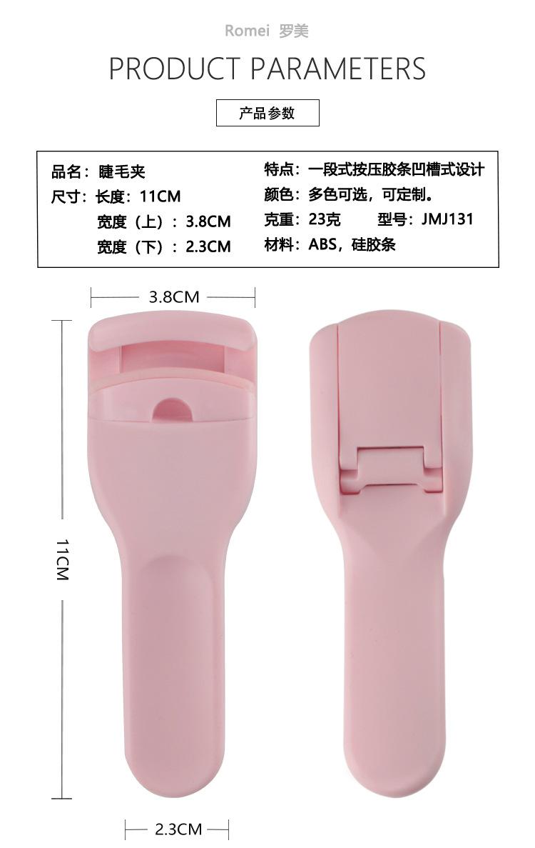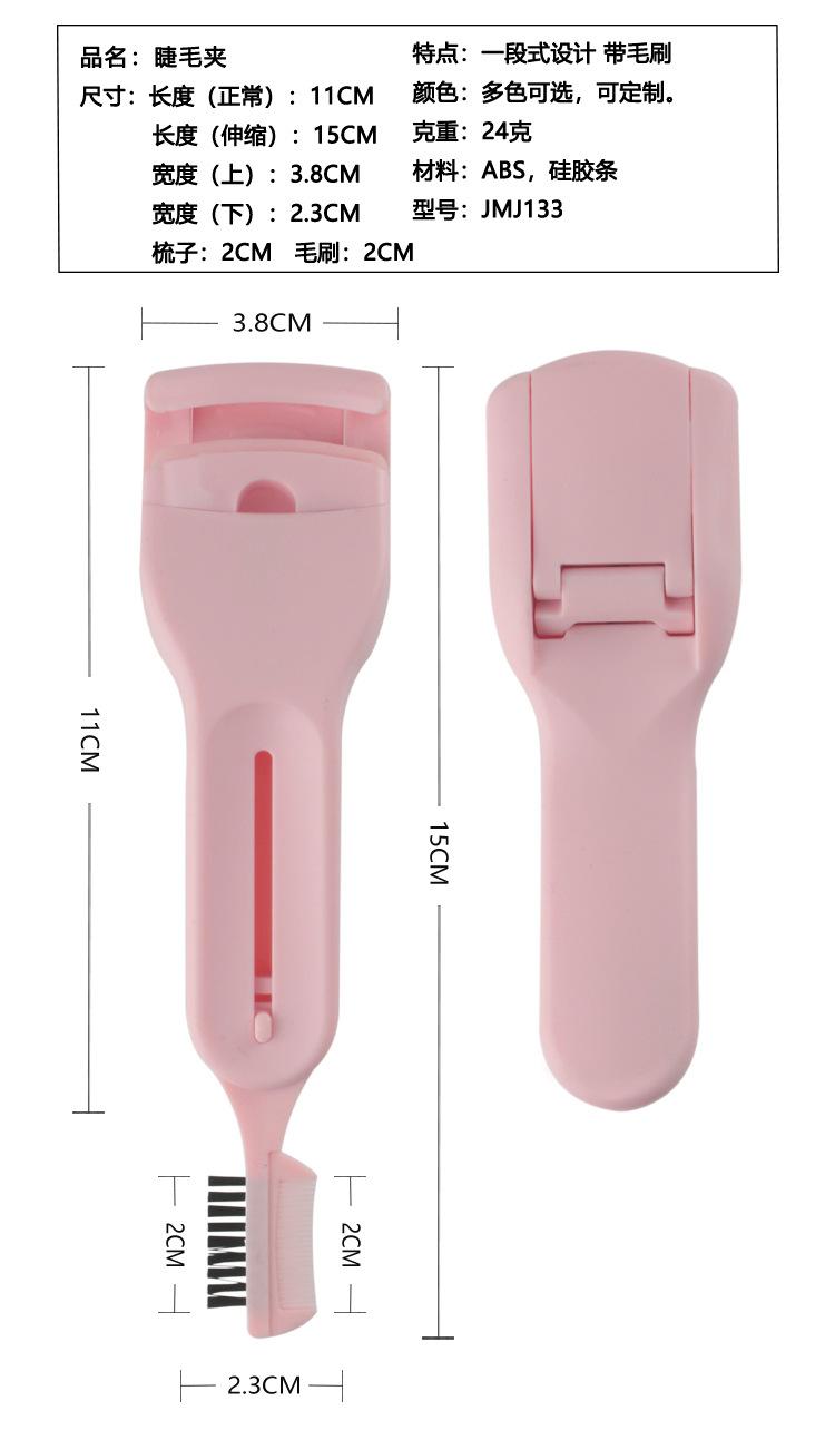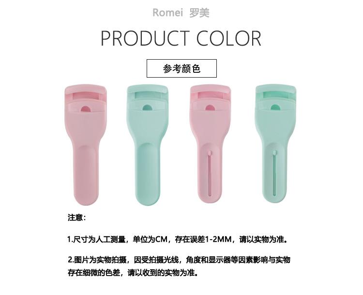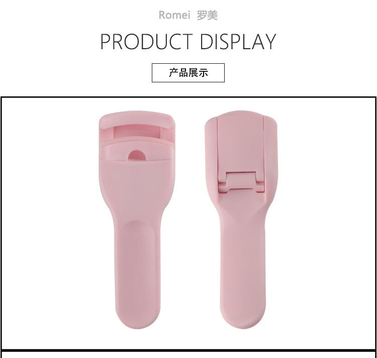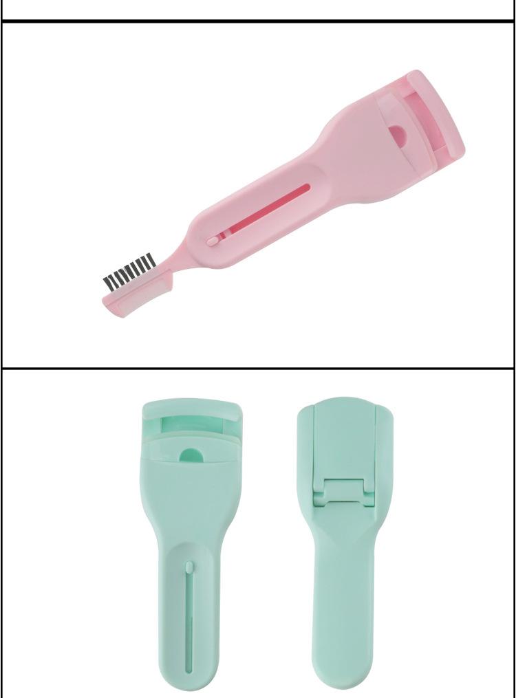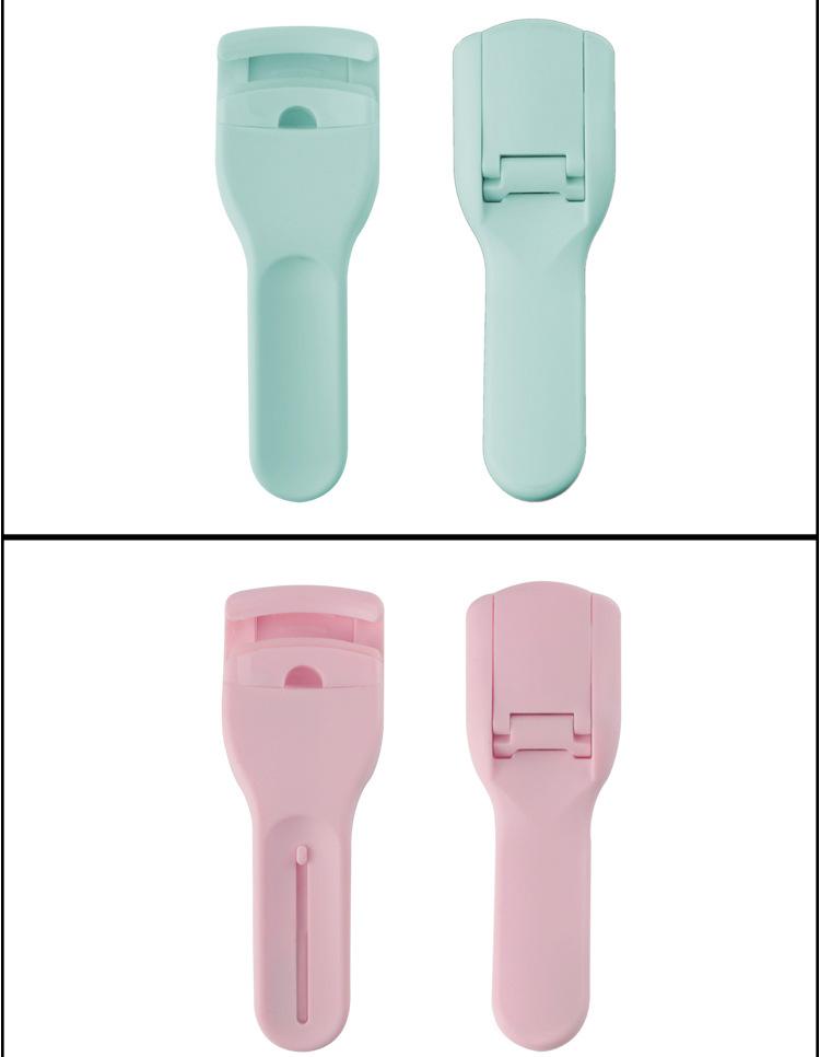 Rizador de pestañas portátil Luomei de plástico con mango largo de tres secciones, rosa y verde