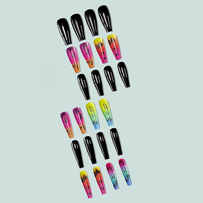 Popular mariposa de color de impresión inversa usar uña pieza de uña postiza usable delantera y trasera pieza de belleza de uña pieza de uña transfronteriza al por mayor