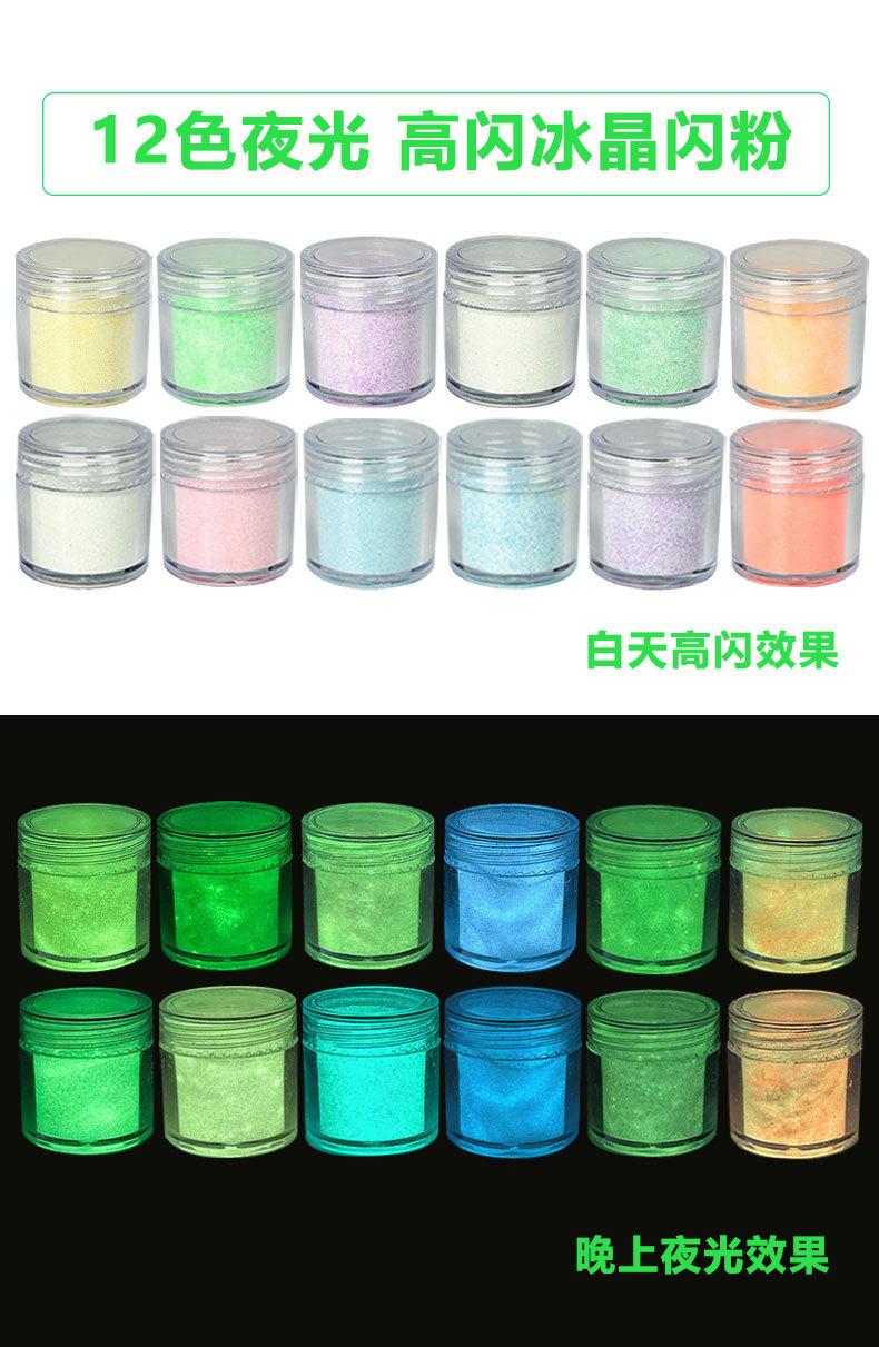 Polvo de brillo luminoso popular especial transfronterizo polvo luminoso para discoteca polvo para saltar de alto brillo polvo de cristal de hielo diy flujo epoxi joyería de cáñamo polvo de brillo