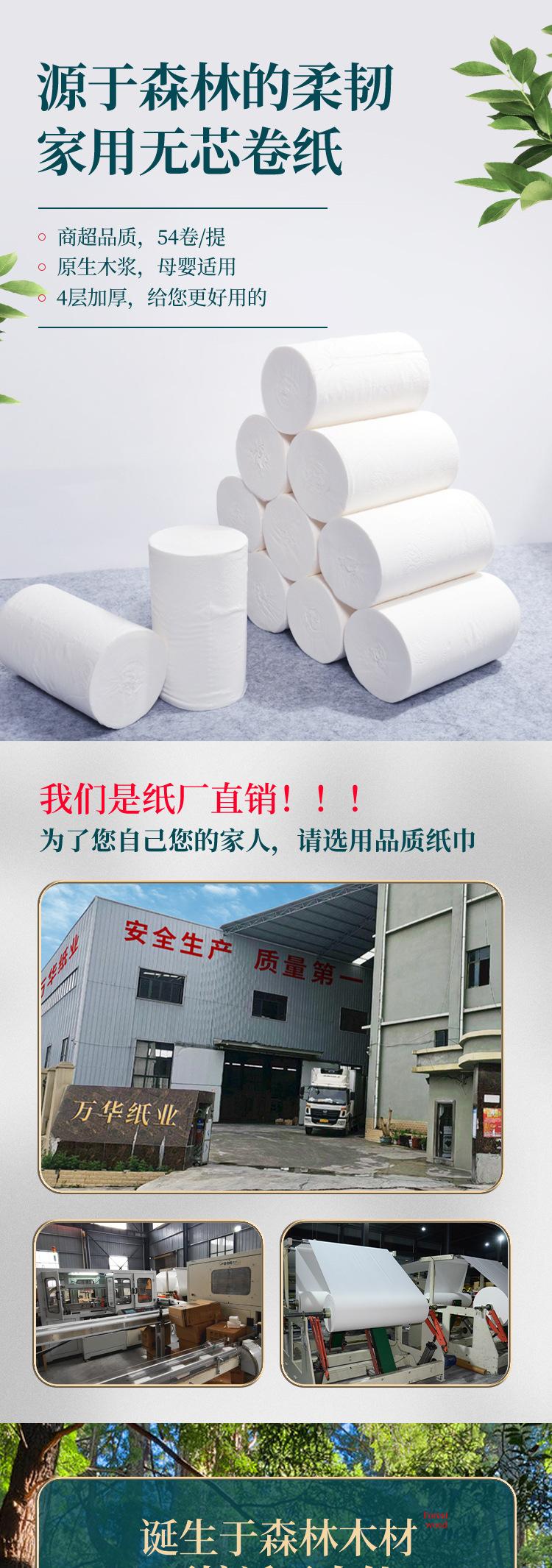 Venta al por mayor de fábrica de 54 rollos de papel higiénico, papel higiénico para el hogar, rollo de papel sin núcleo para hotel, papel higiénico para hotel