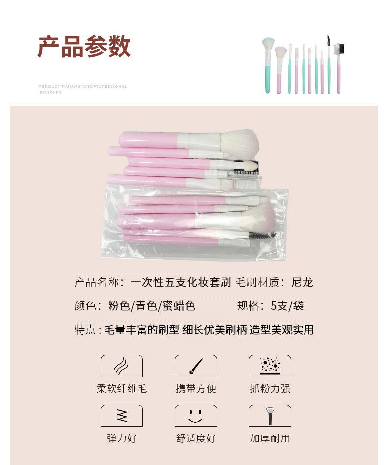 Brocha de maquillaje portátil de 5 piezas de pelo suave, ideal para base, rubor, sombra de ojos, herramientas de belleza, venta al por mayor de fábrica