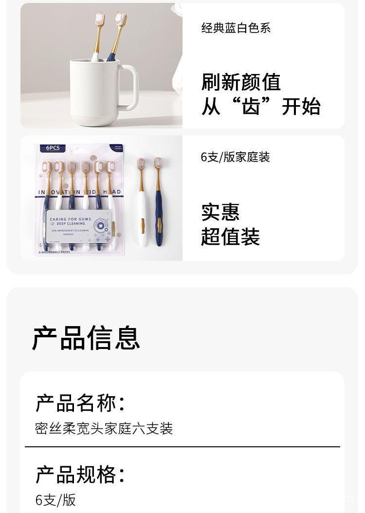 El mismo cepillo de dientes de Sam cariño 6 piezas para adulto hogar cabezal ancho delgado cepillo de dientes suave cabezal grande cepillo de dientes de cerdas suaves fábrica mayorista