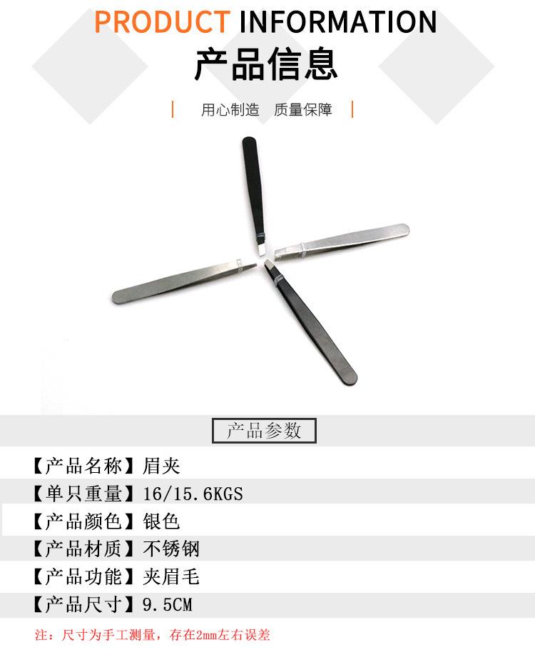 Fabricante de pinzas para cejas de acero inoxidable, pinzas para cejas, pinzas para recortar cejas, pinzas planas oblicuas para depilar cejas.