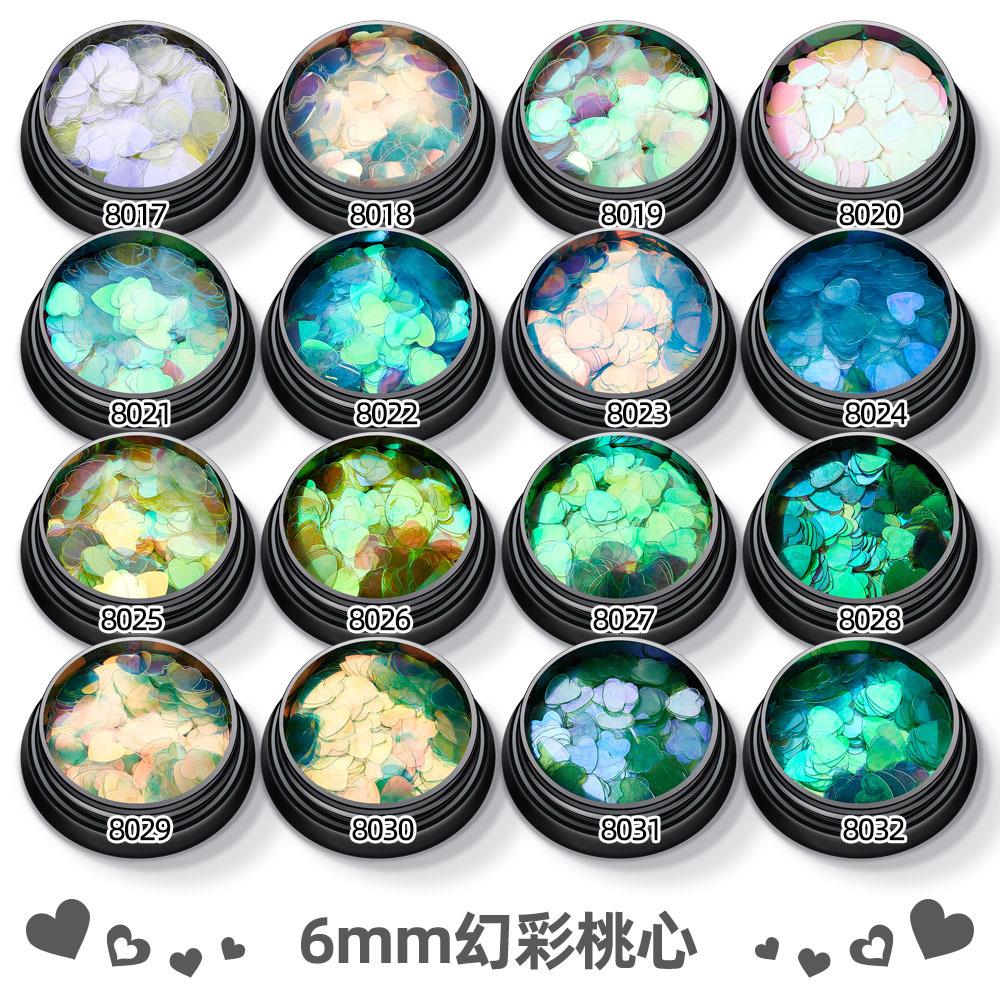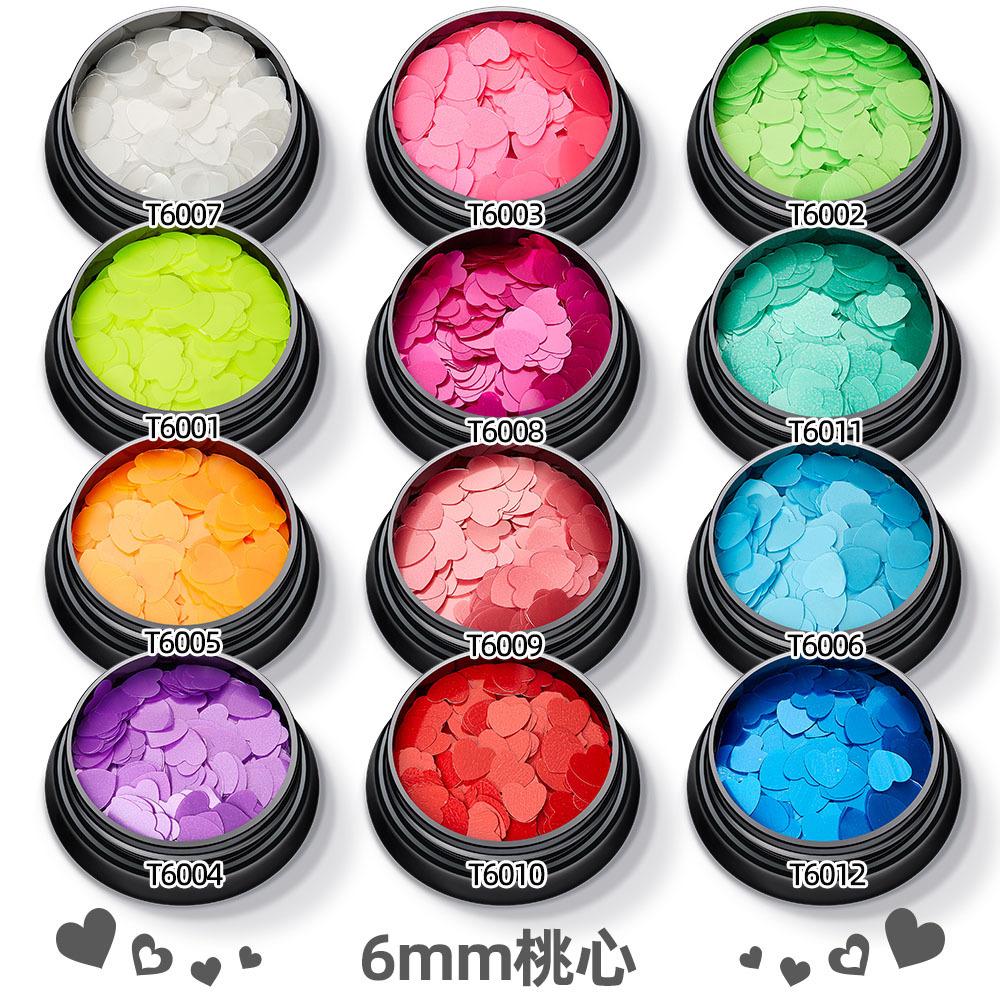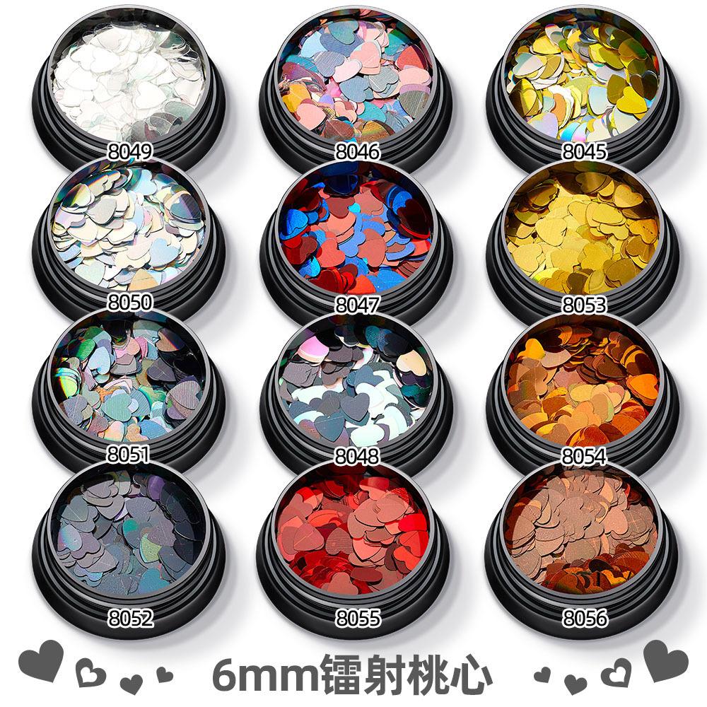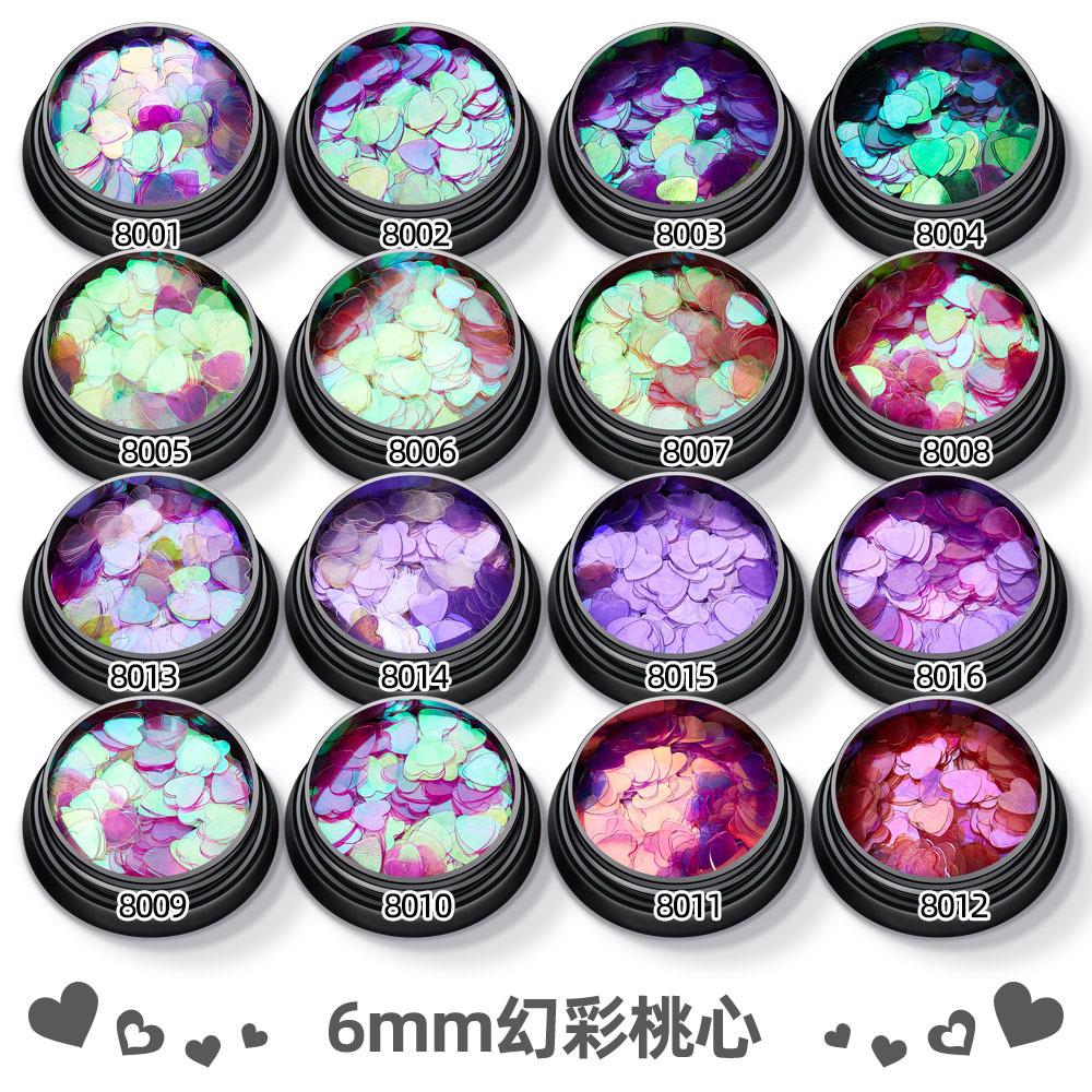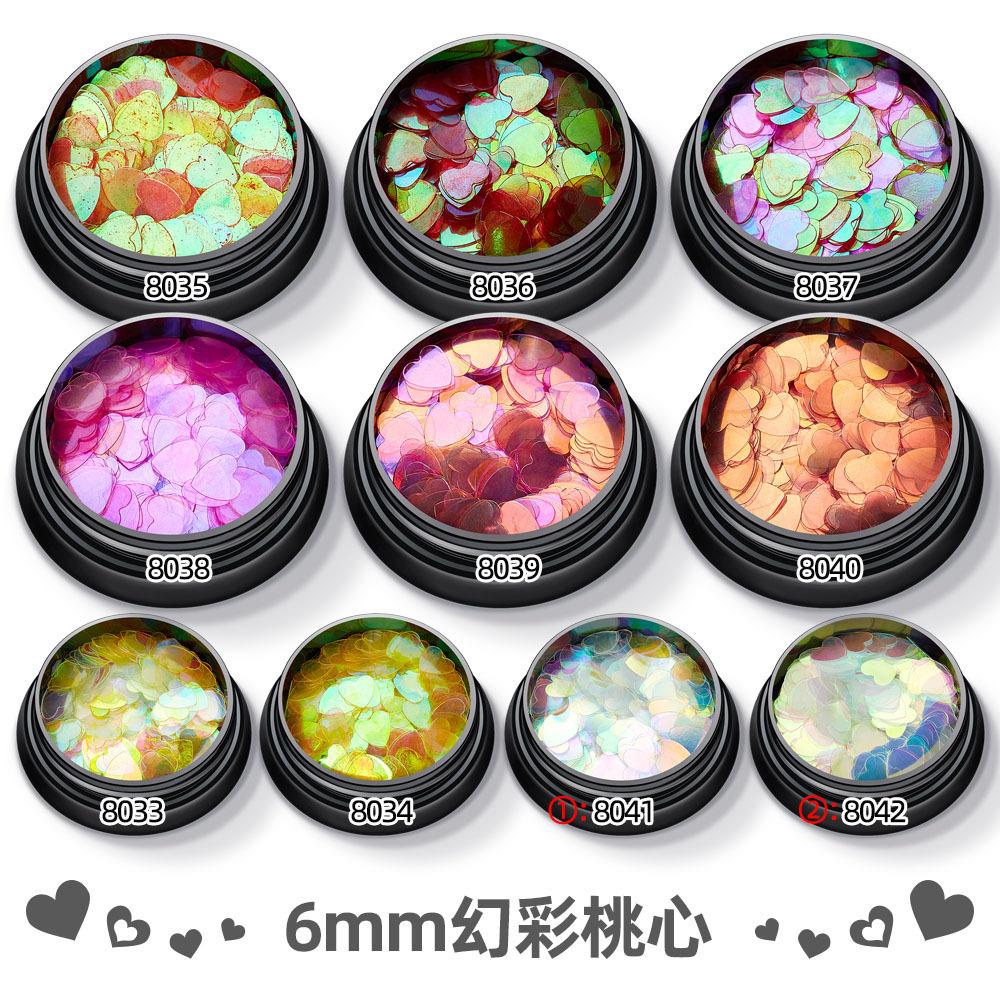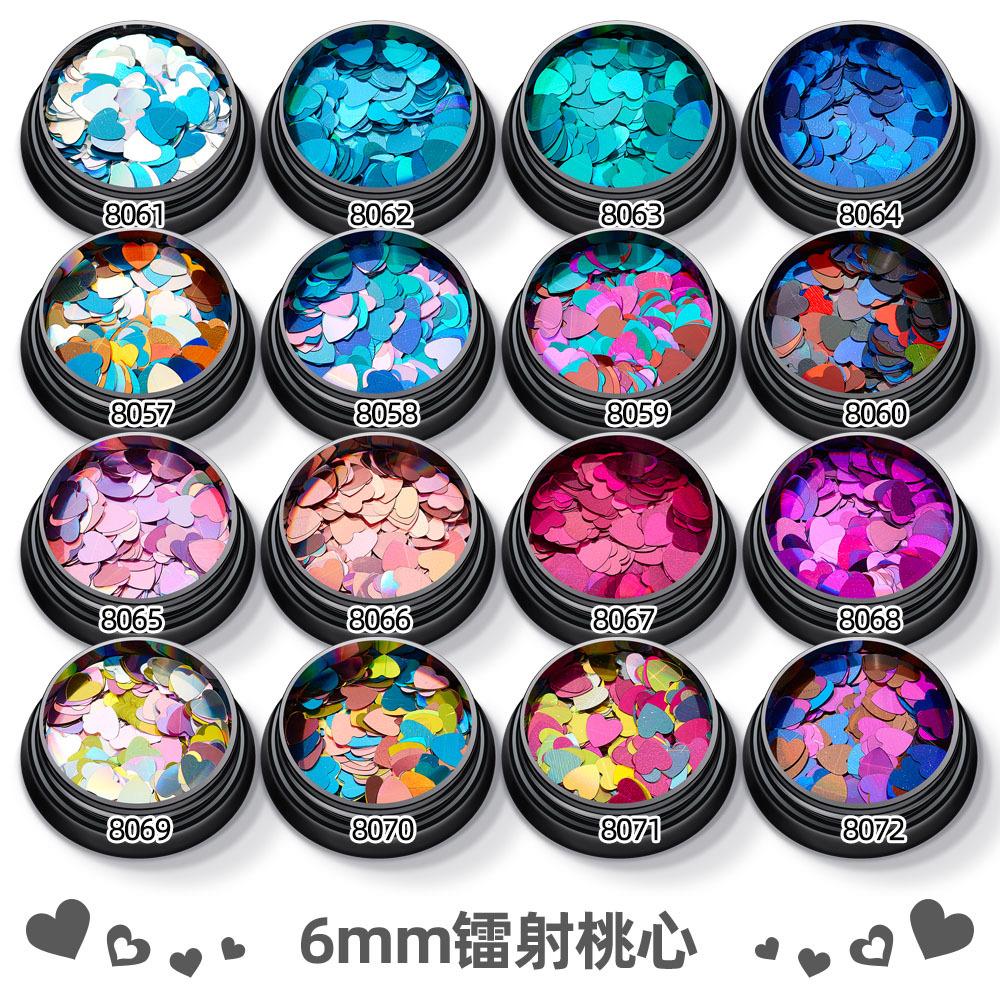 Uñas postizas transfronterizas con forma de corazón de durazno, lentejuelas de amor, polvo de purpurina, PET ultrafino, purpurina, epoxi hecho a mano DIY