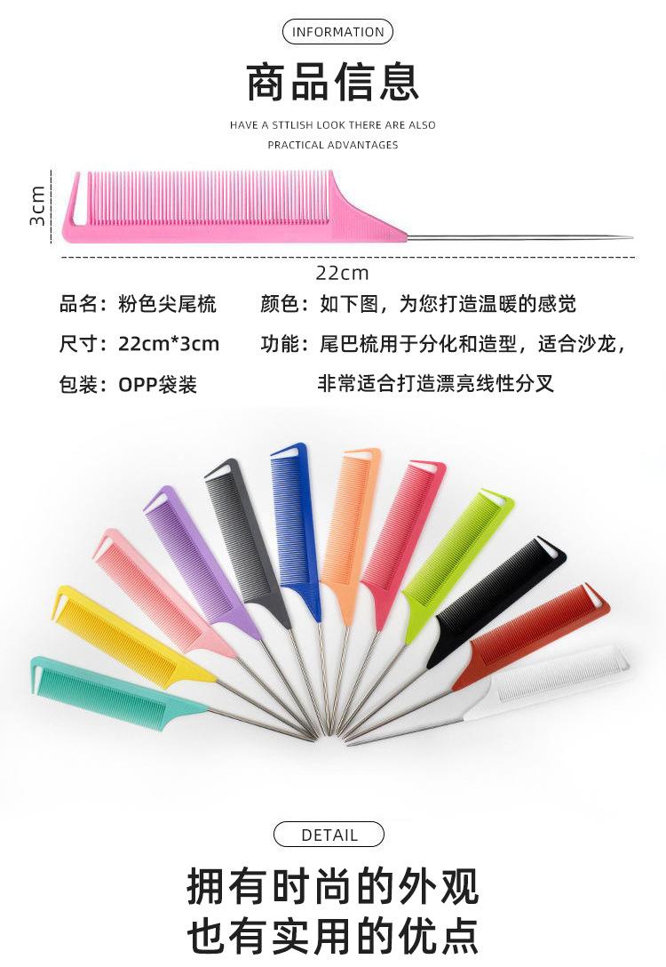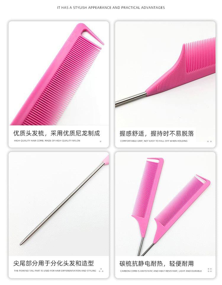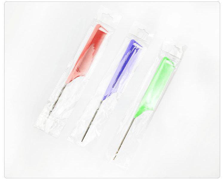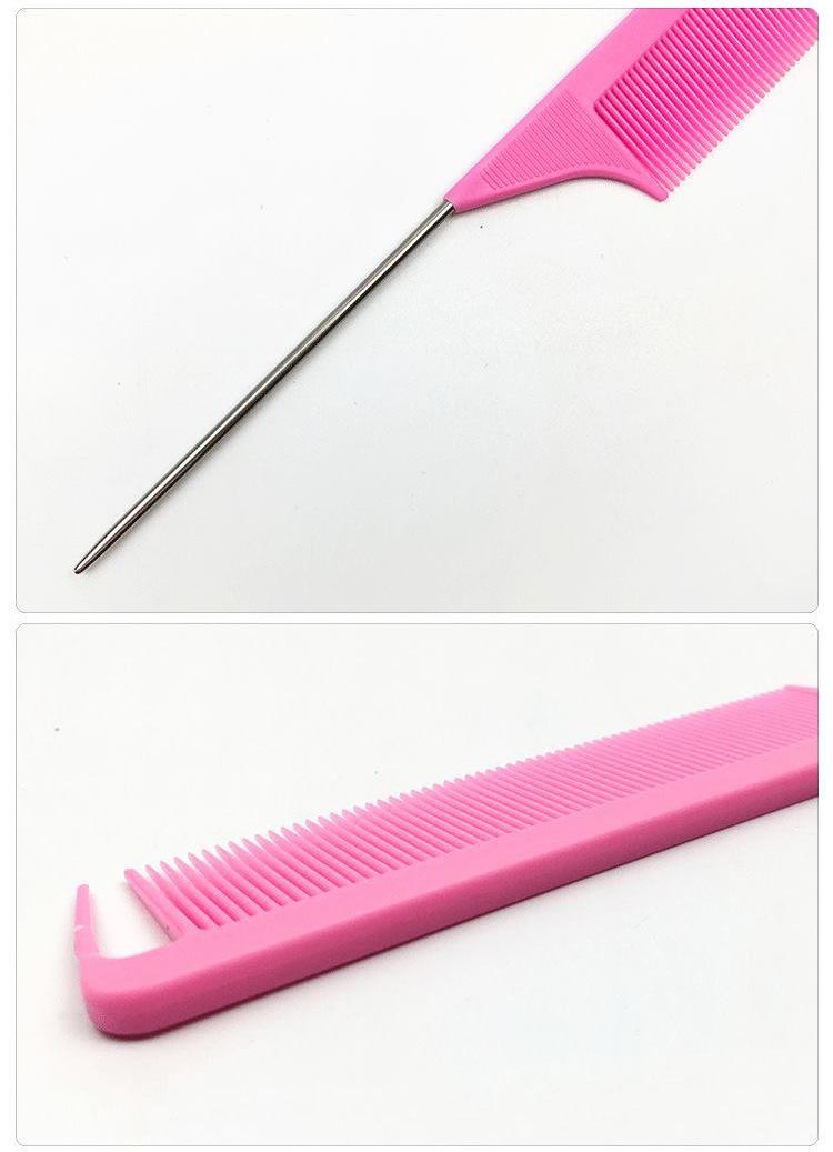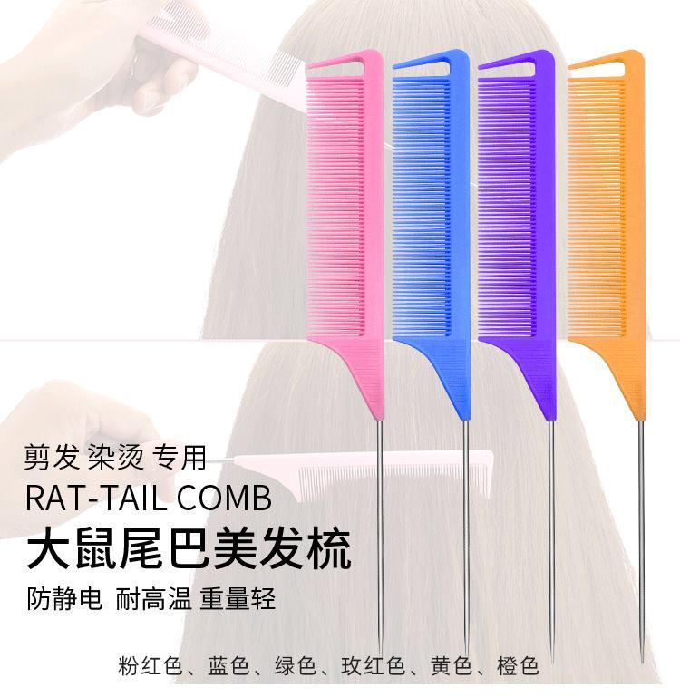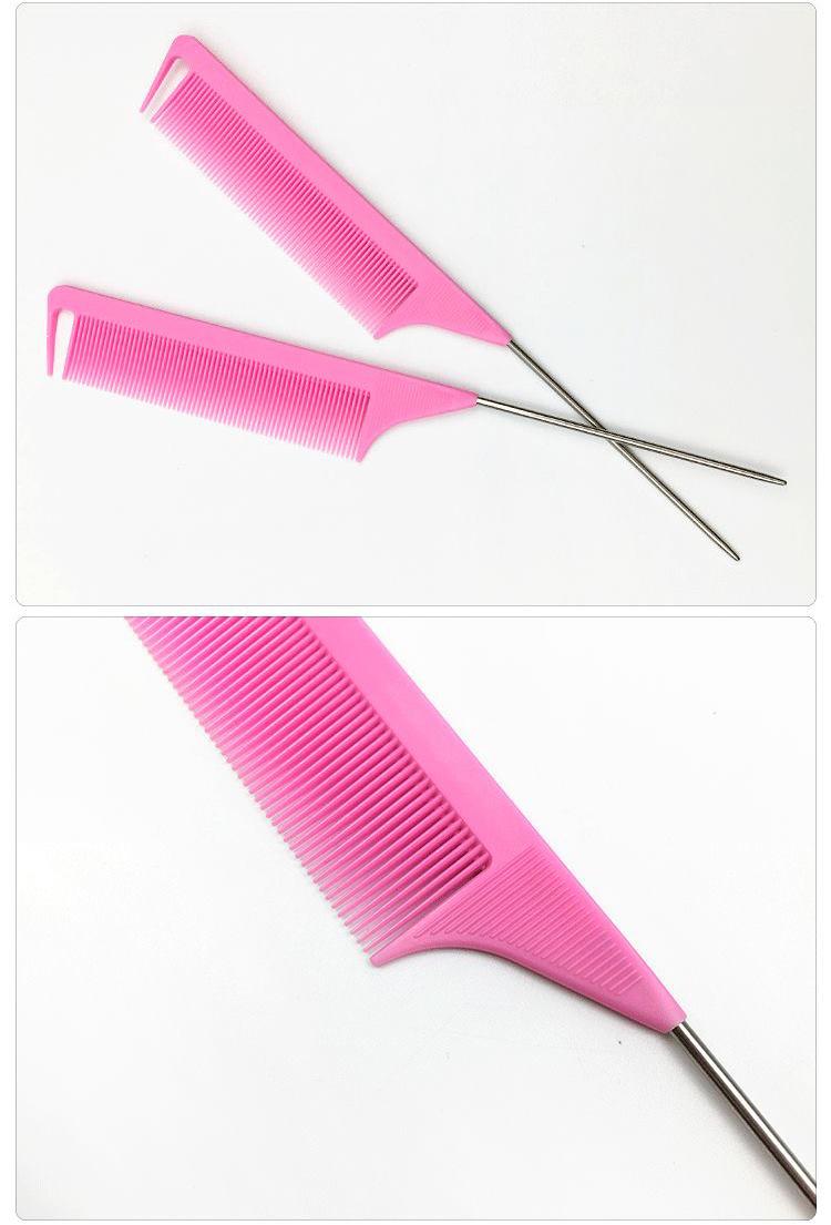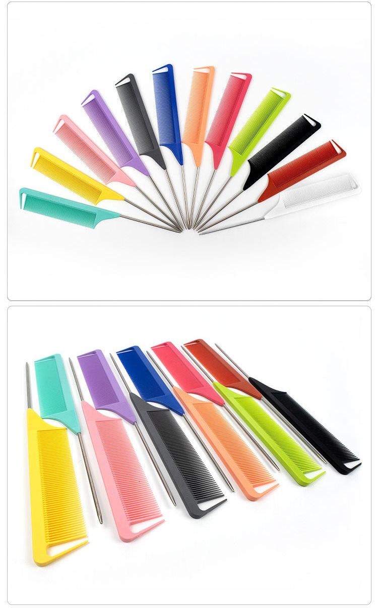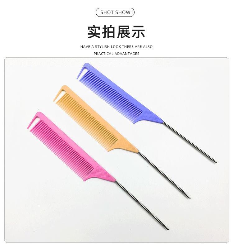 Peine de cola puntiaguda para peluquería, peine de cola de hierro y acero para recoger el cabello, peine de corte arcoíris para barbería