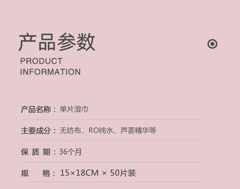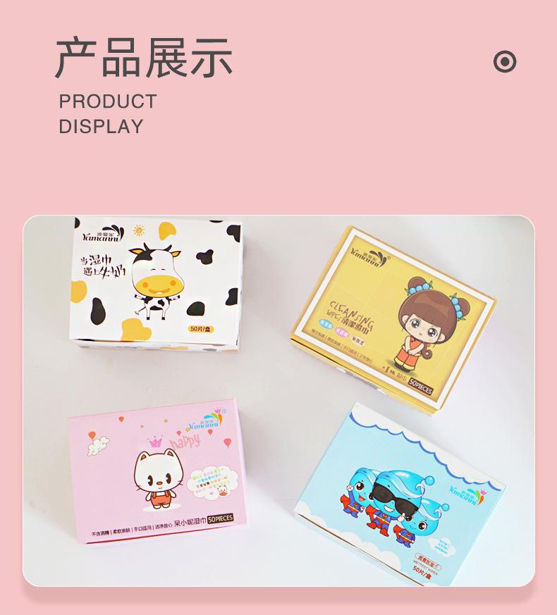 Modelo: 50 piezas de toallitas húmedas en una caja.