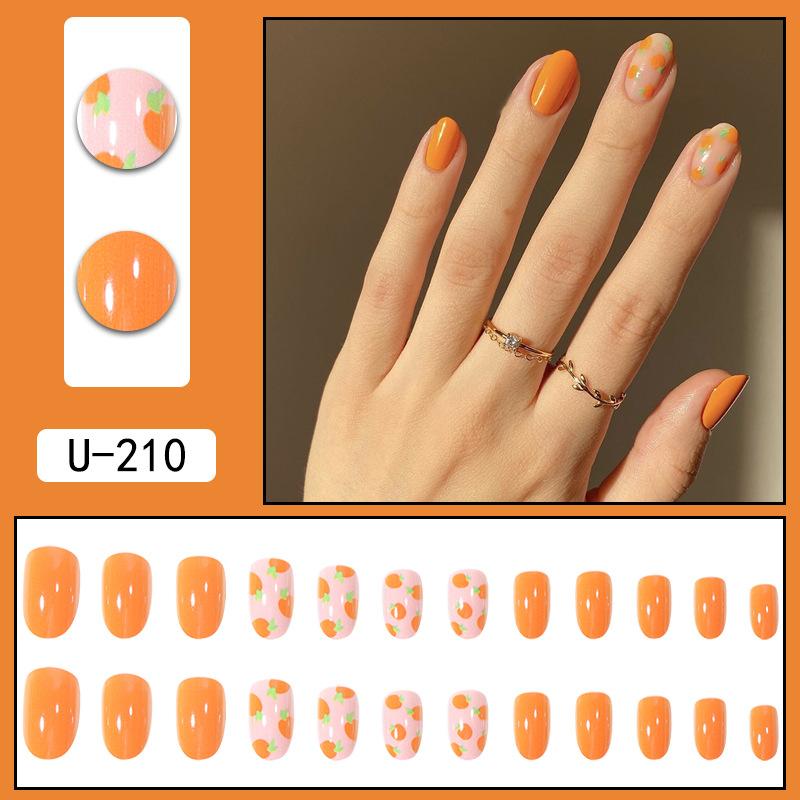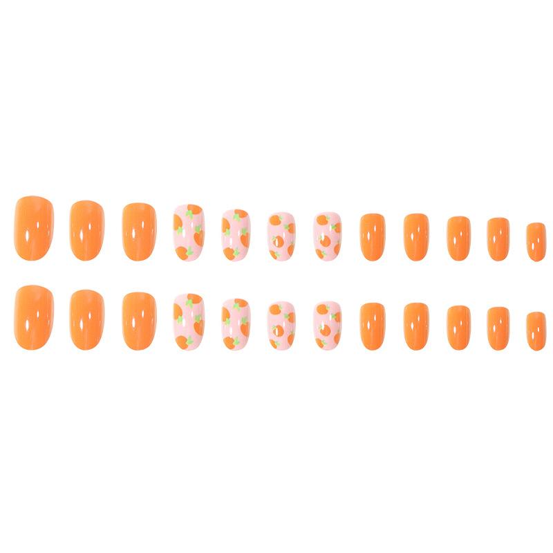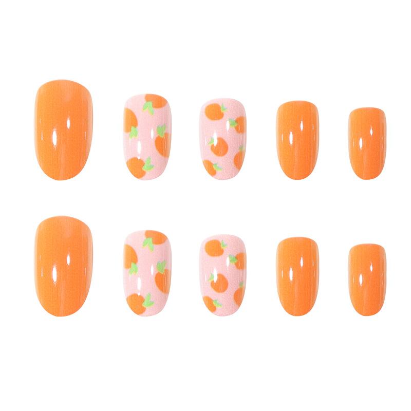 Piezas de uñas de verano usar uñas al por mayor naranja lindas uñas postizas removibles impresión digital arte de uñas comercio exterior arte de uñas