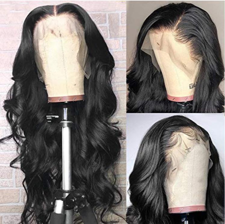 Nuevo Producto Transfronterizo Peluca de Encaje Frontal Peluca Body Peluca Europea y Americana Peluca Femenina Cabello Largo Rizado Ola Grande Negro Fibra Química Tocado