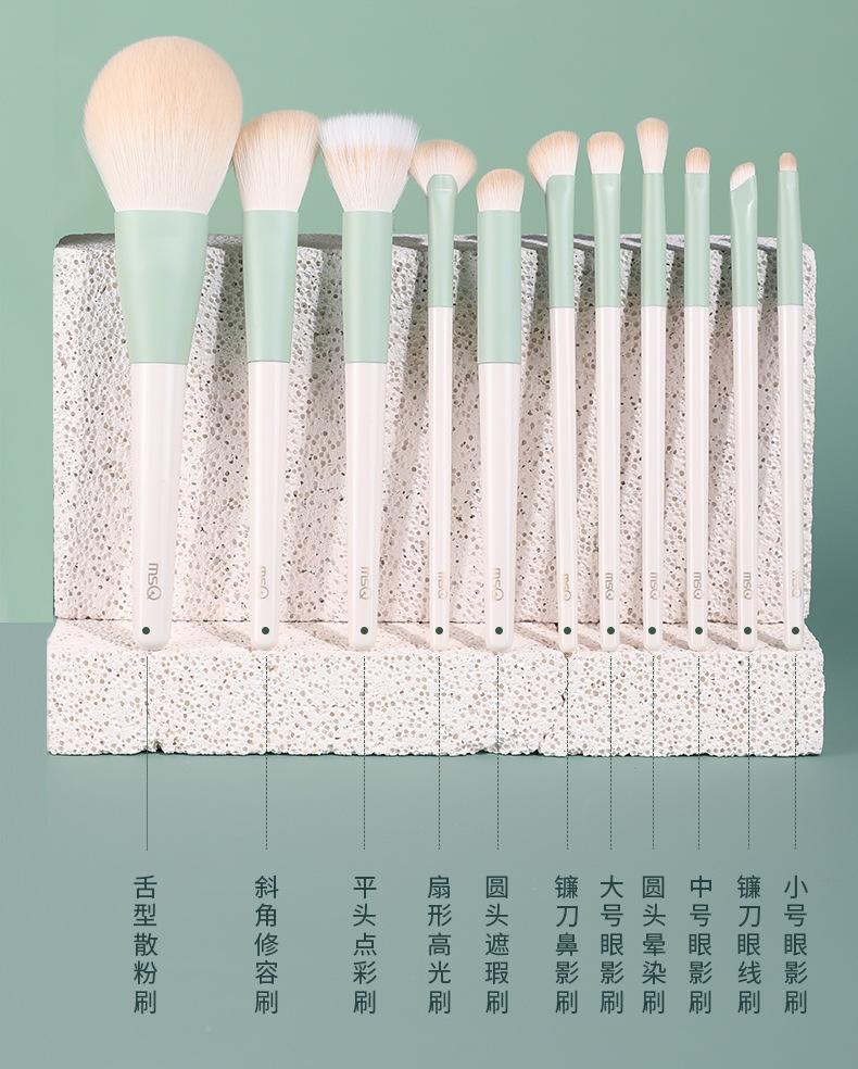 Juego completo de 11 pinceles de maquillaje verdes MSQ/meisikou, productos genuinos, pincel para sombra de ojos, rubor, corrector, pincel para sombra de nariz