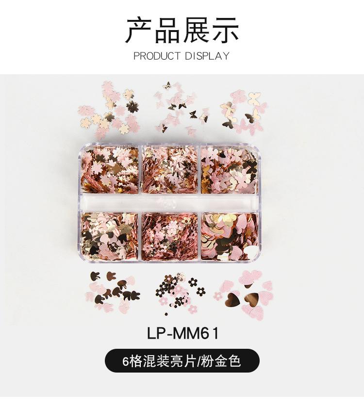 LP-MM61/6 box nail mixed sequins/powder gold, LP-MM62/6-box nail mixed sequins/romantic purple, LP-MM63/6-Box ...