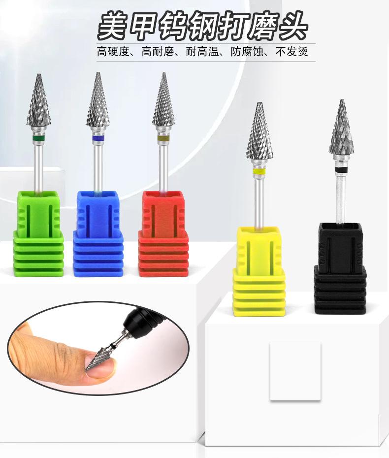 Cabezal de pulido de acero de tungsteno para uñas, punta de acero de tungsteno, taladro eléctrico cónico, herramienta para quitar uñas, nuevo y transfronterizo