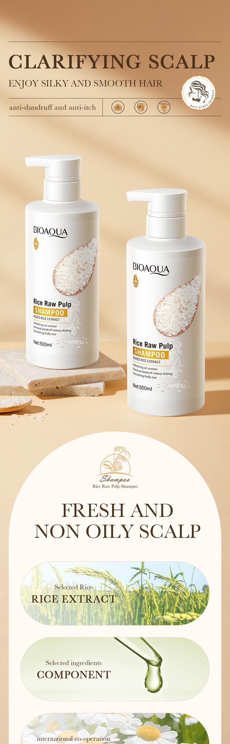 Champú Inglés Completo Bioaoua Puré de Arroz Anticaspa Control de Grasa Champú Venta Directa de Fábrica de Comercio Exterior Transfronterizo