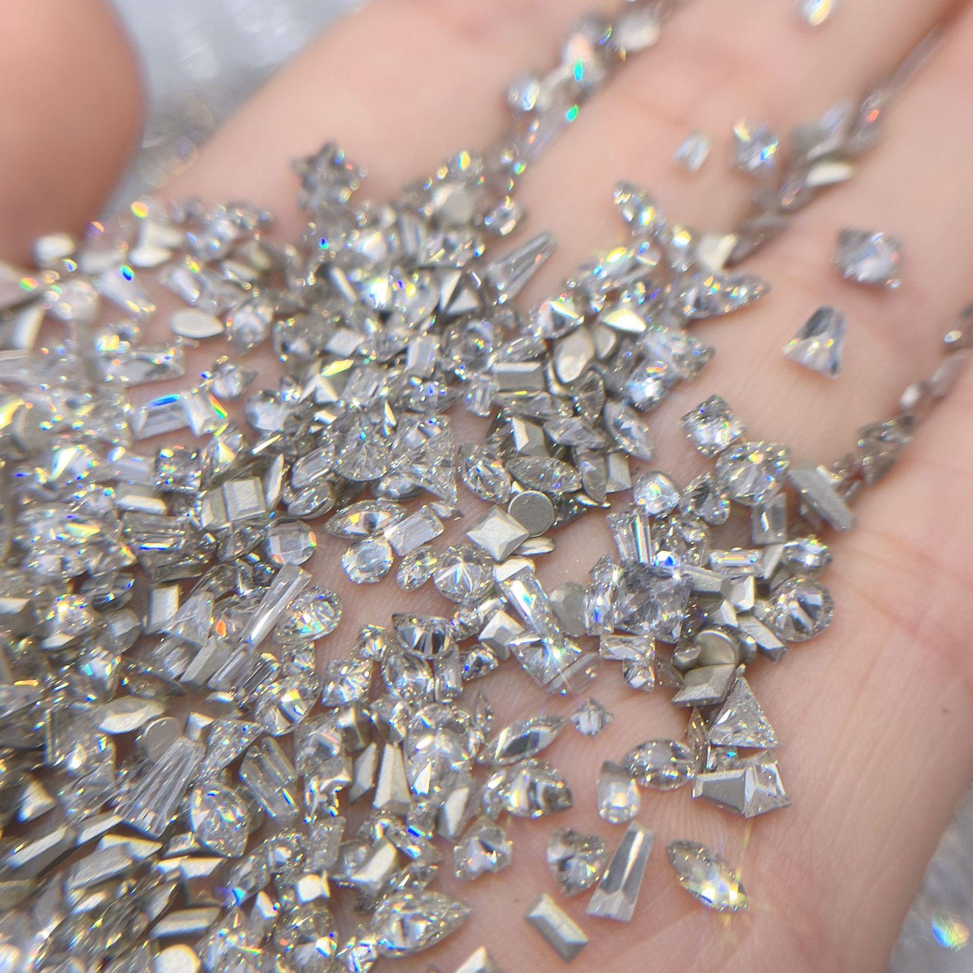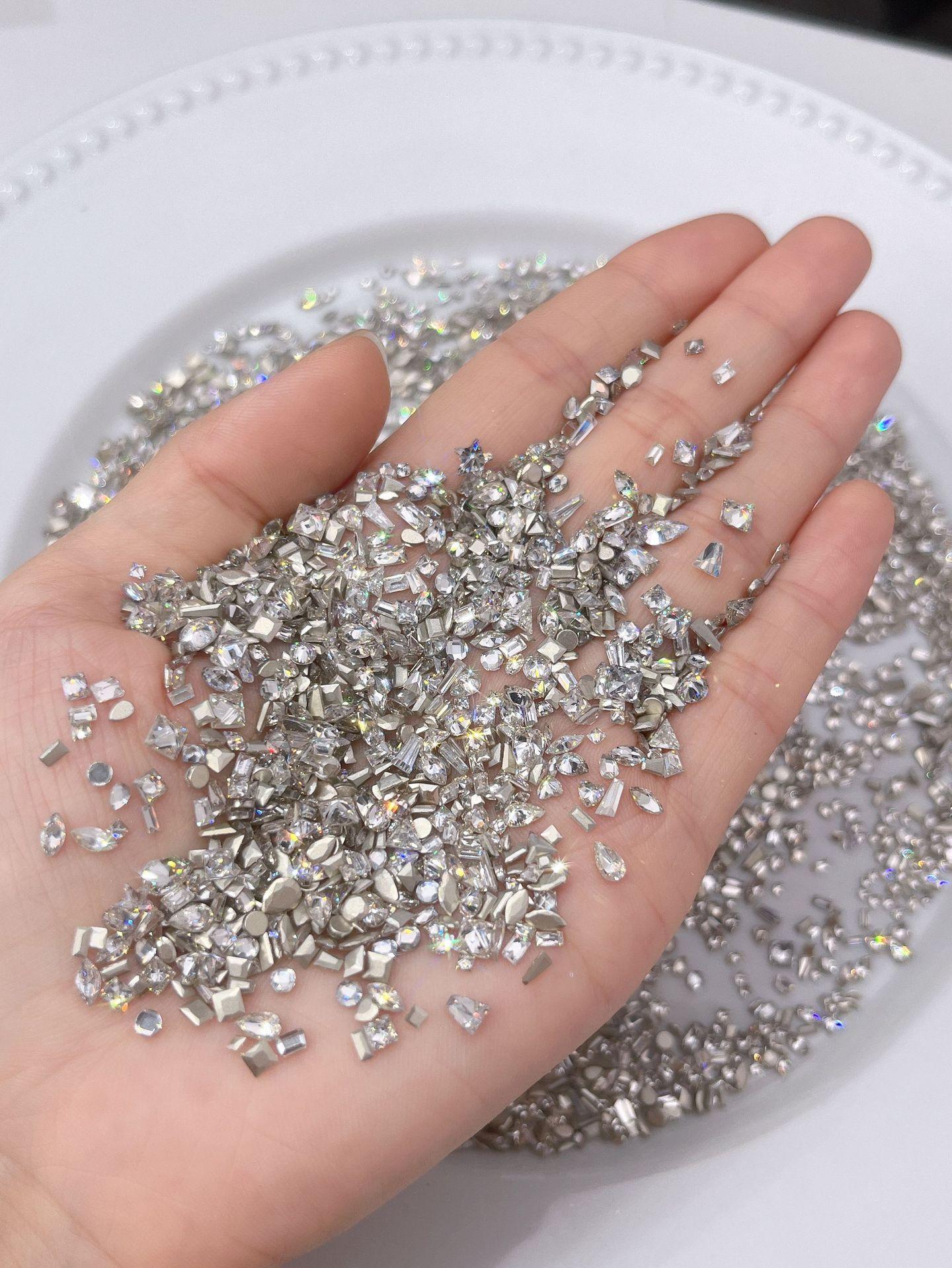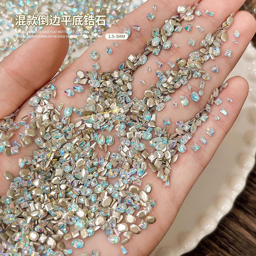 Diamantes especiales de fondo plano súper brillantes, hechos de circonita, mezclados en tamaños, varios grados más brillantes que los diamantes de vidrio ordinarios, ¡altamente recomendados por los salones de uñas!