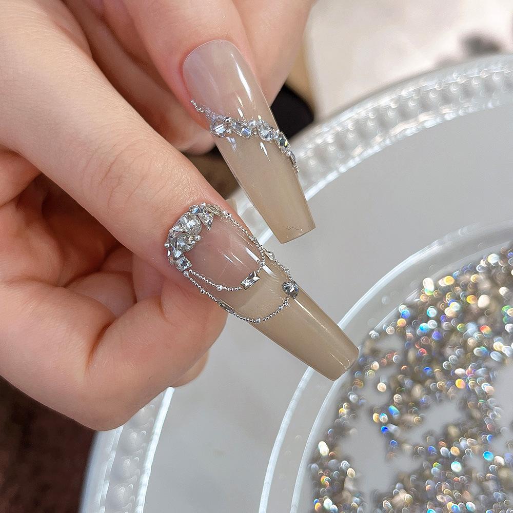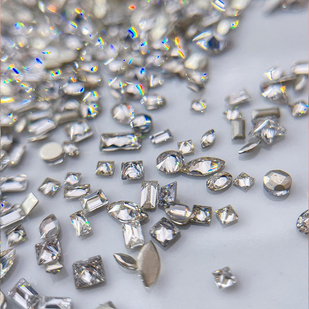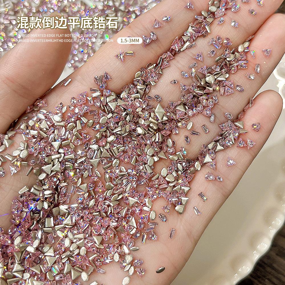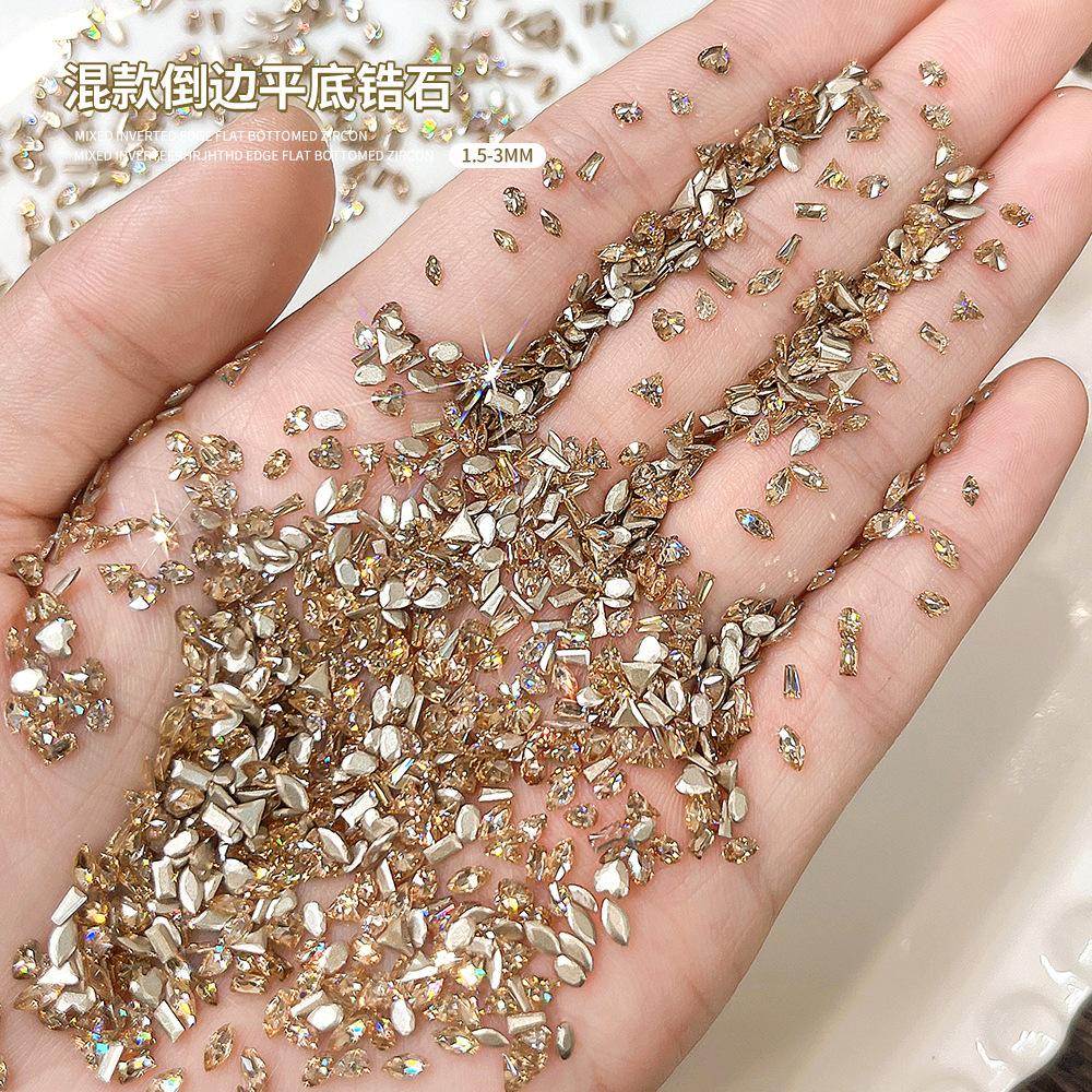 Diamantes especiales de fondo plano súper brillantes, hechos de circonita, mezclados en tamaños, varios grados más brillantes que los diamantes de vidrio ordinarios, ¡altamente recomendados por los salones de uñas!