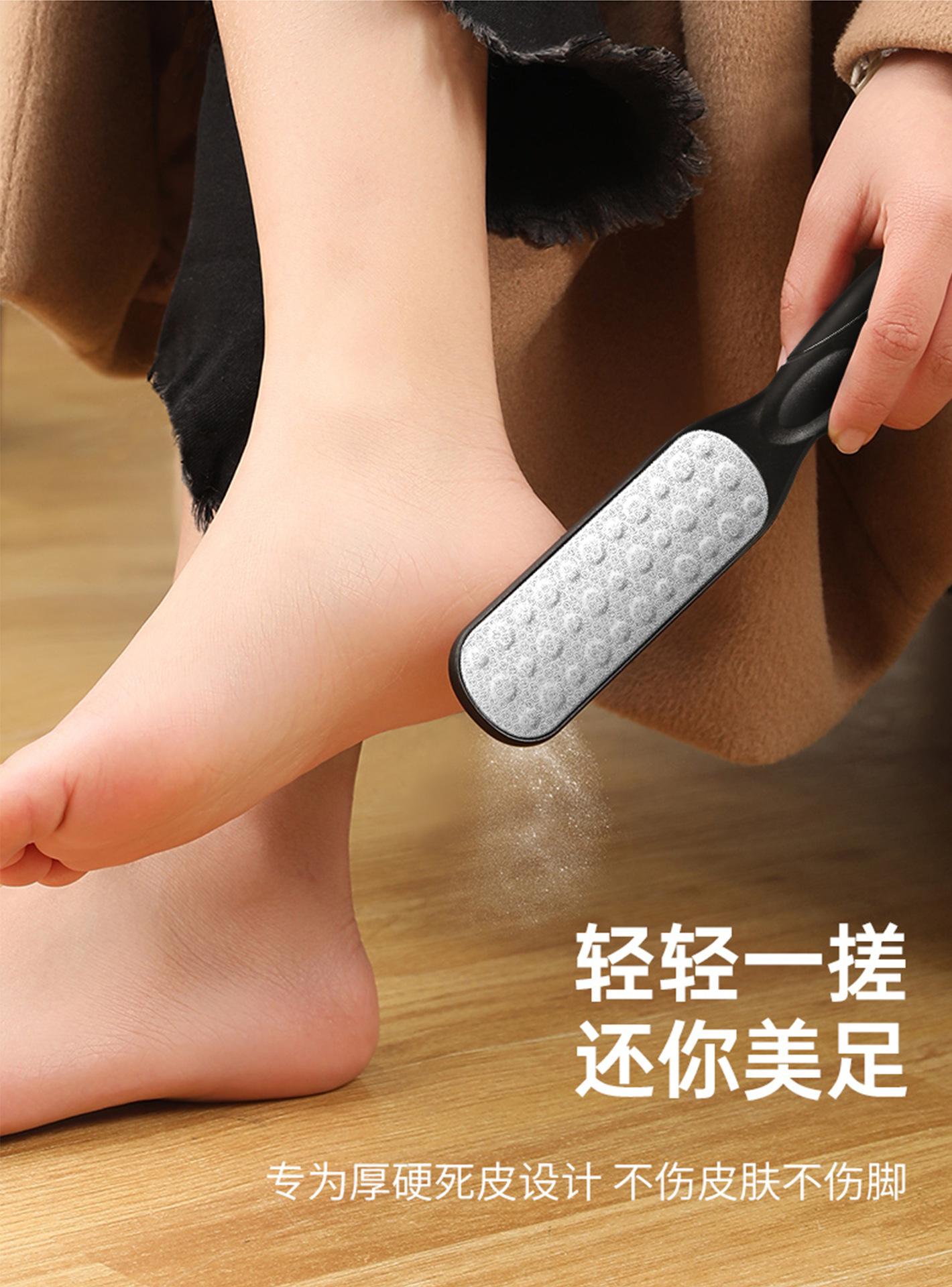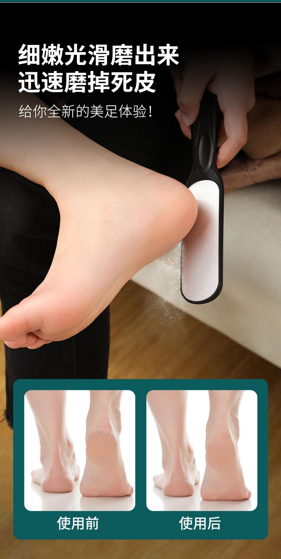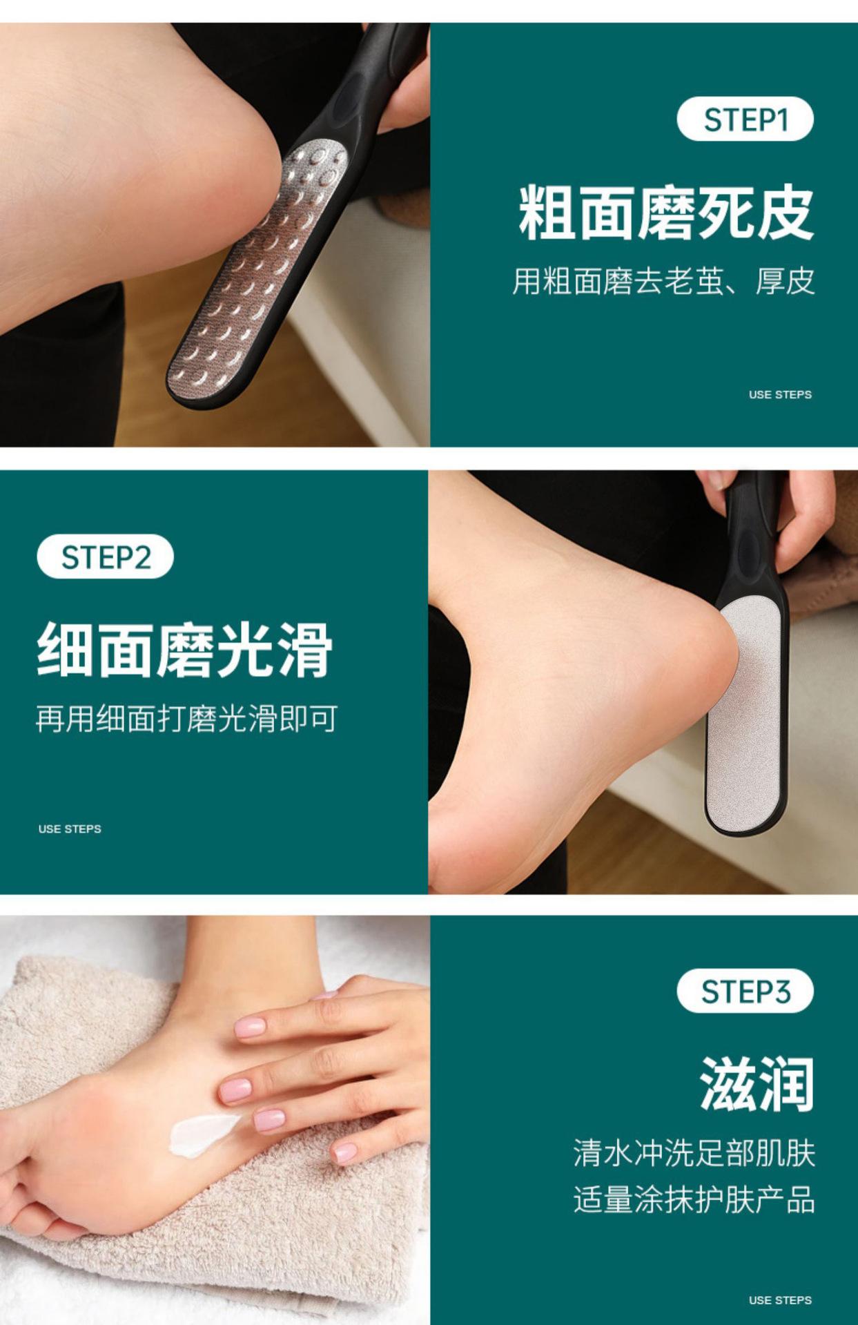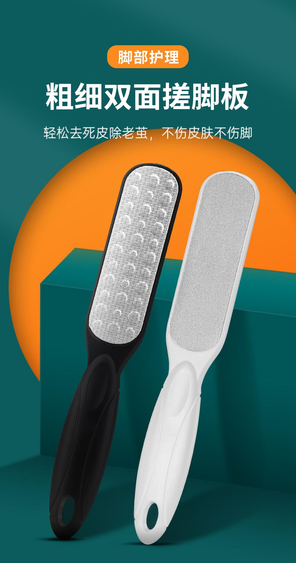 Lima de pies de acero inoxidable de doble cara, tabla para frotar los pies, mango de plástico, piel muerta, eliminación de callos, pulidor de pies, herramienta de pedicura