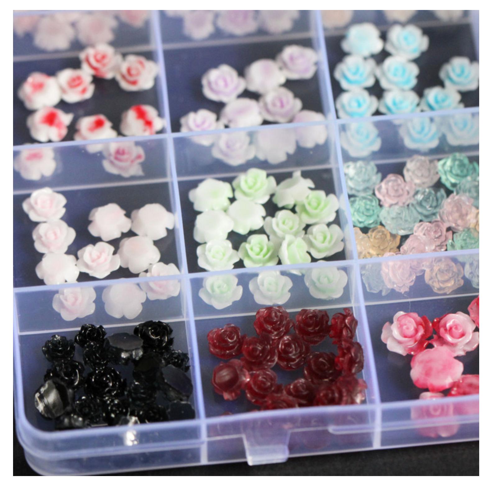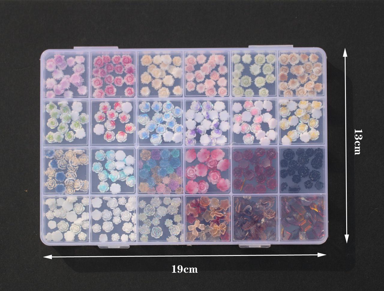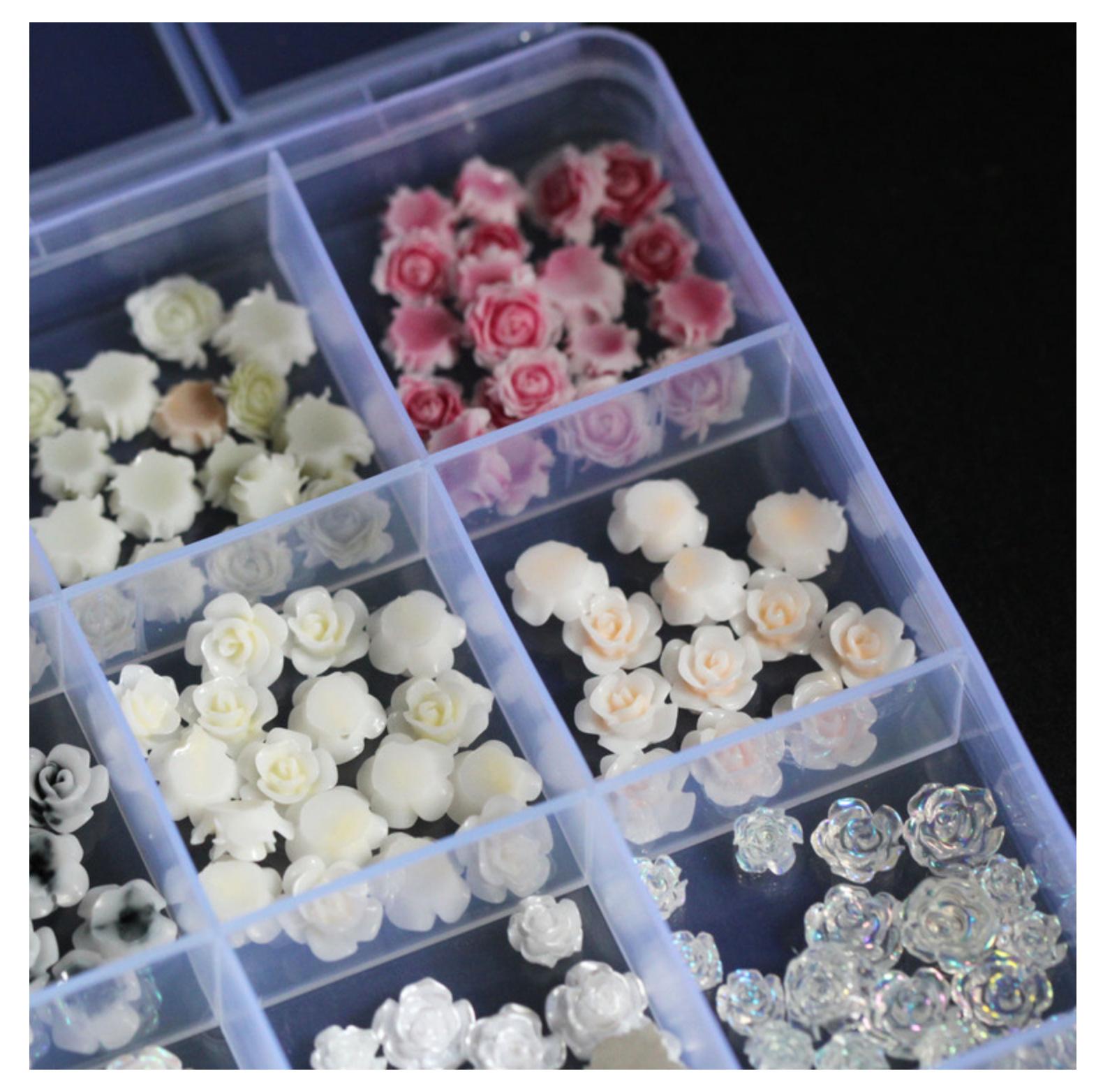 Accesorios para taladro de uñas con diseño de flor de camelia de resina vintage mixta de 24 cuadrículas y rosas