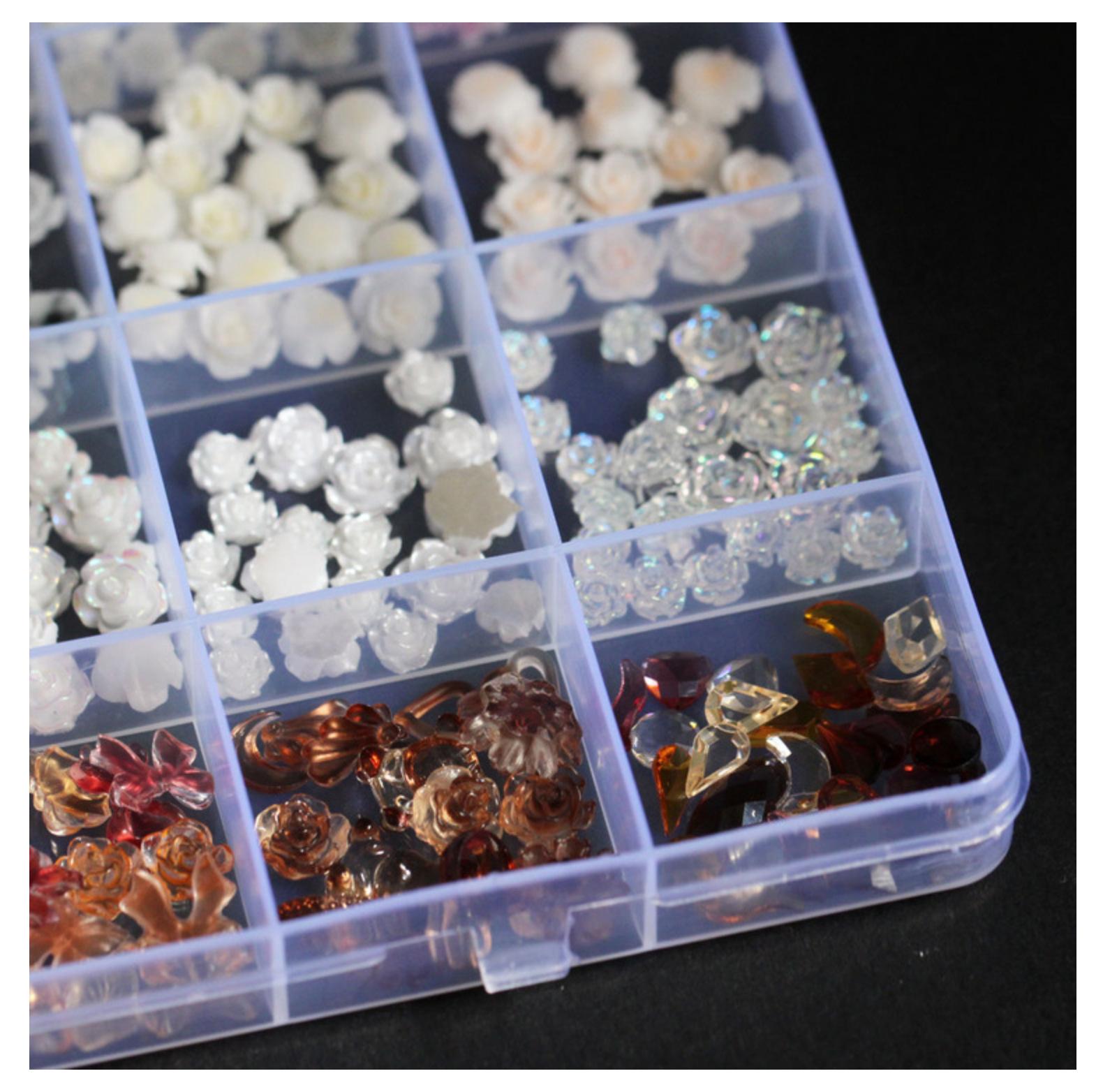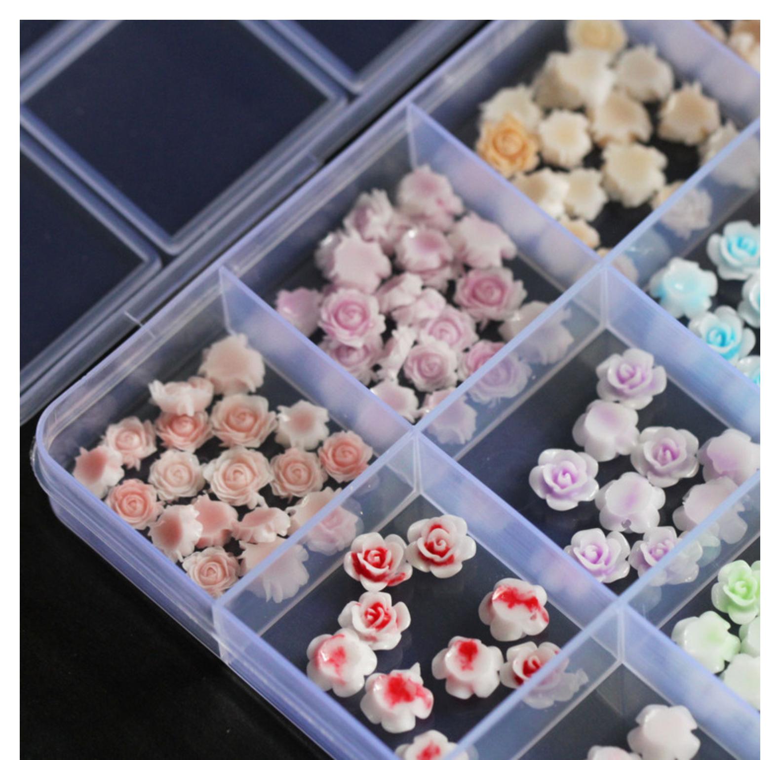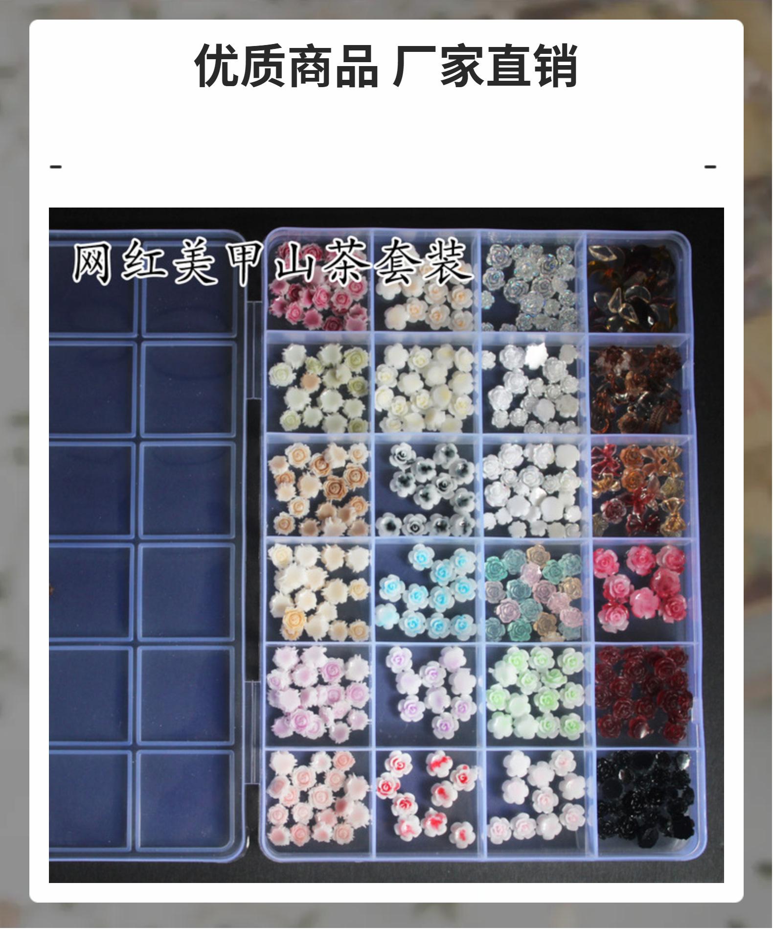 Accesorios para taladro de uñas con diseño de flor de camelia de resina vintage mixta de 24 cuadrículas y rosas