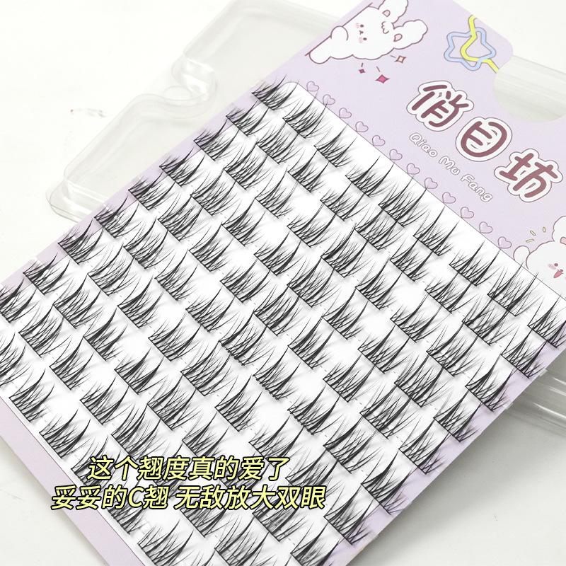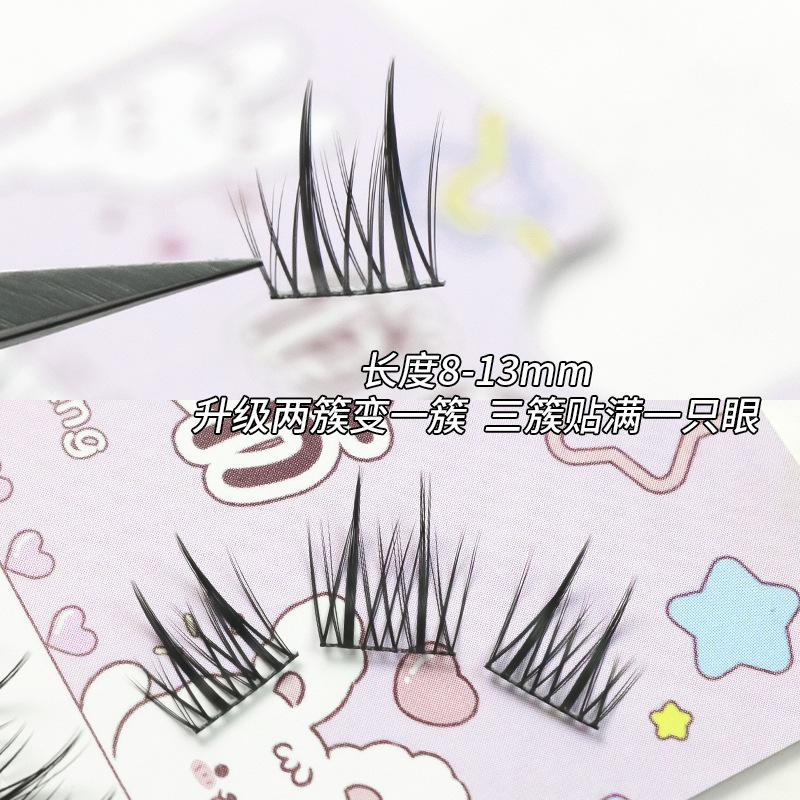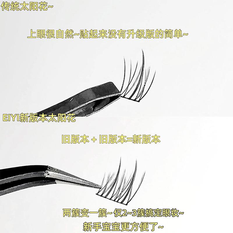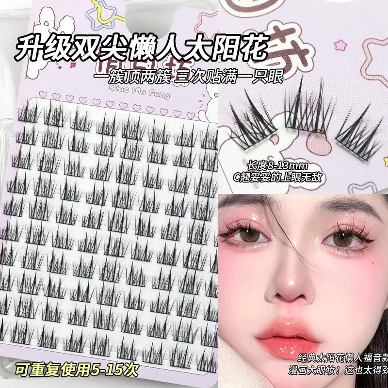 Pestañas postizas de girasol de doble punta mejoradas, simulación natural femenina, pestañas segmentadas de tallo negro de trilogía