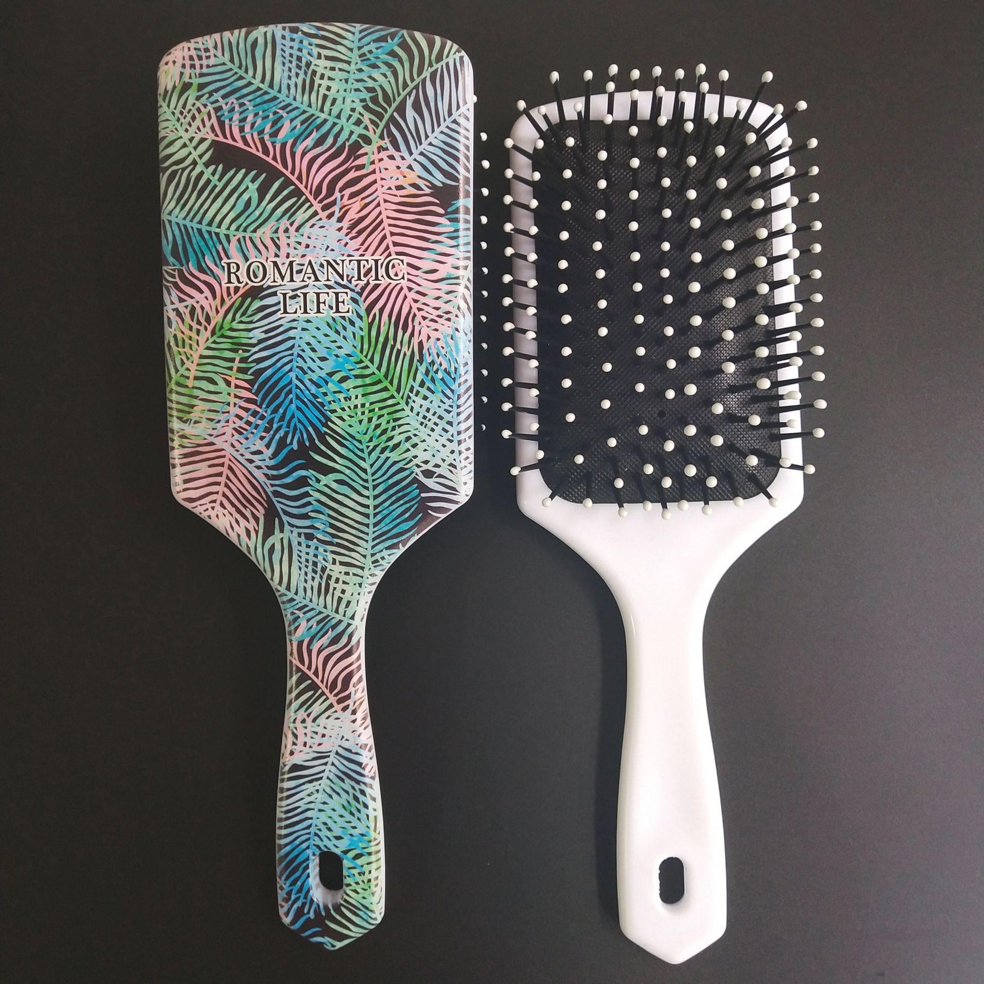 Peine Cuadrado con Estampado de Plantas para Masaje en Casa, Cojín de Aire, para Cabello Esponjoso y Alisado, Souvenir, Peine con Bolsa de Aire