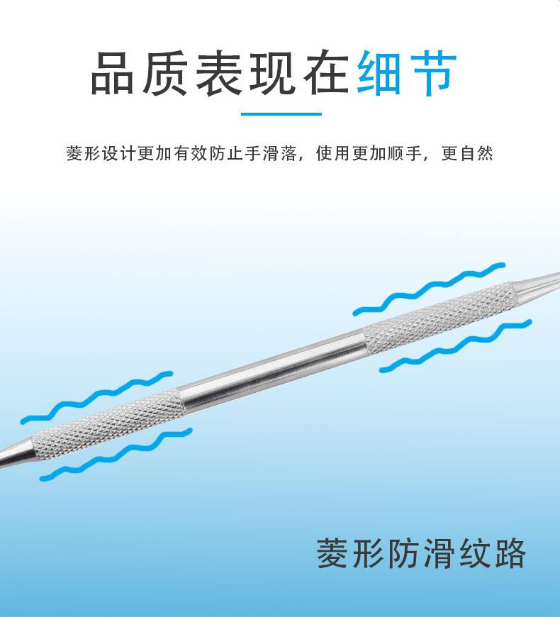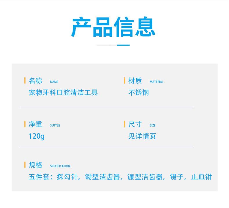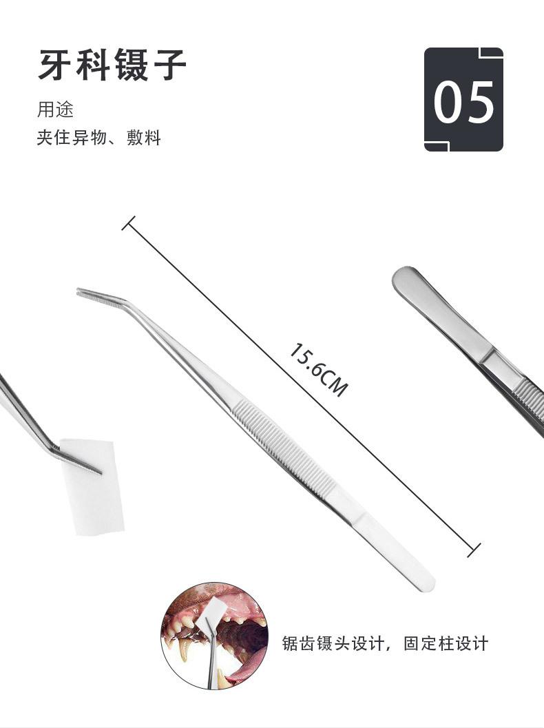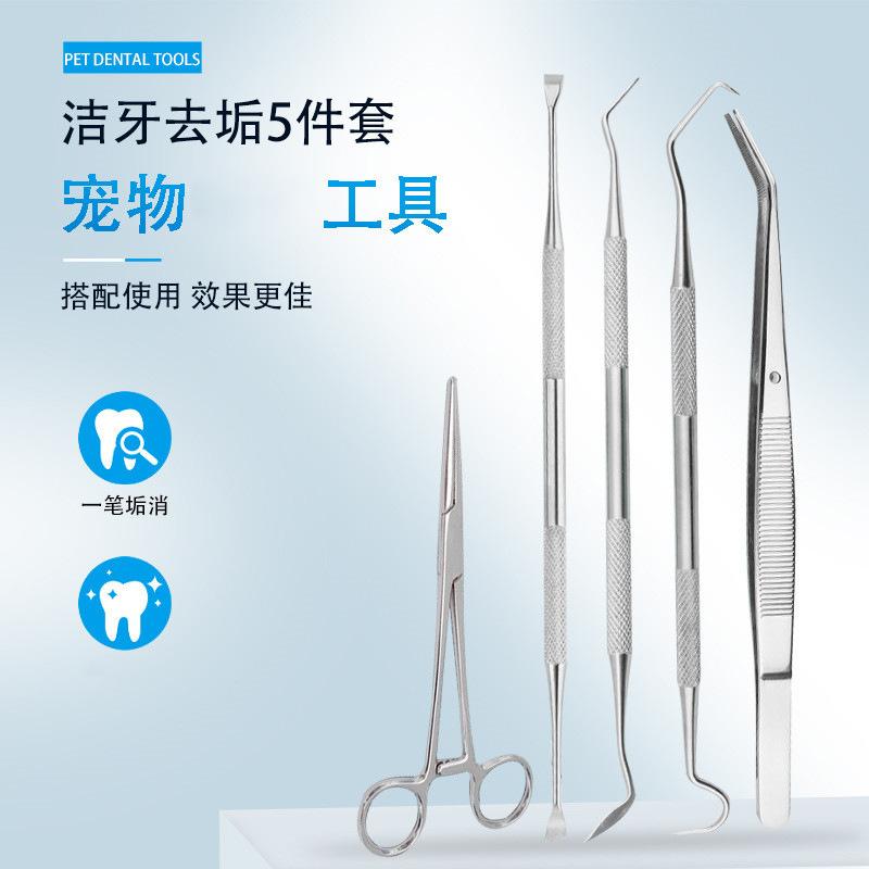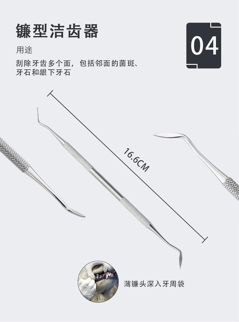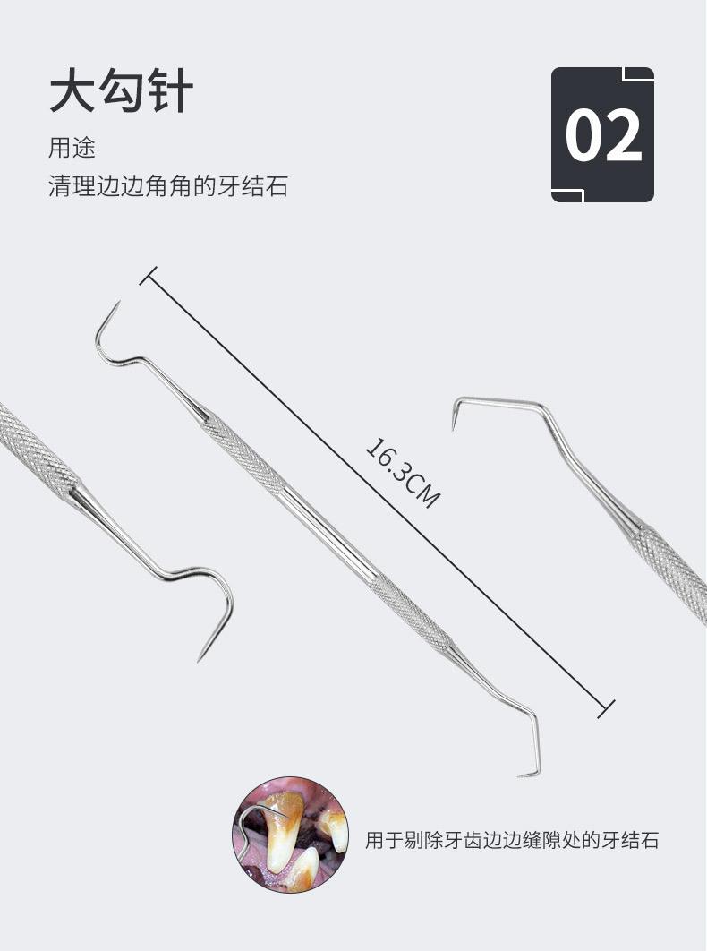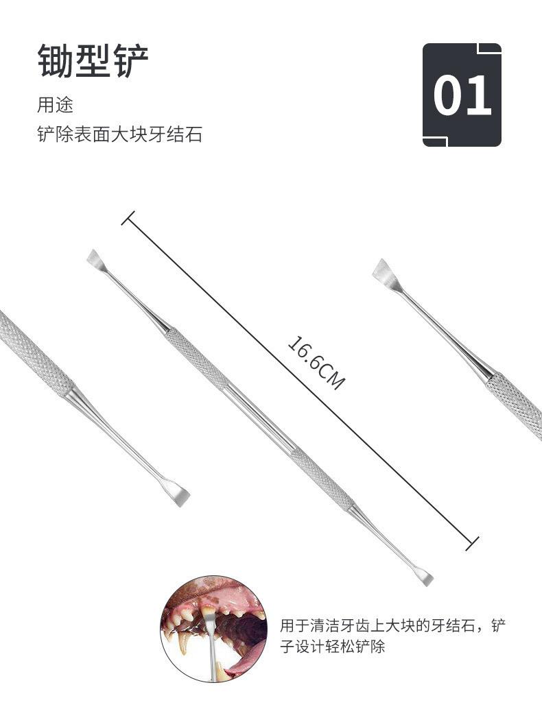 Limpiador de dientes de doble cabezal con sonda de acero inoxidable, tipo azada, para mascotas.