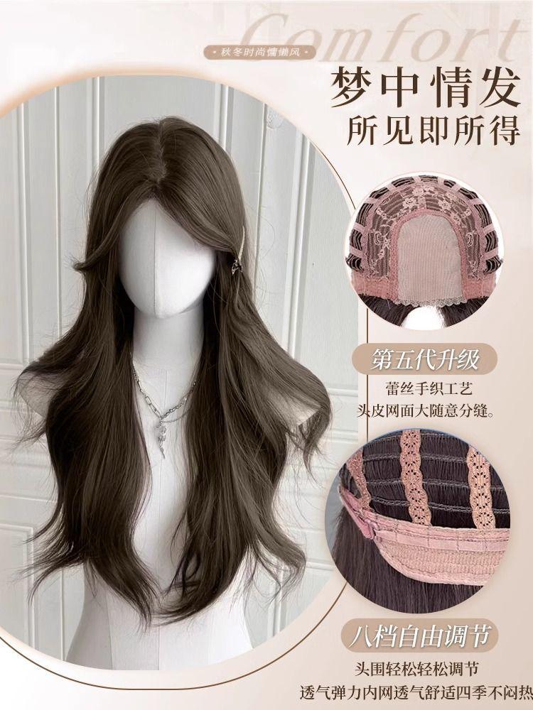 Peluca de encaje pequeña para mujer, cabello largo, gris, castaño, medio largo y rizado, con ondas grandes, cabello artificial, cobertura total natural.