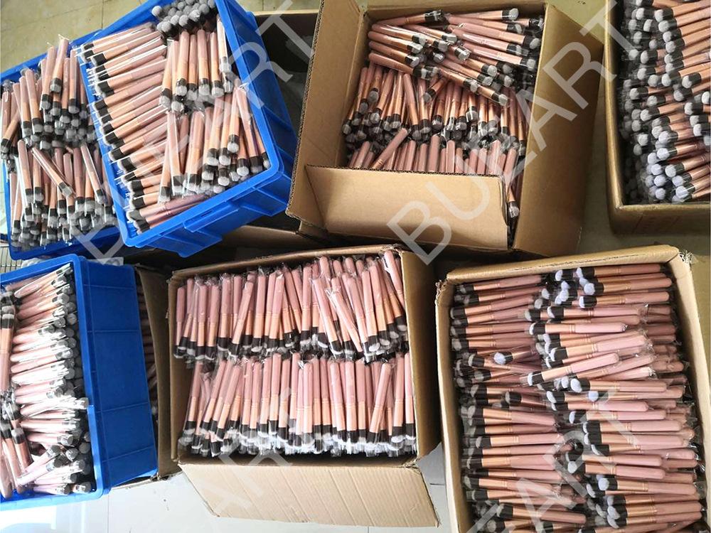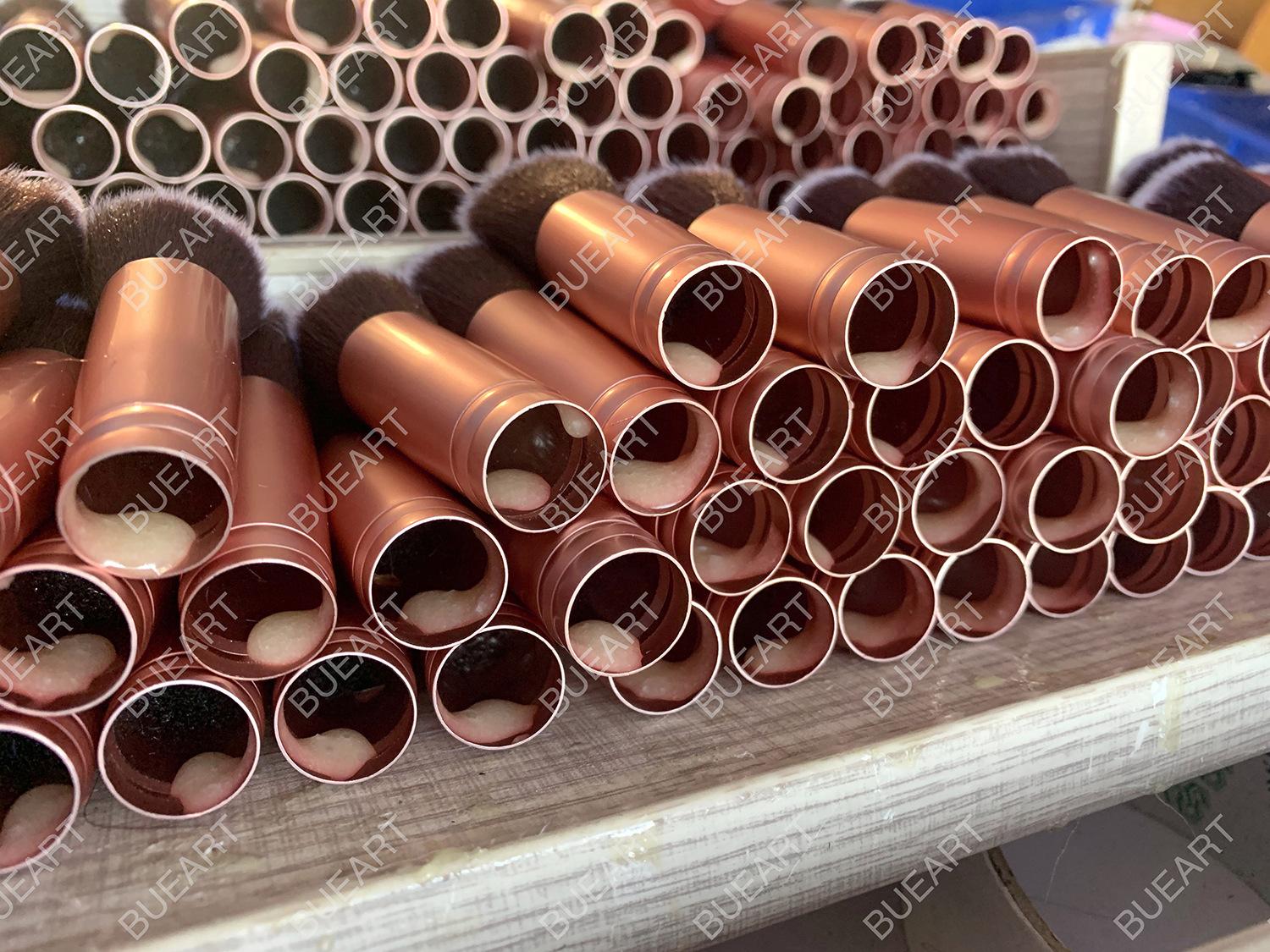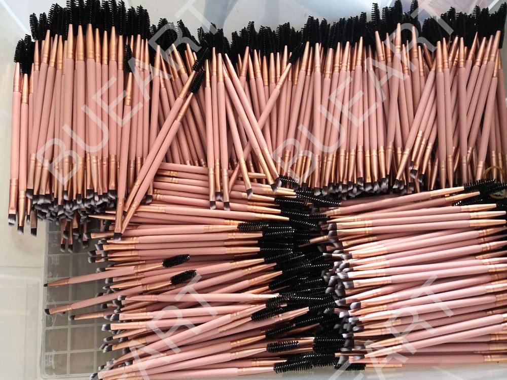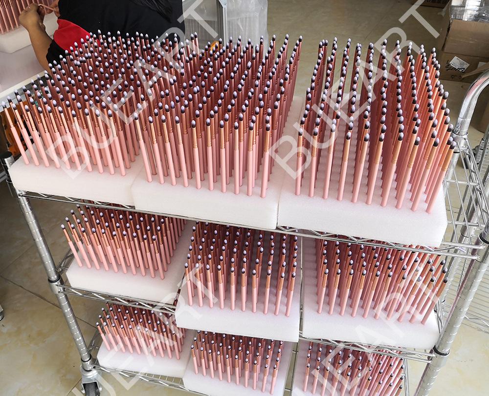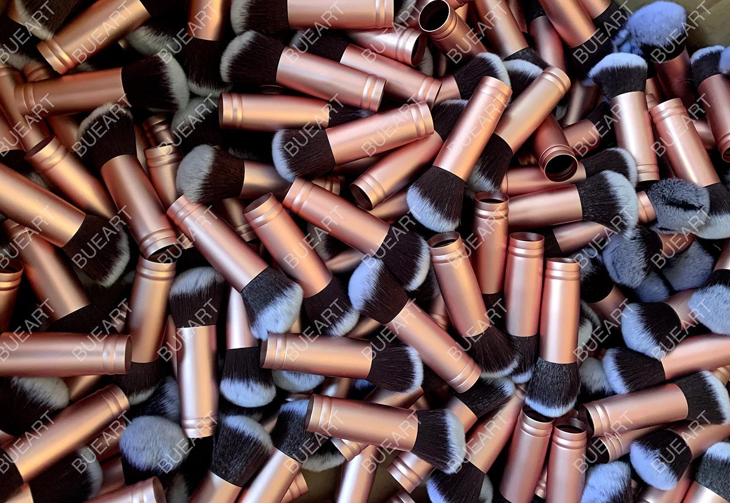 ![]() Juego de 15 brochas de maquillaje de oro rosa con cerdas de fibra negra y mango de madera, incluye bolsa nueva.