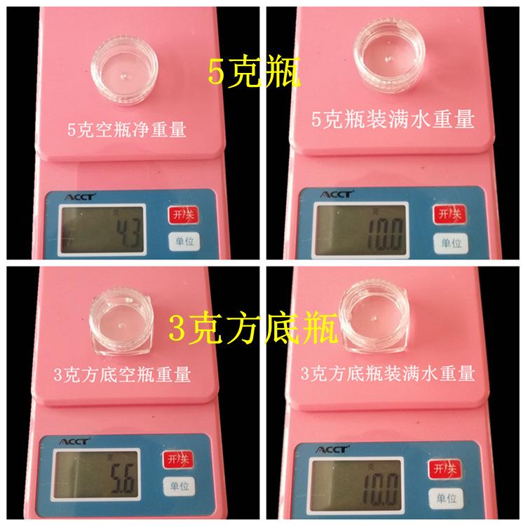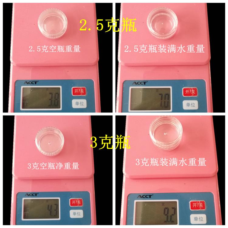 Peso del producto: peso neto 4.3g, tapa de la botella 1.4g, fondo de la botella 2.9g;