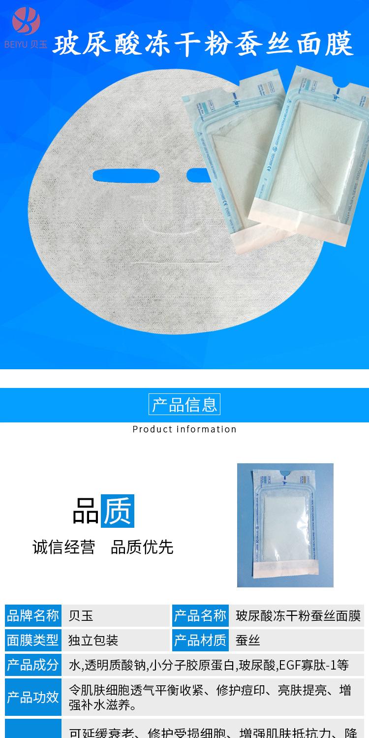 Papel de mascarilla de polvo liofilizado de ácido hialurónico nuevo directo de fábrica viene con esencia hidratante y humectante mascarilla rejuvenecedora de la piel