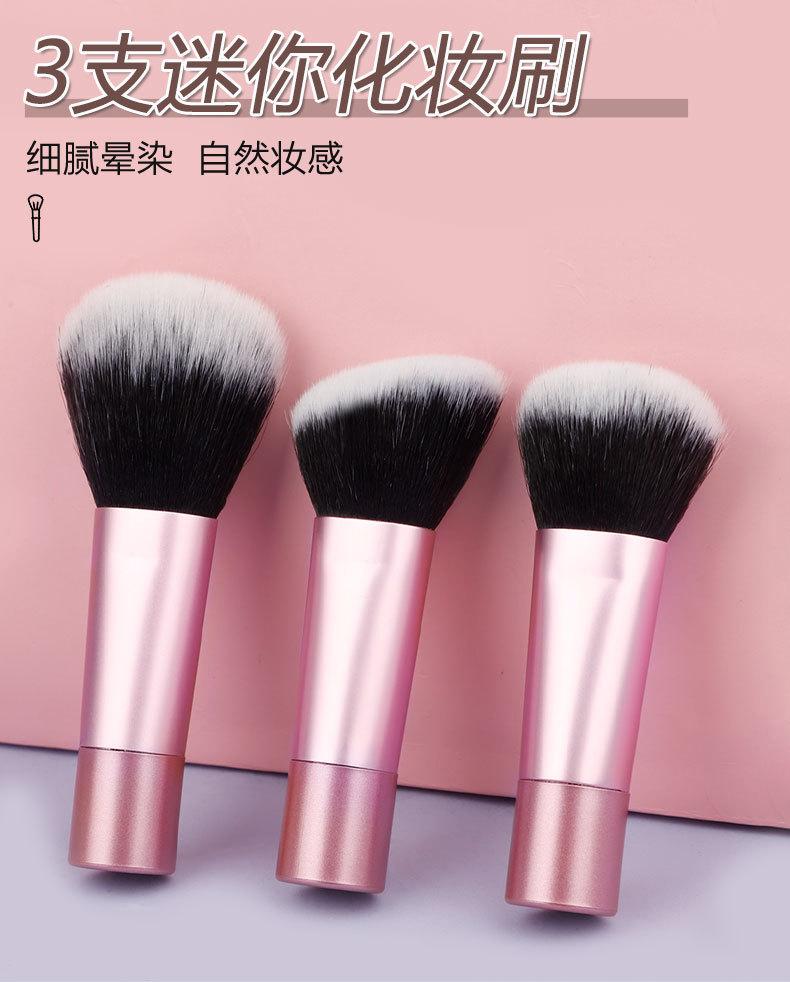 3 mini brochas de maquillaje, brocha para polvos sueltos, brocha para base, brocha para contorno con cabezal oblicuo, brocha de maquillaje de mango corto, herramientas de belleza