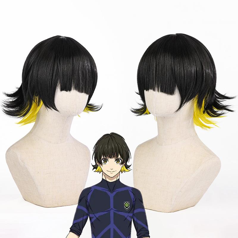 AZUL prisión BLUE LOCK personaje de anime Bee Music parte trasera peluca cosplay negro amarillo combinación de colores
