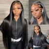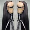 Peluca de encaje frontal caliente europea y americana para mujer, cabello negro, largo medio, liso, esponjoso, natural, de moda, conjunto completo en stock