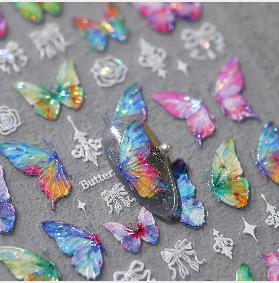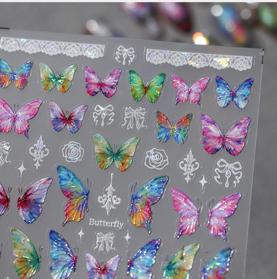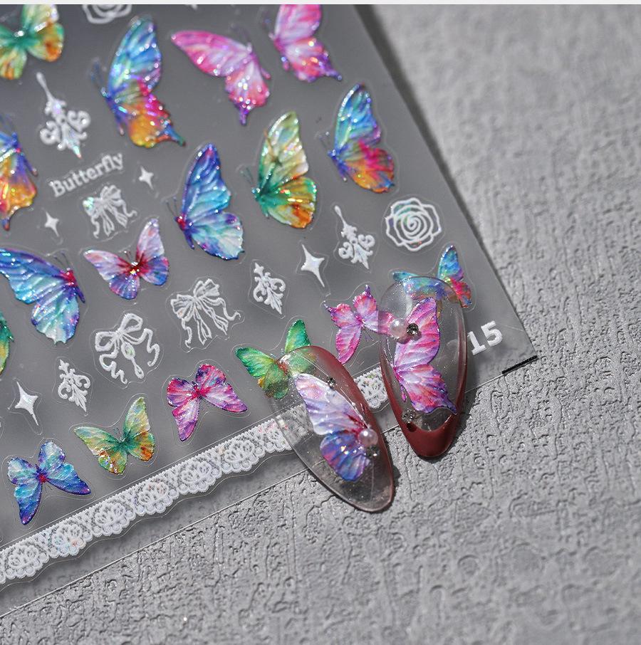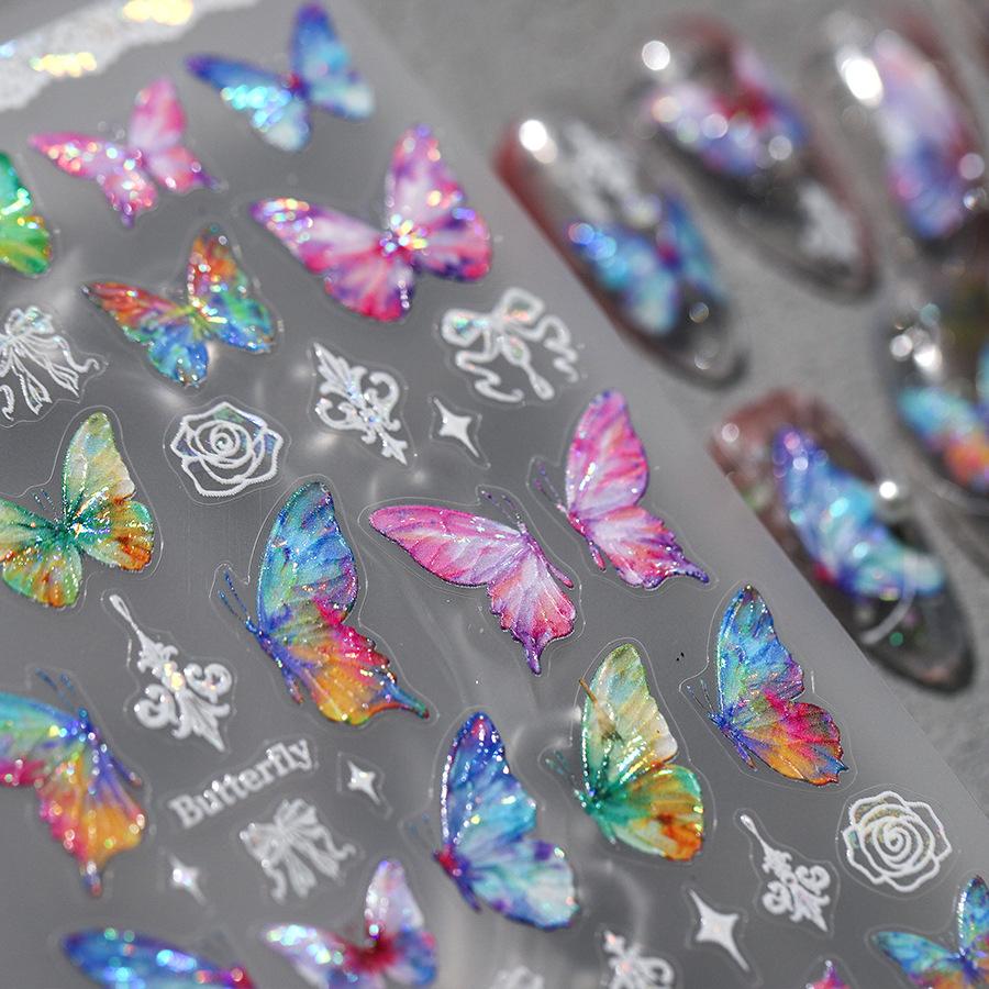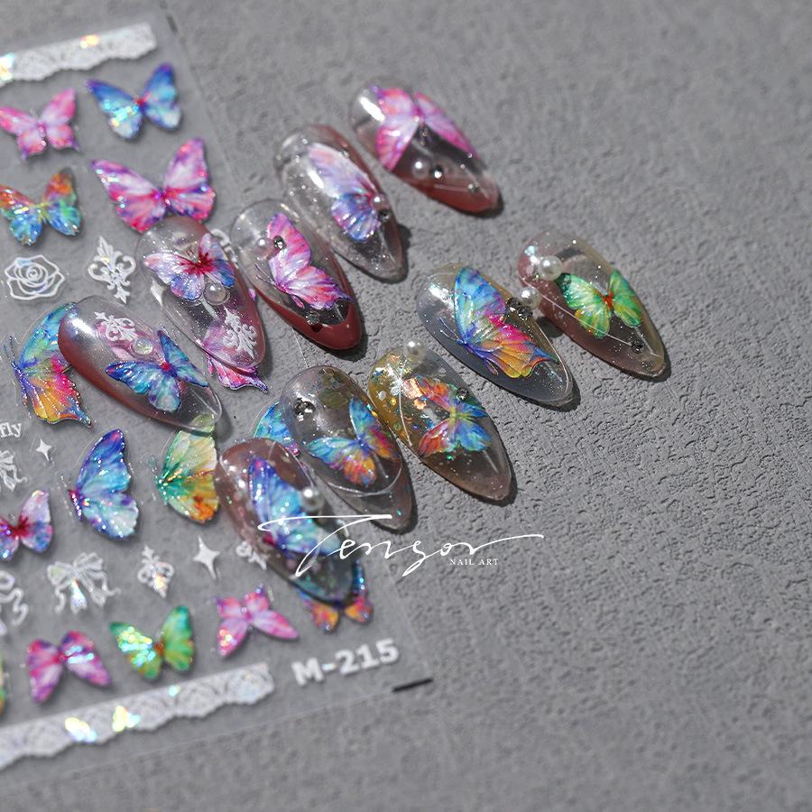 Pegatinas adhesivas para uñas con diseño de mariposas de colores, diseño de dibujos animados de Año Nuevo, serie M-215