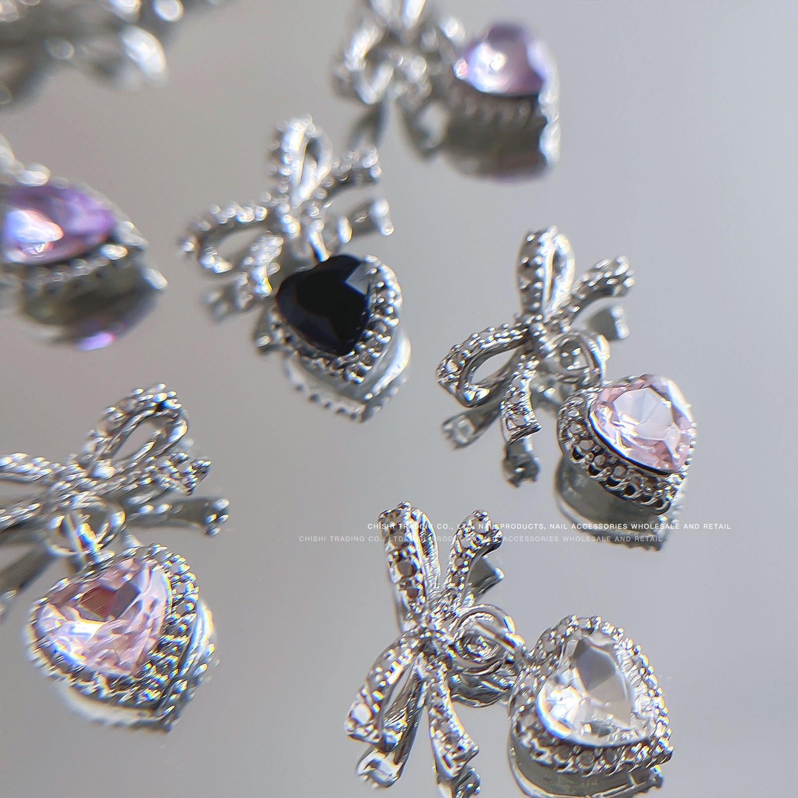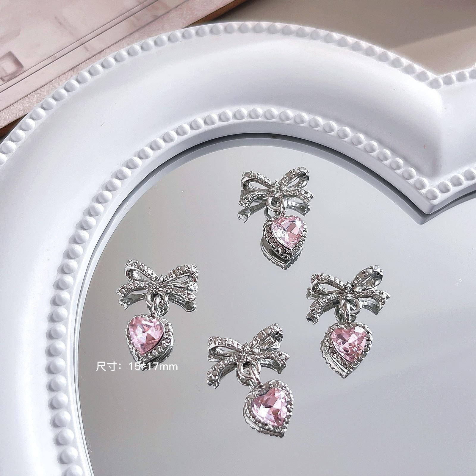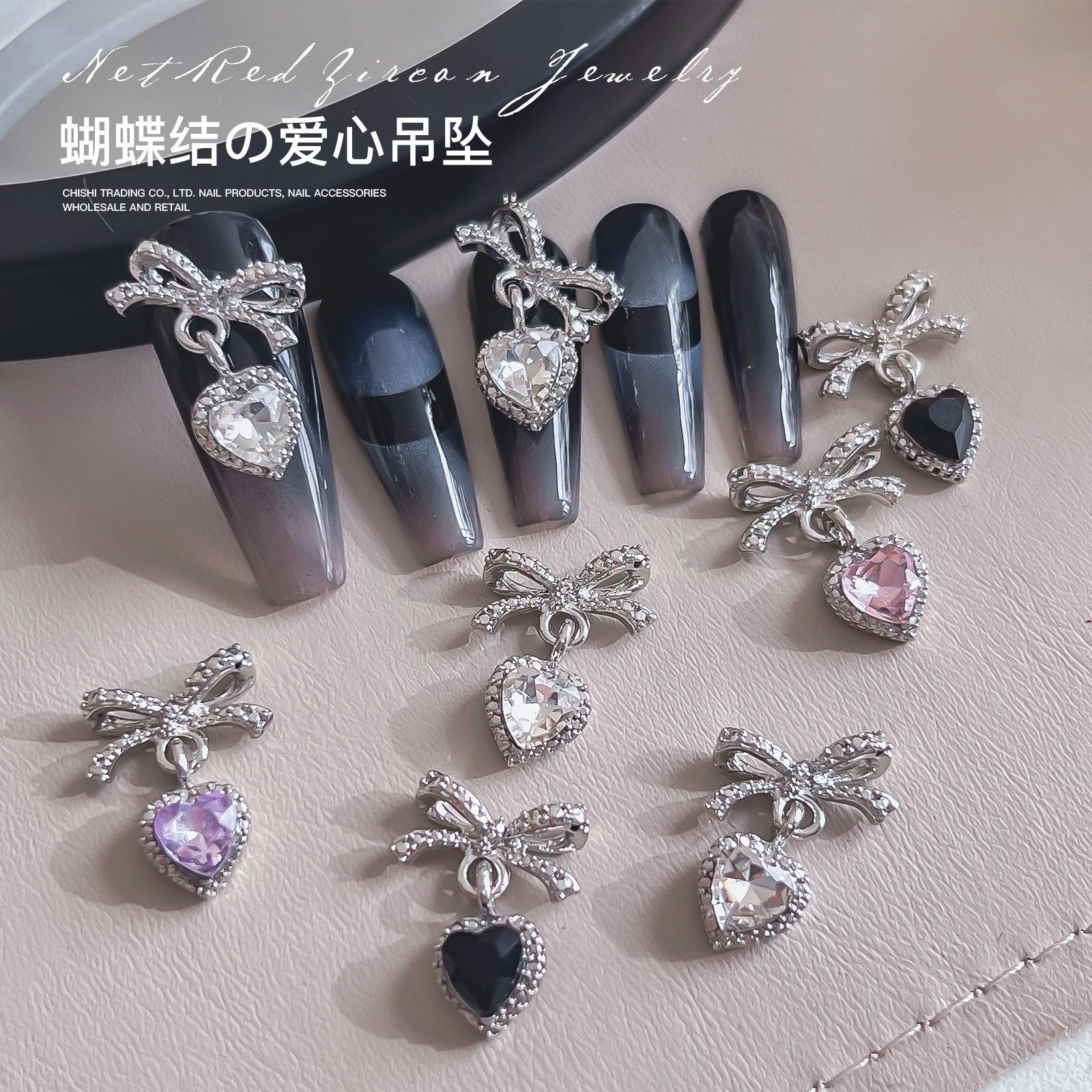 Nuevo colgante de lazo de amor para decoración de uñas, joyería ligera de lujo, nicho, familia rica, oro, diamante, decoración de uñas, venta al por mayor