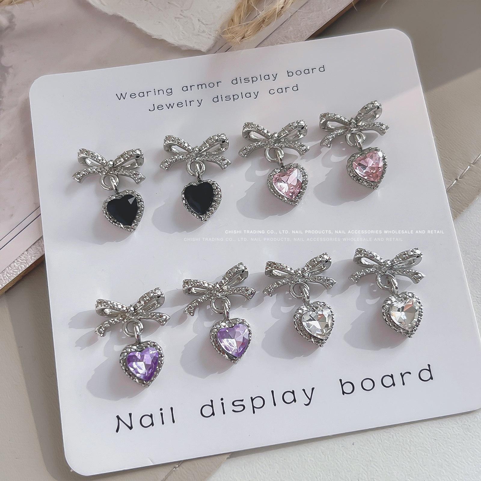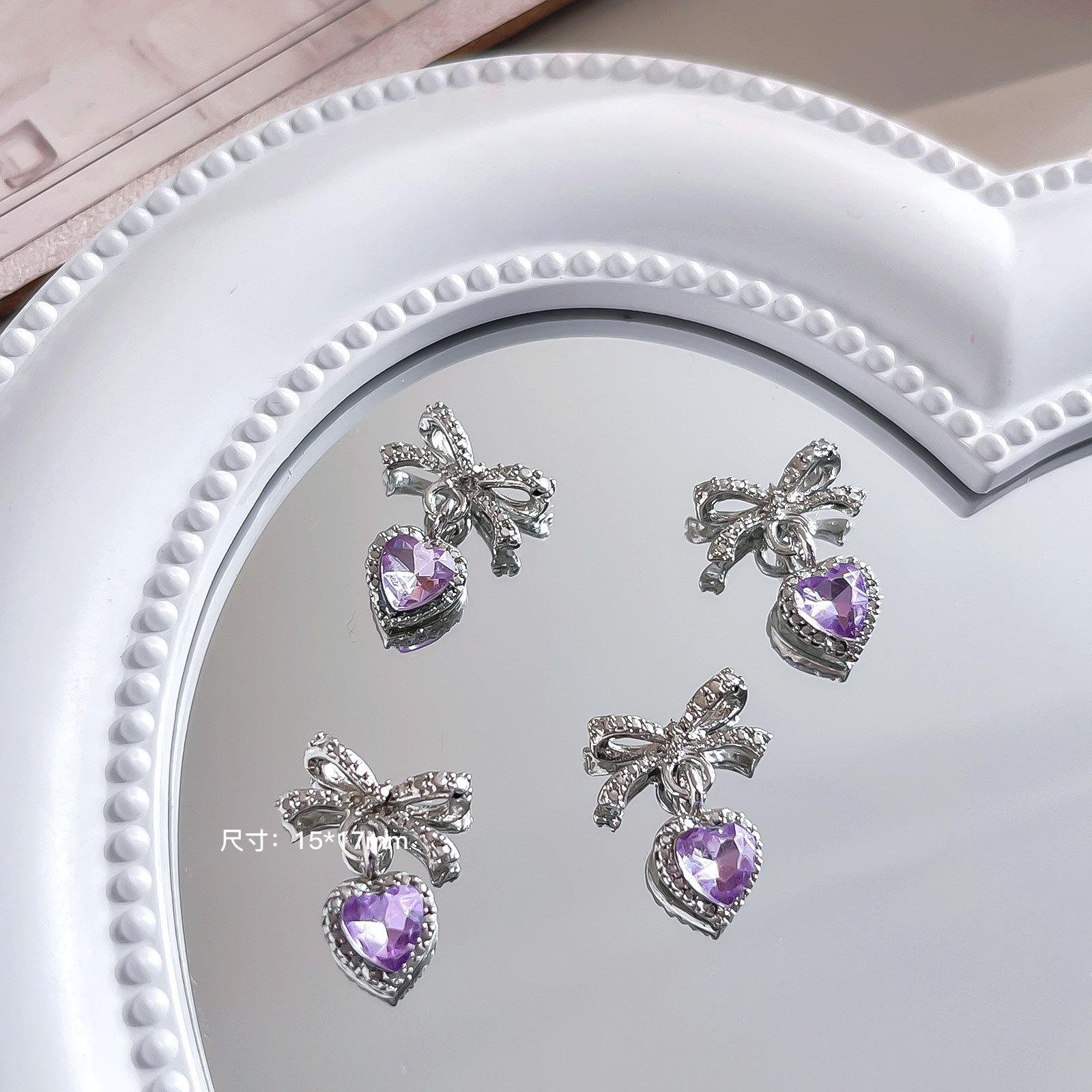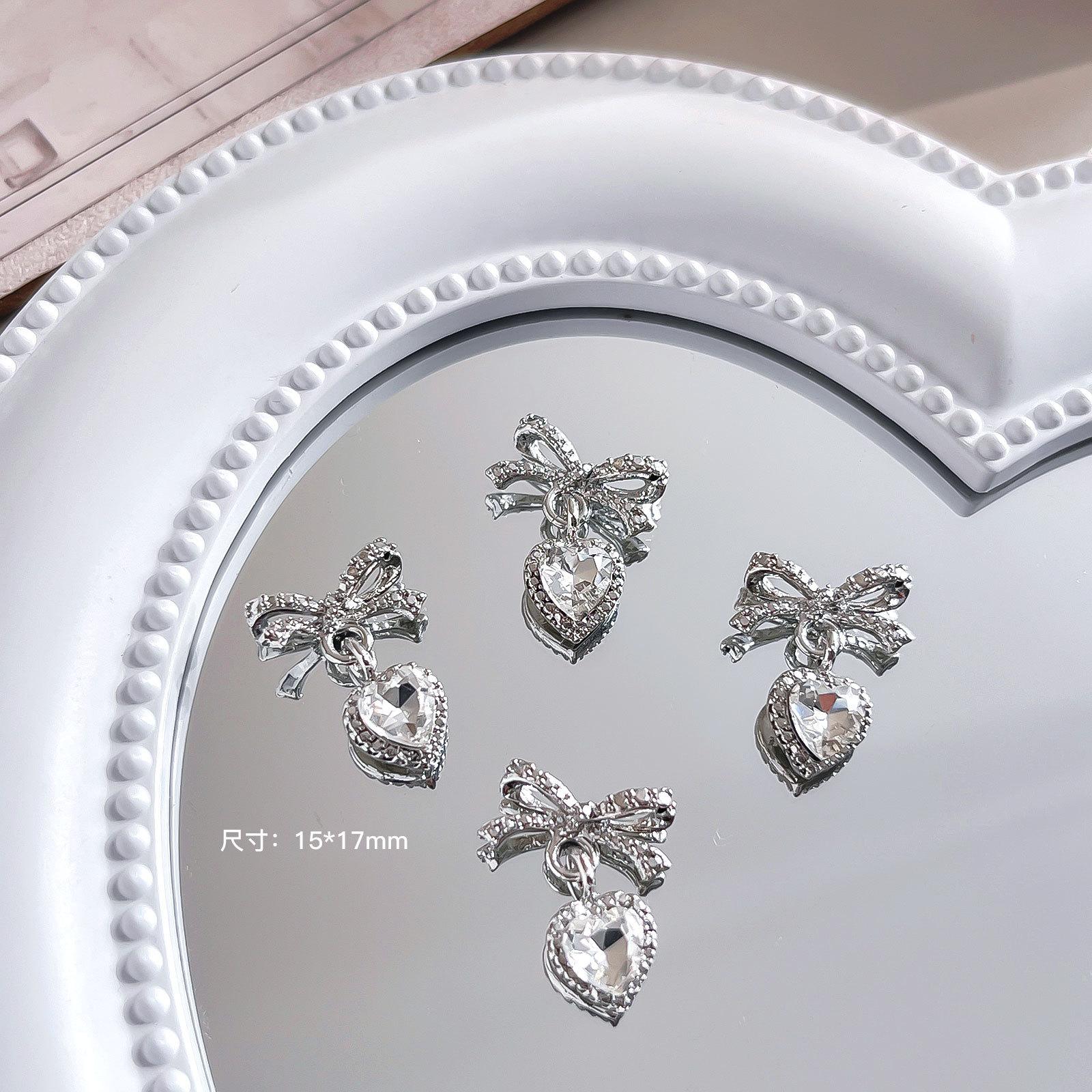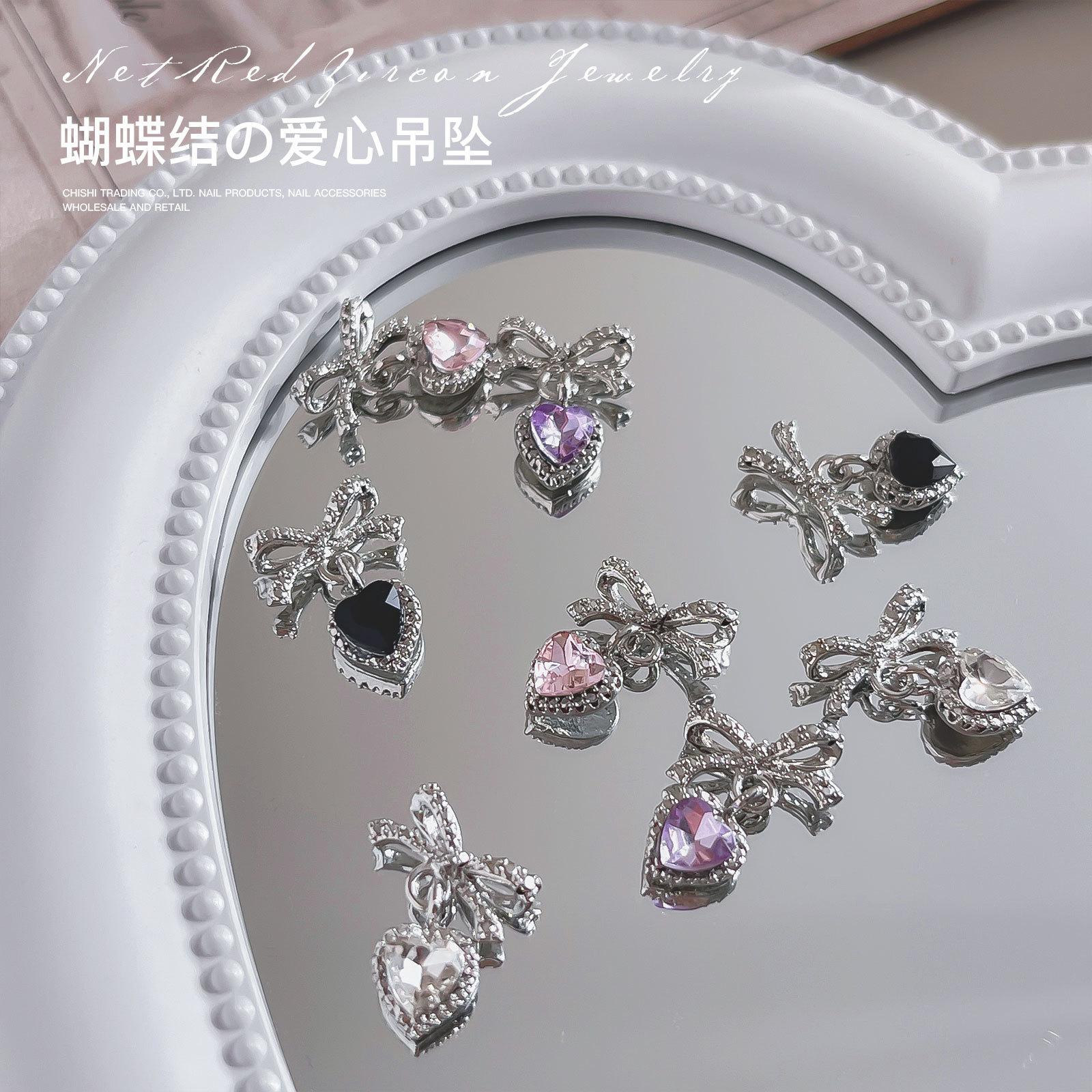 Nuevo colgante de lazo de amor para decoración de uñas, joyería ligera de lujo, nicho, familia rica, oro, diamante, decoración de uñas, venta al por mayor