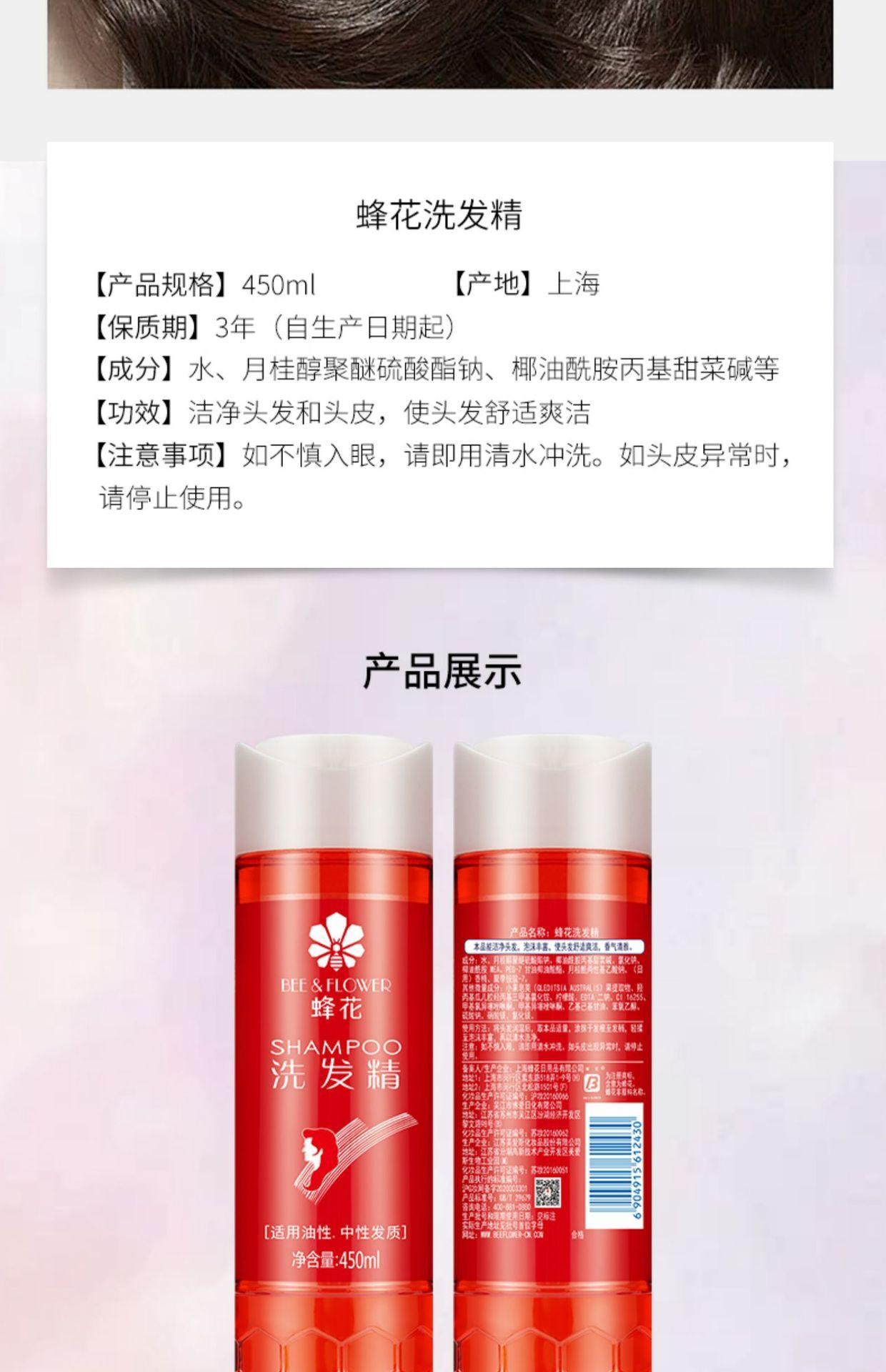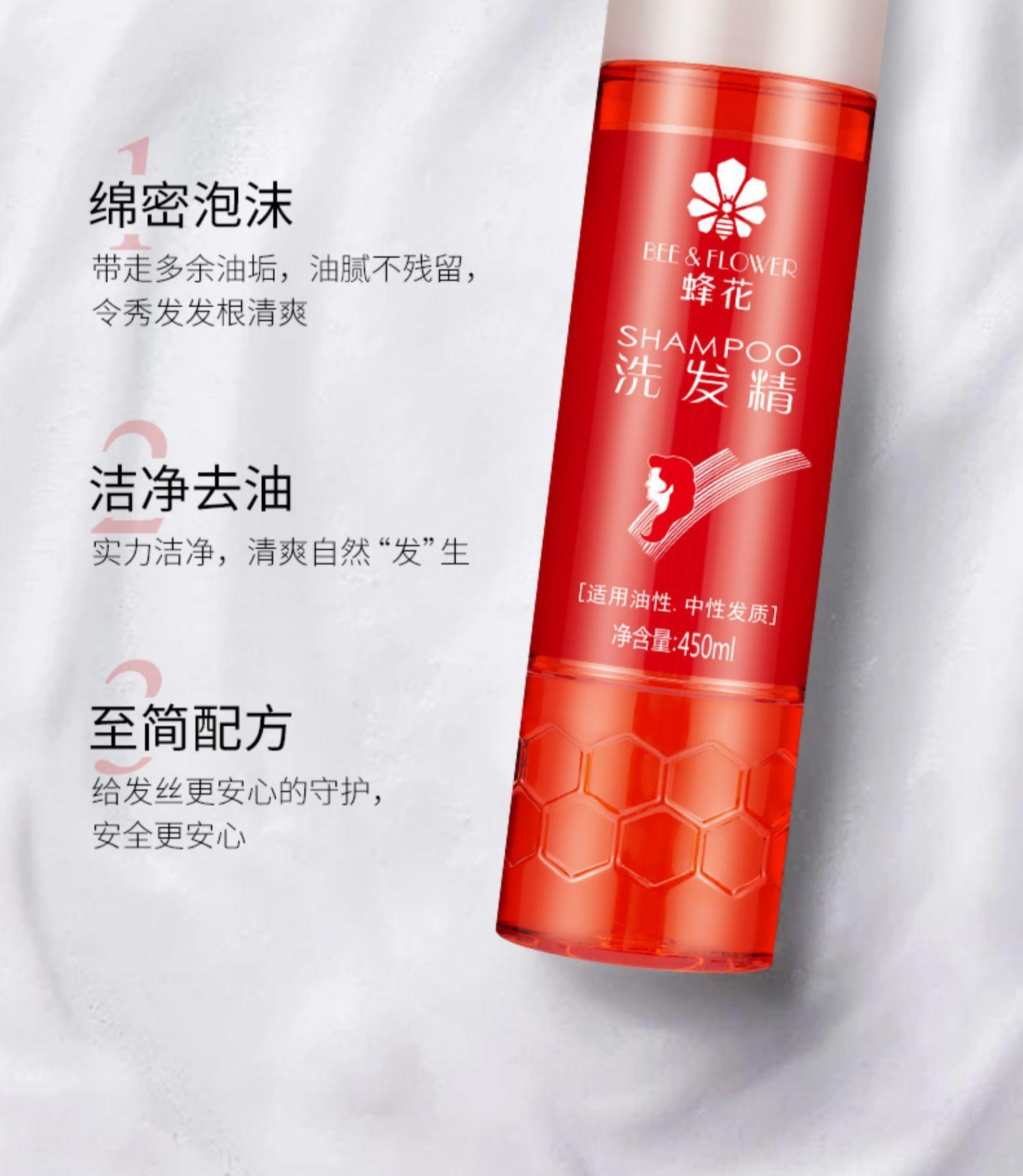 Champú Marca Shanghai Bee Flower 450ml Control de Grasa Champú Anticaspa para Hombres y Mujeres Sin Silicona Champú Suave Genuino