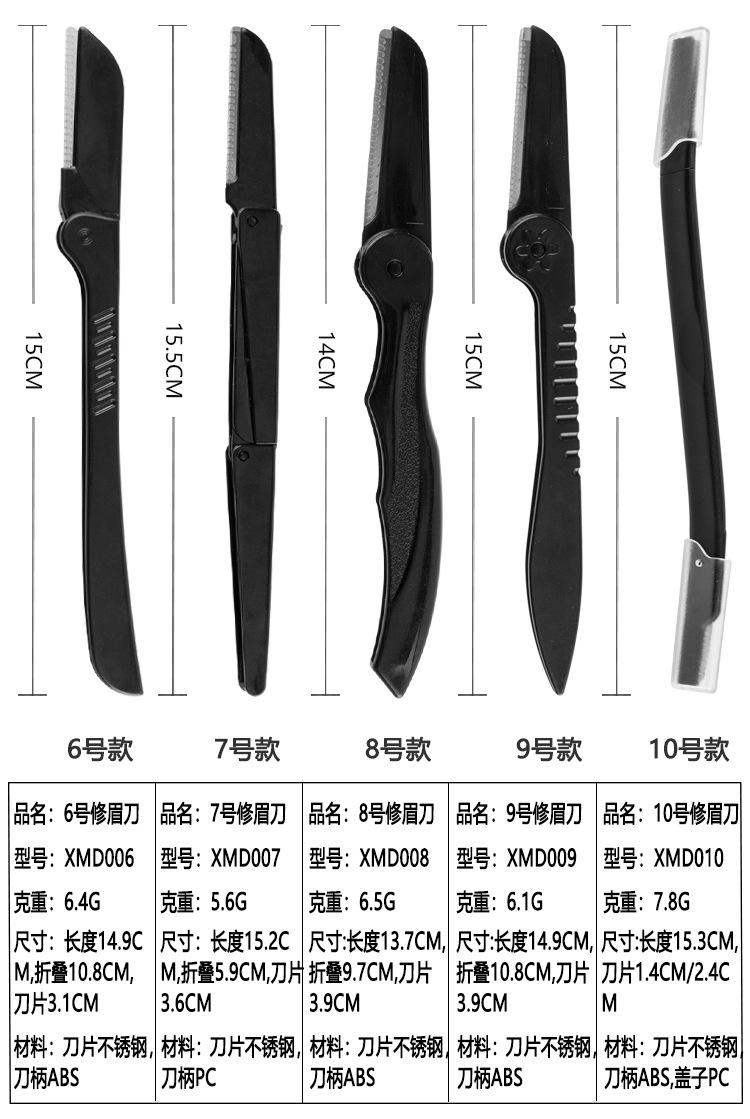 Cuchillo recortador de cejas con funda protectora, 10 estilos, maquillaje, afeitado de cejas, herramientas de maquillaje de belleza, cuchillo para cejas