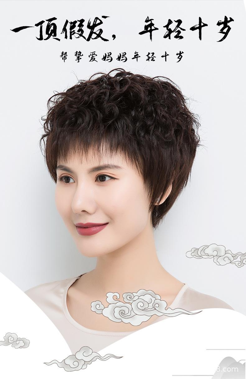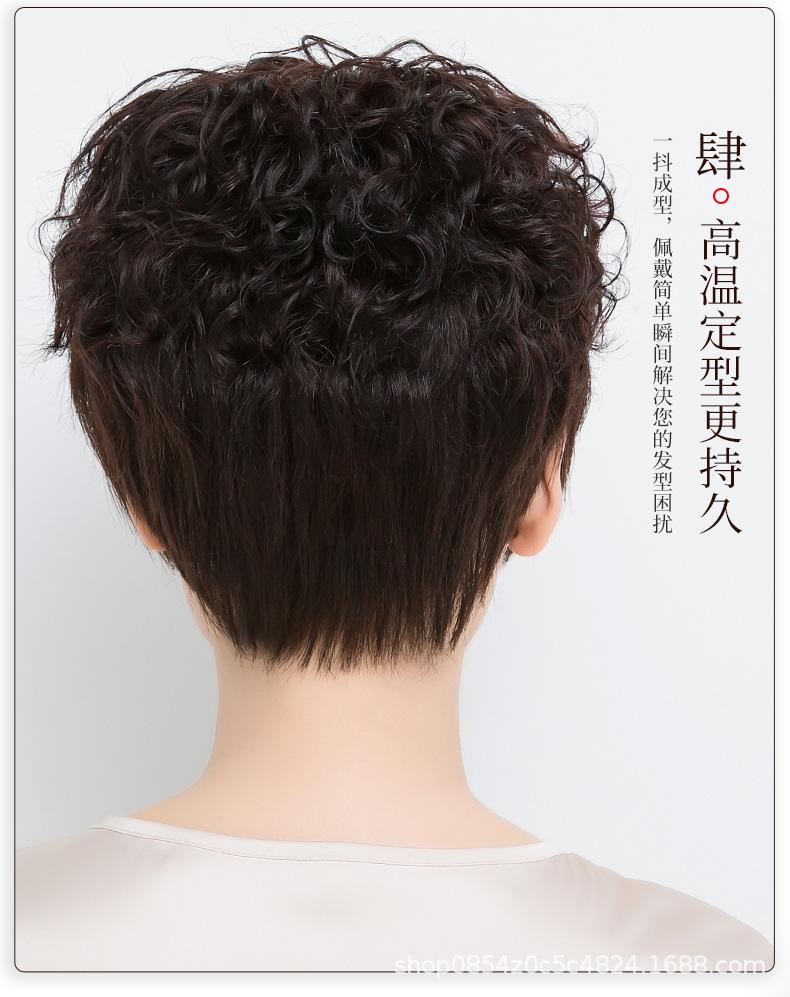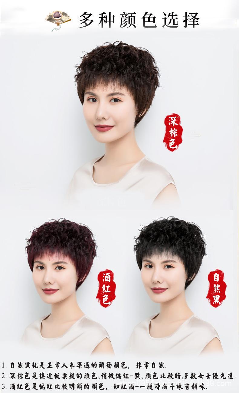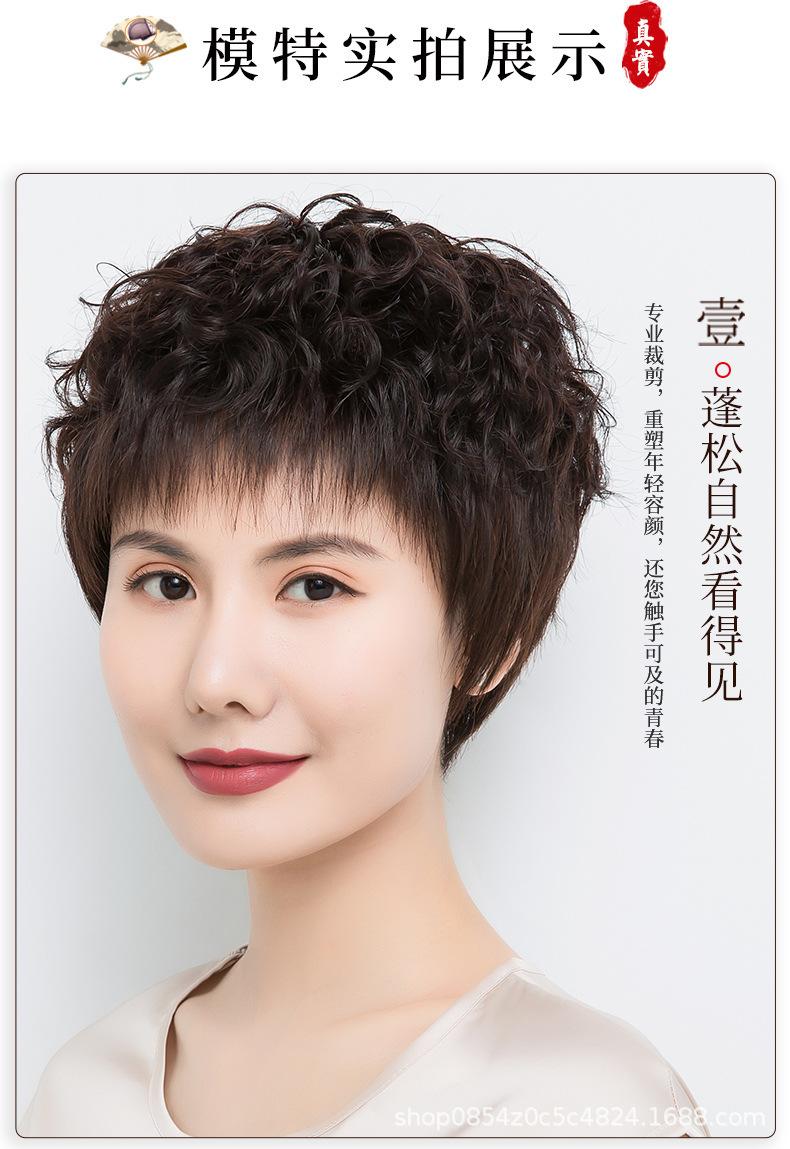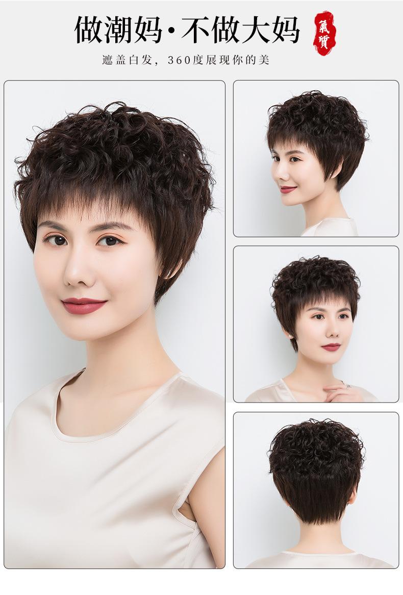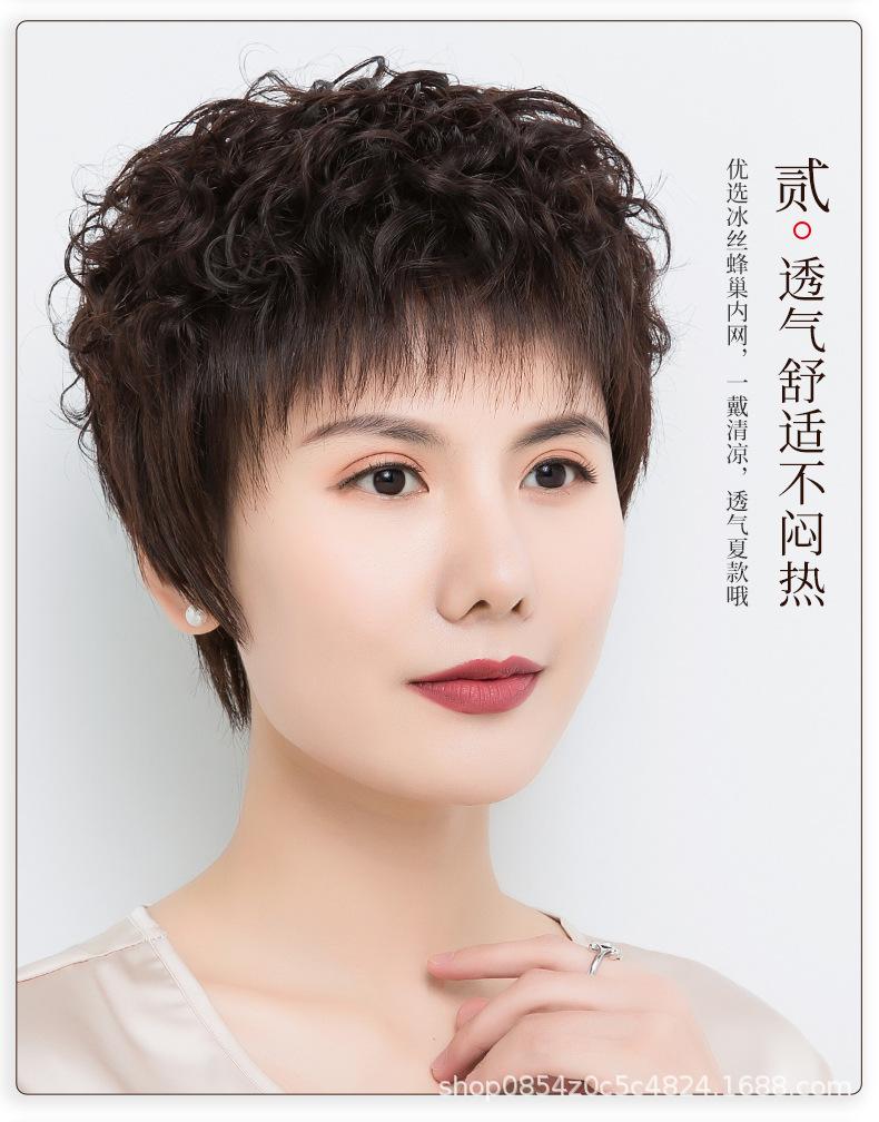 Peluca de mujer de pelo corto, pelo corto y rizado, cabello real, peluca de mediana edad y anciana, cabello real natural, seda, moda materna, cubierta de cabeza completa