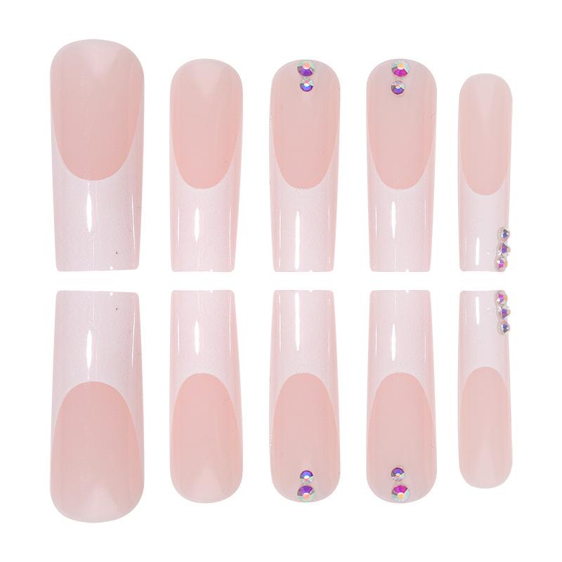 Uñas postizas de diamante europeas y americanas, manicura sencilla, uña francesa con borde blanco, uña con parche desmontable