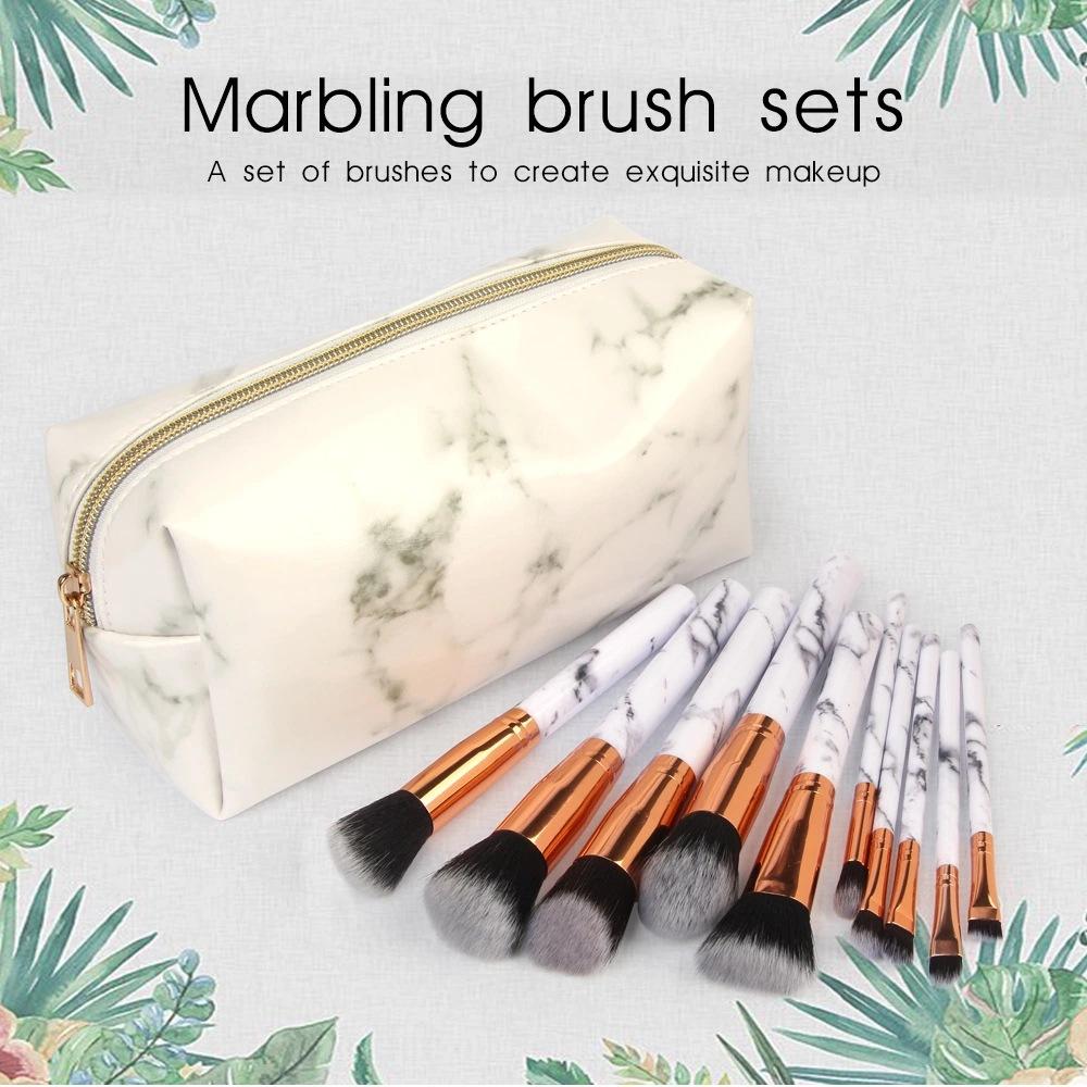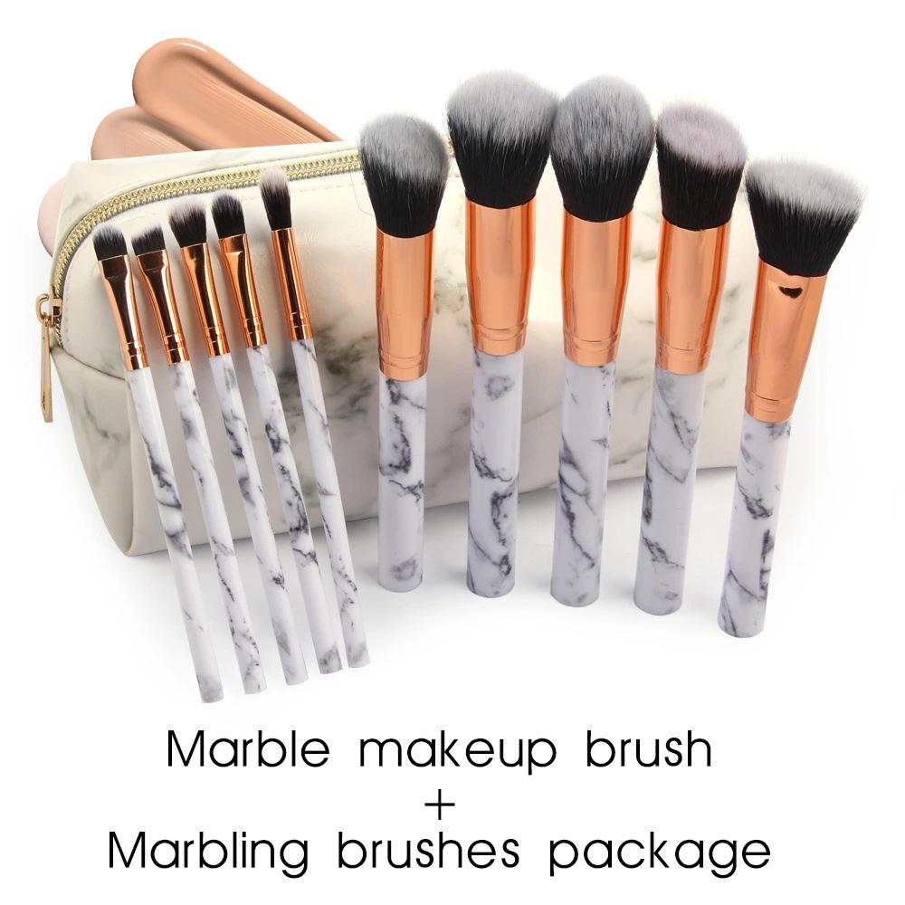 Fábrica transfronteriza, venta al por mayor, 10 bolsas de barril con mango de mármol, maquillaje, polvos sueltos, cepillo para cejas, traje portátil en stock